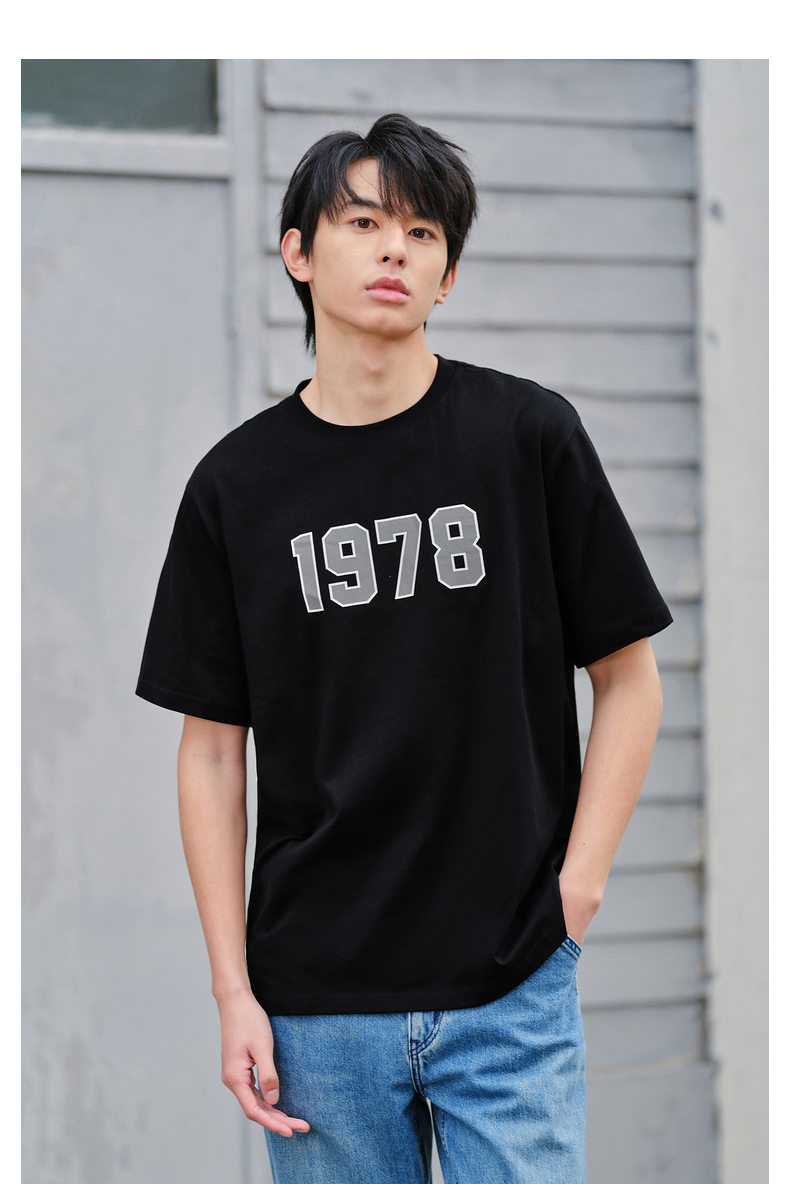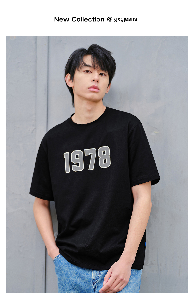 gxg.jeans男装春季多色圆领数字印花设计短袖T恤JFD14400091