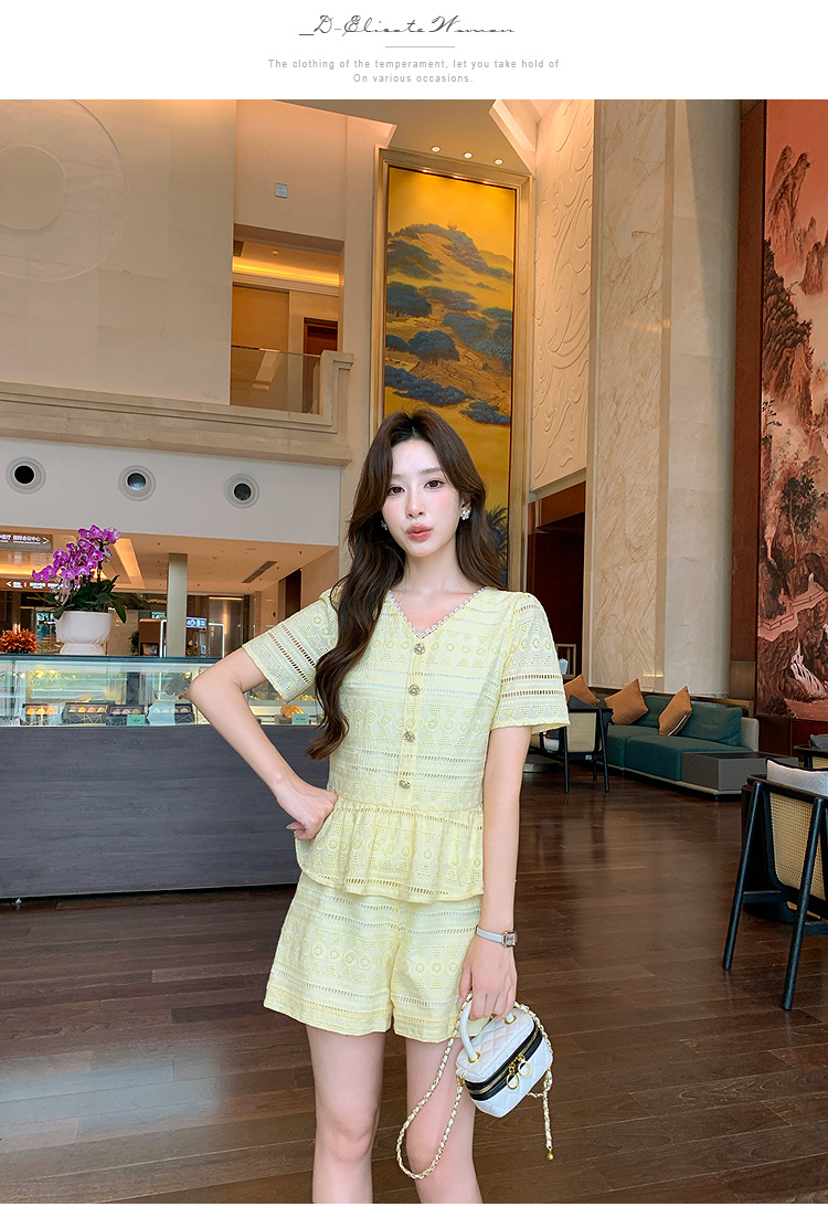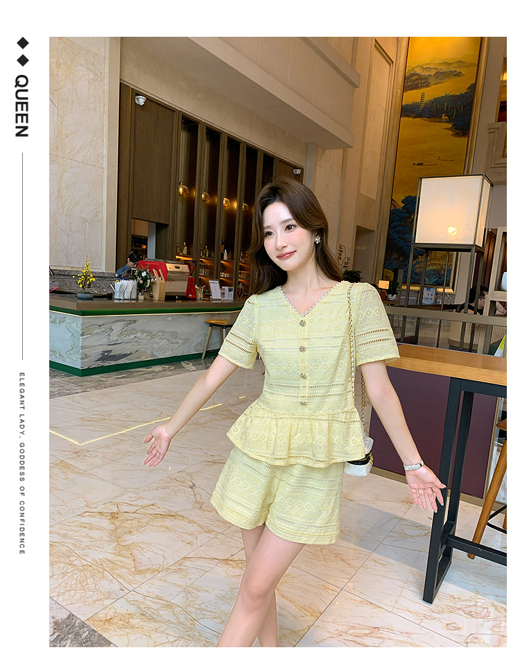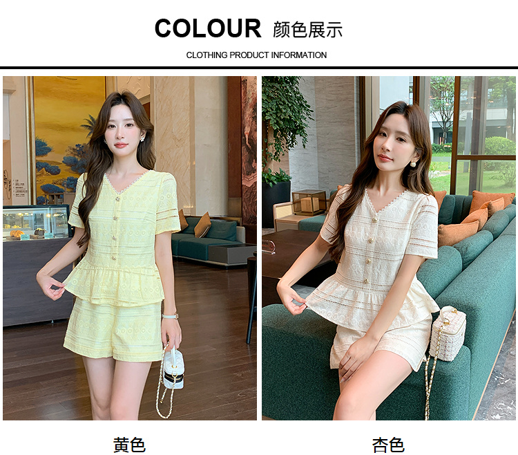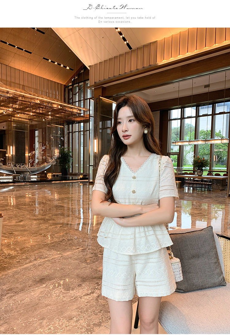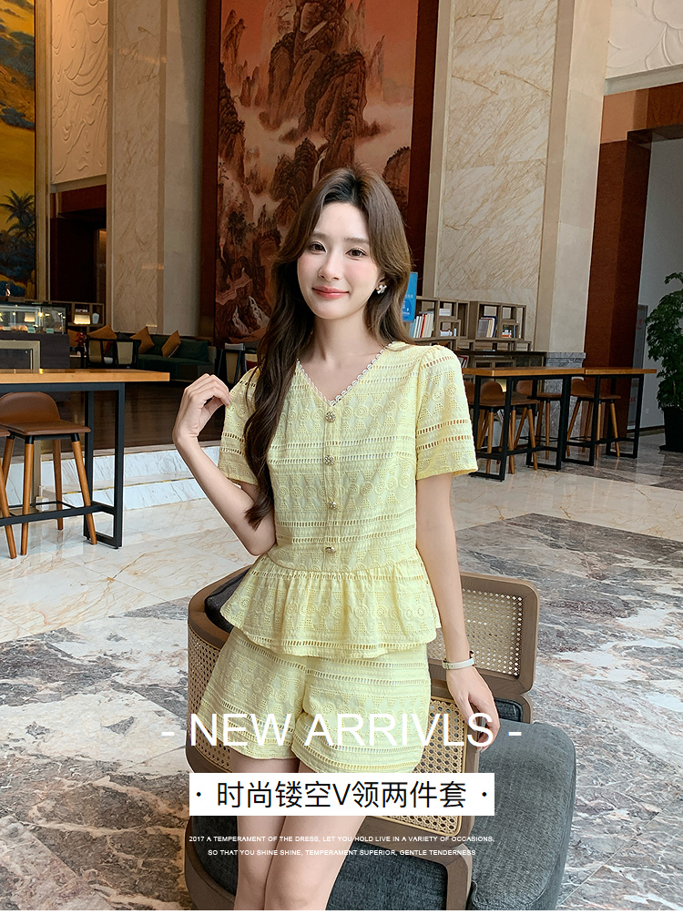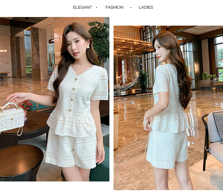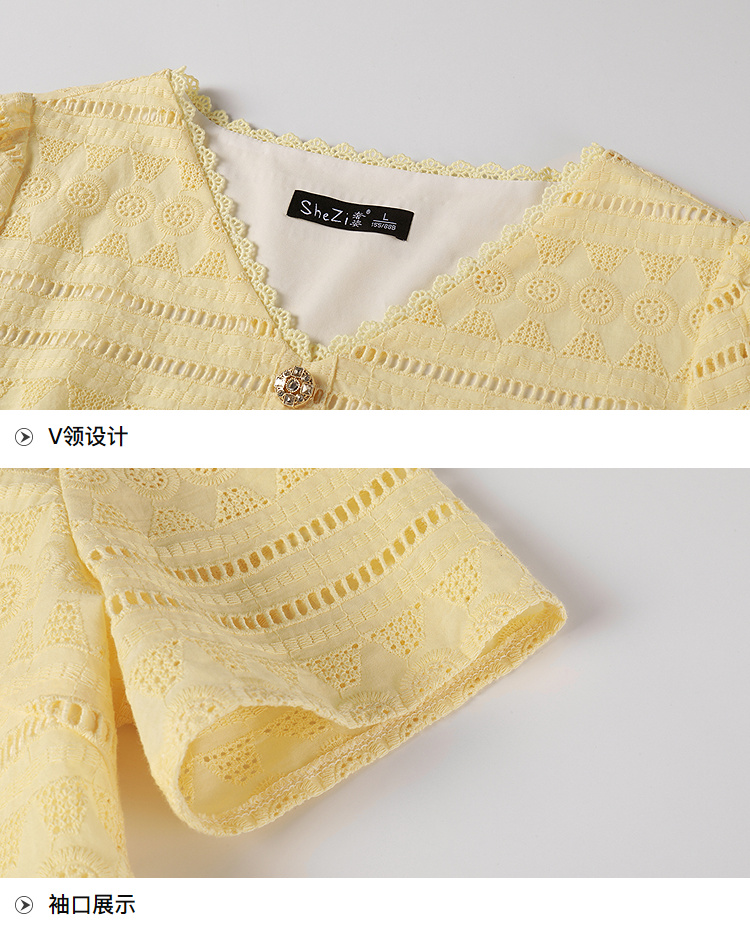 奢姿大码女装2026夏季法式蕾丝刺绣镂空设计两件套胖妹妹V领套装9952980107