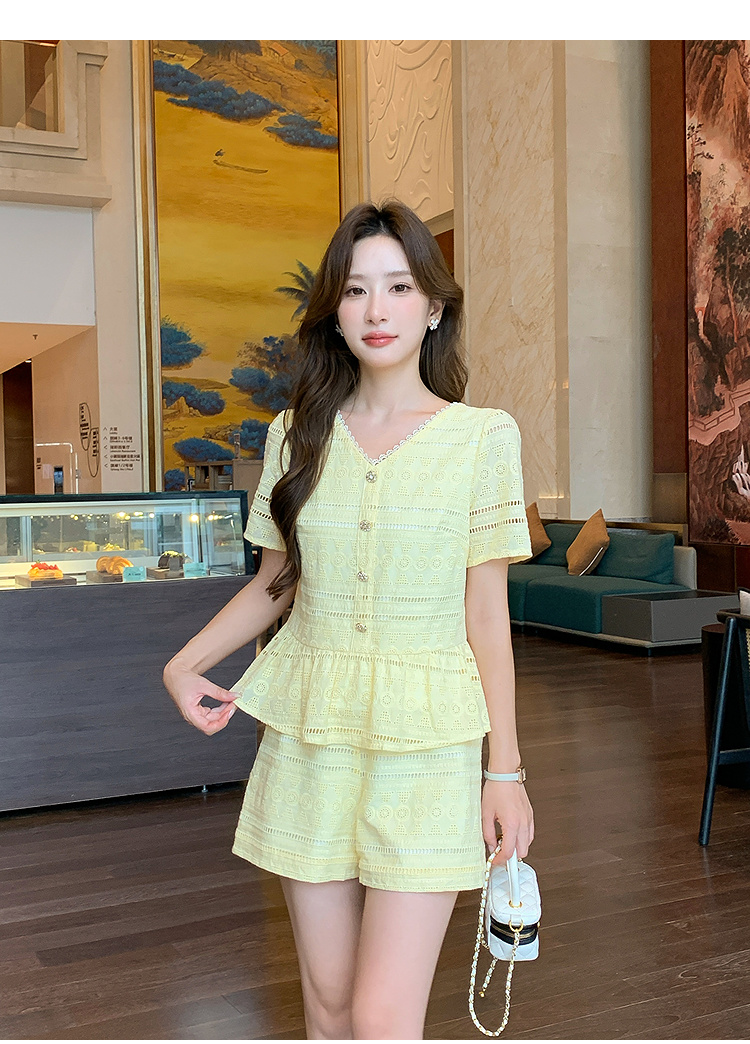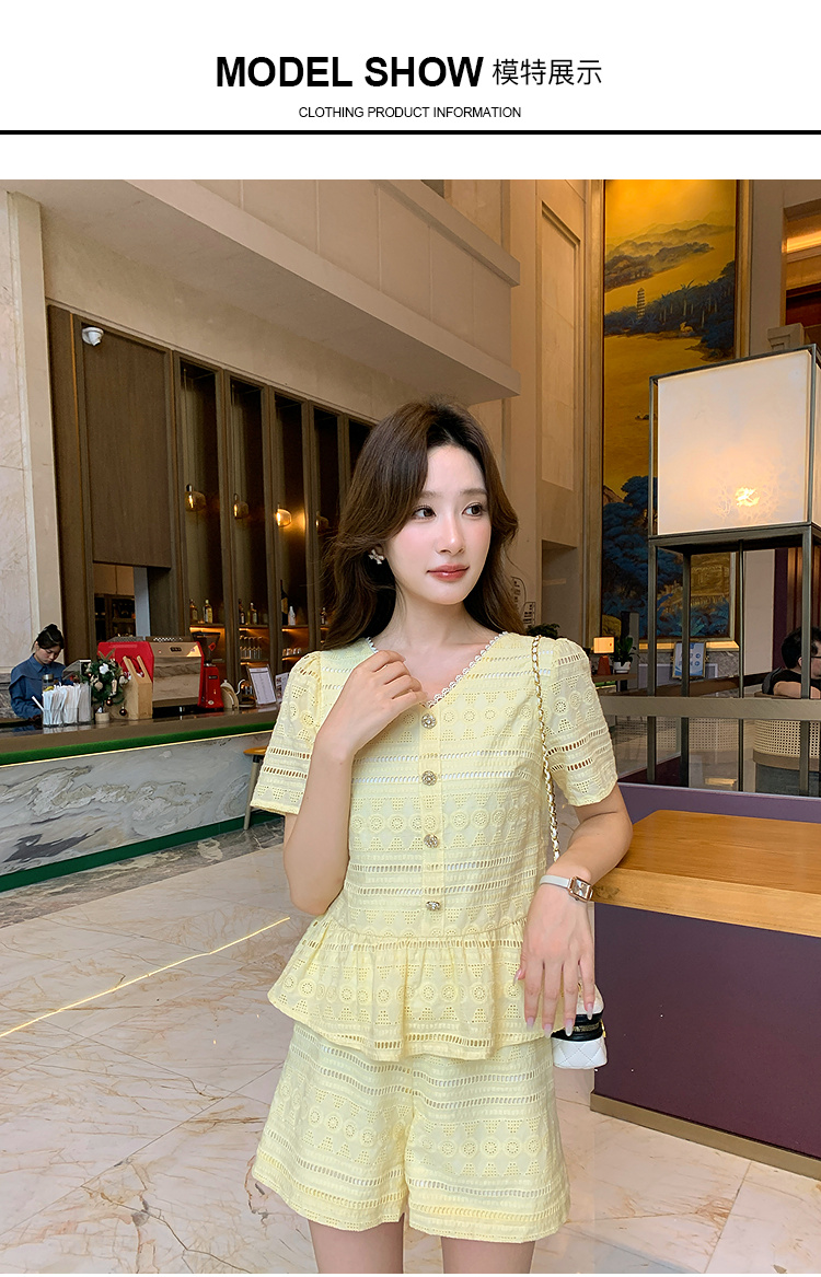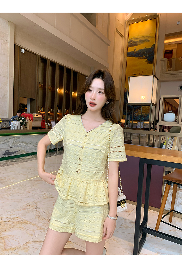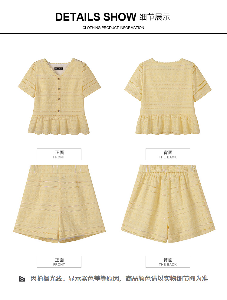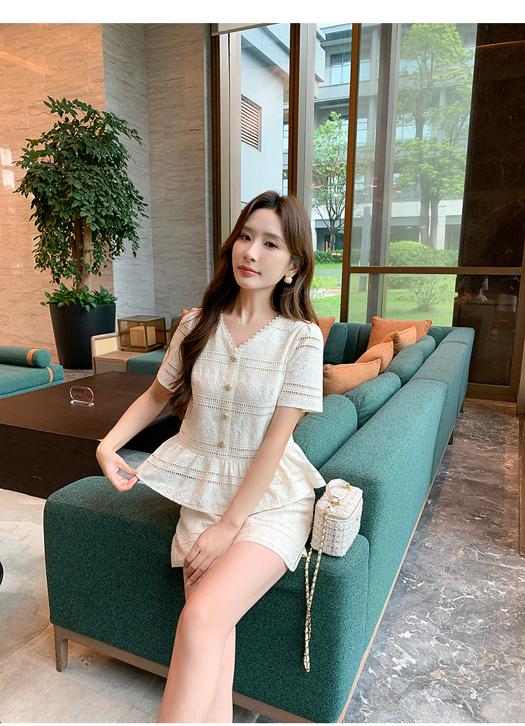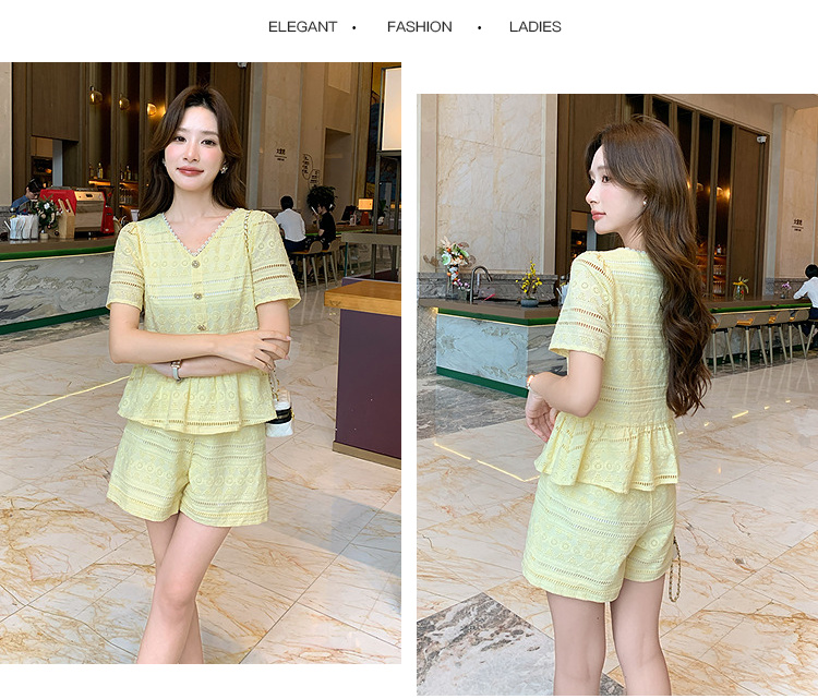 奢姿大码女装2026夏季法式蕾丝刺绣镂空设计两件套胖妹妹V领套装9952980107