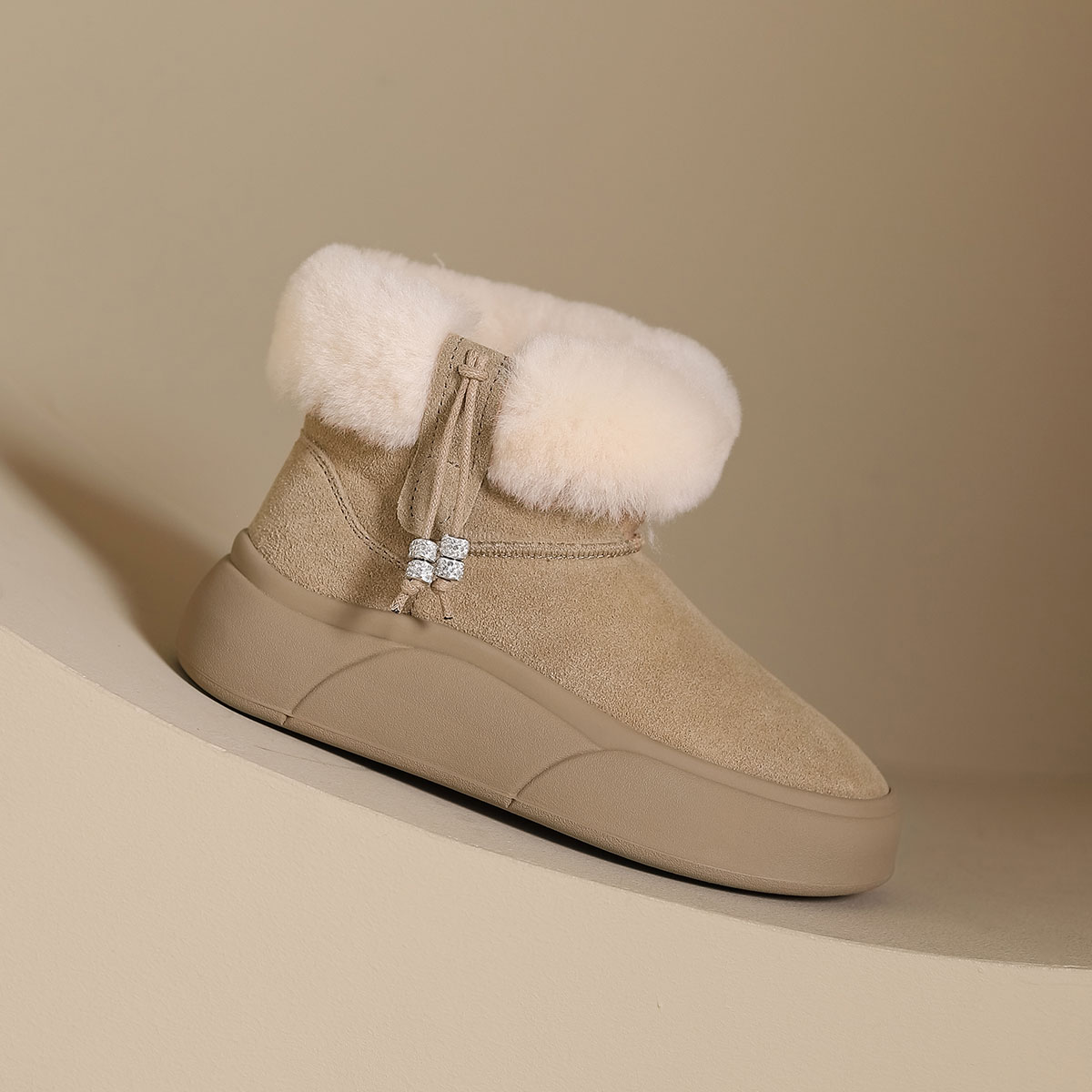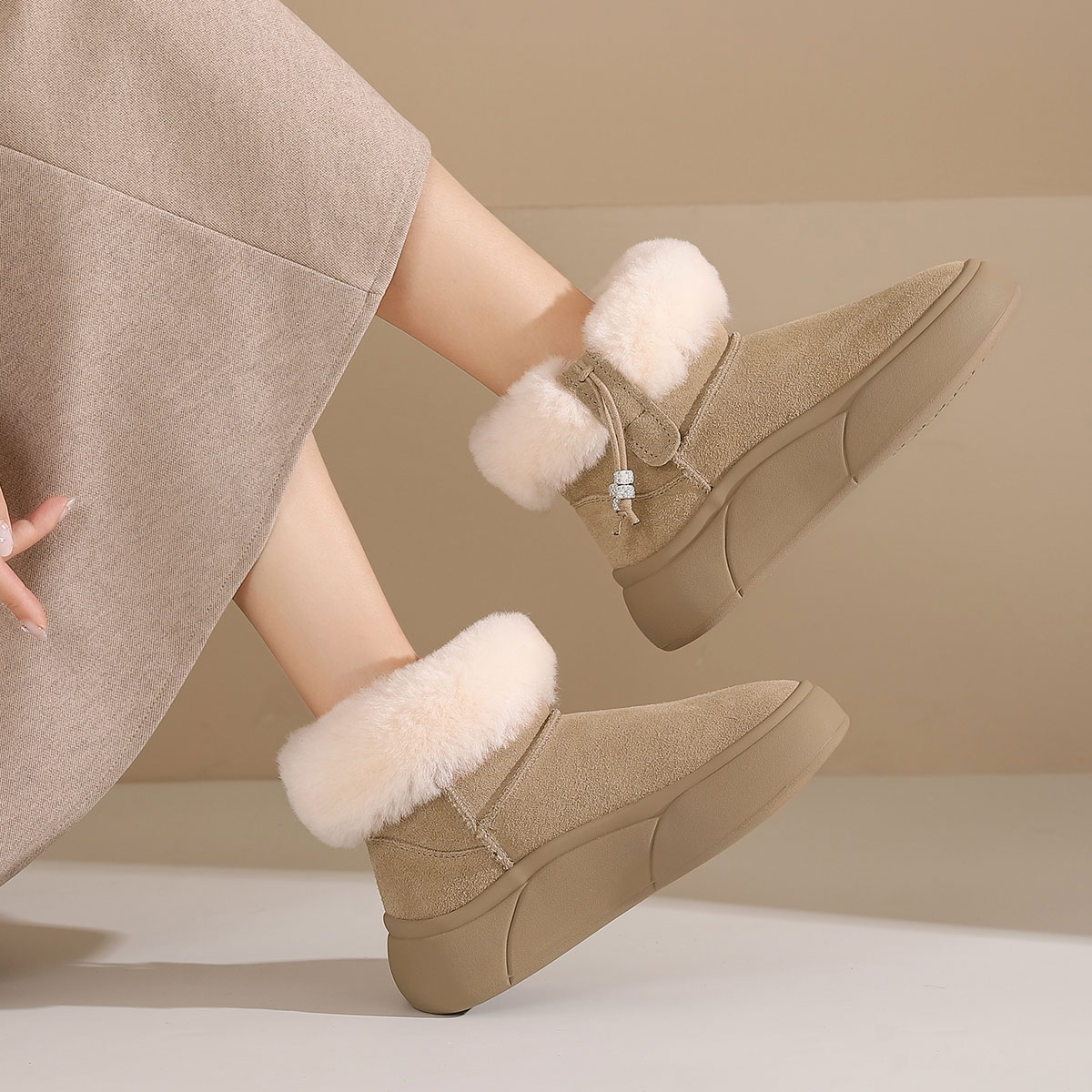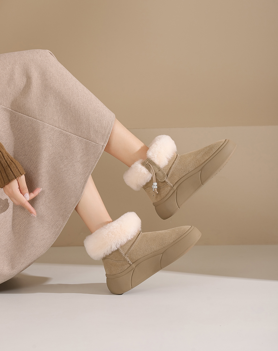 西村名物2024年冬季新款加毛保暖超轻厚底防滑雪地靴T24DS47021