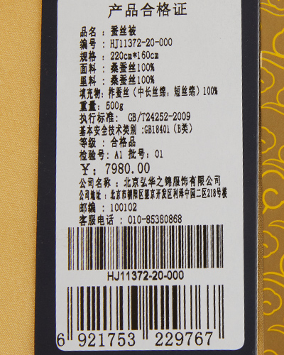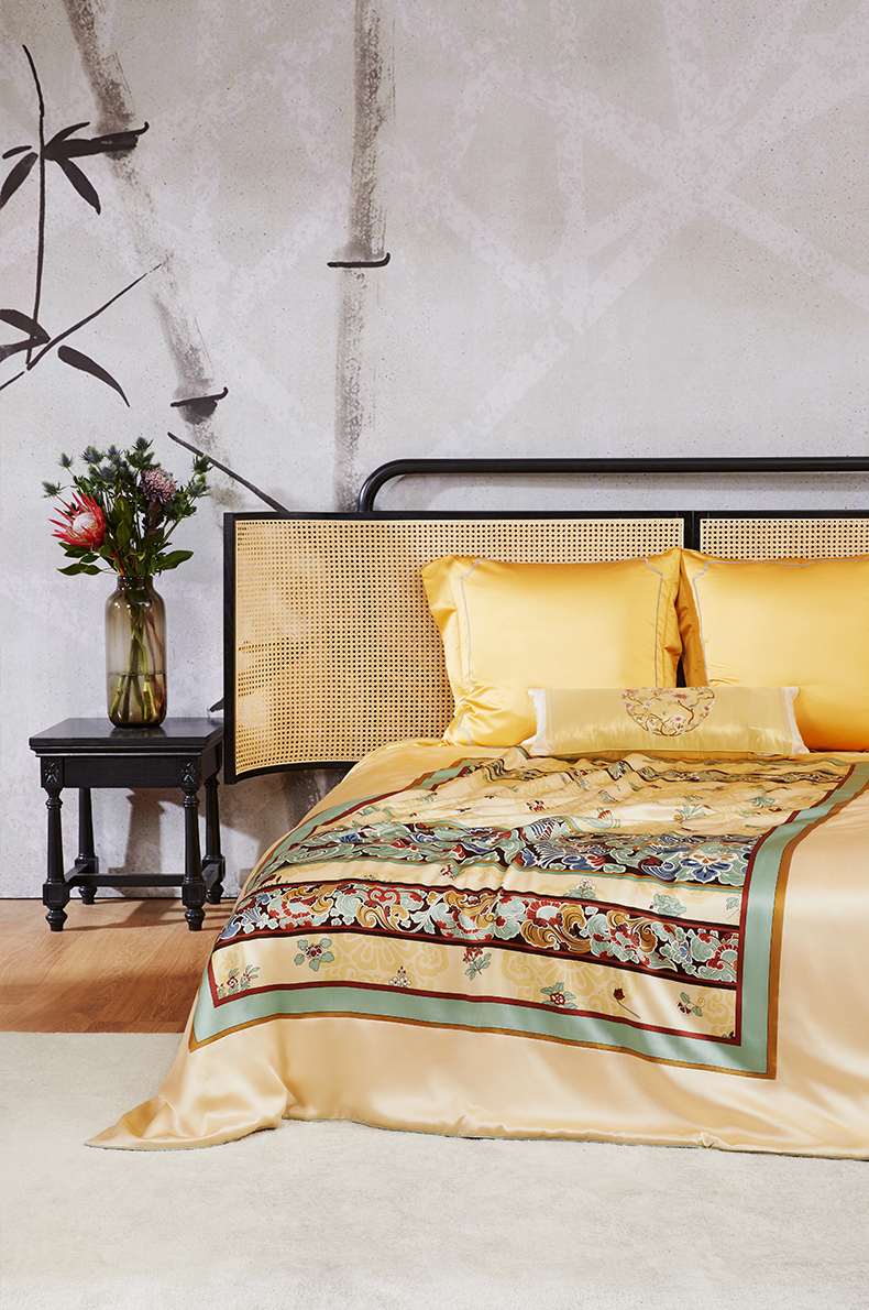 内里采用双层纱布包裹绗缝的工艺,将蚕丝均匀固定,增加了被子的美观和耐用性。