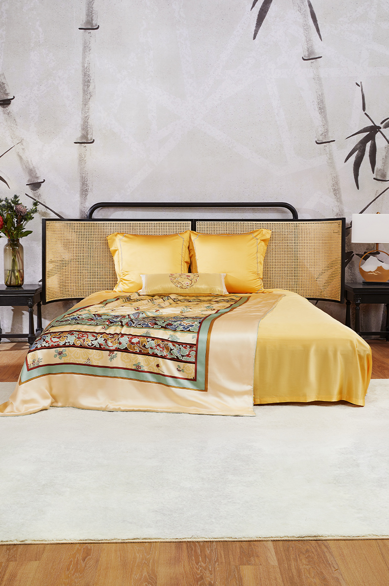 被面采用中心印花面料,四周素色面料拼接的工艺,美观大方,触感柔软顺滑。