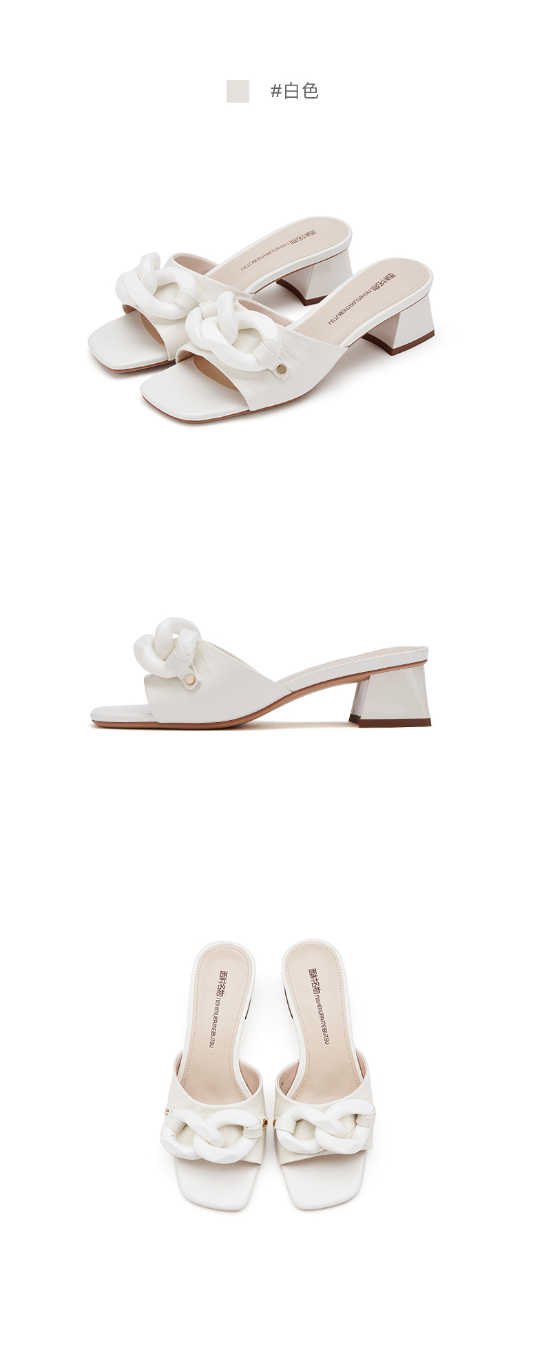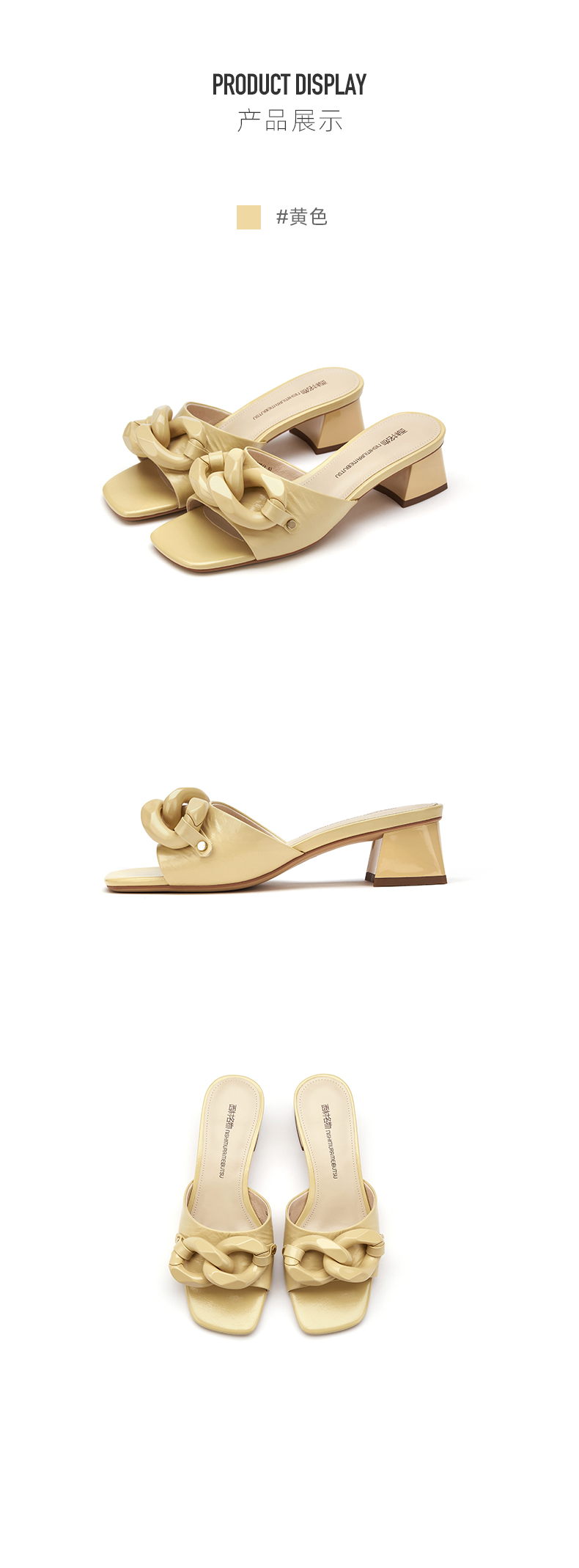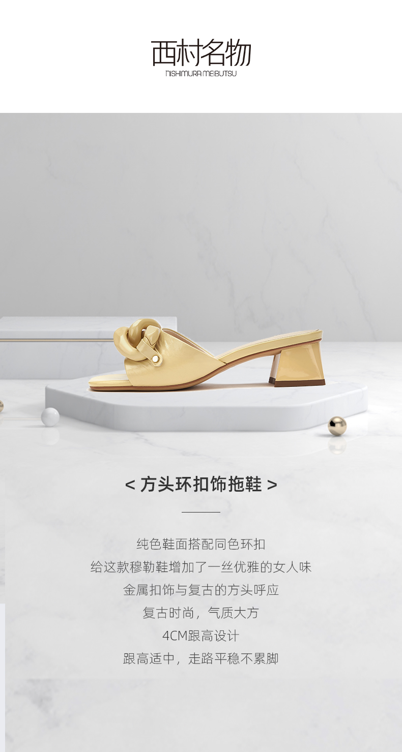 西村名物2021夏季新款真皮低跟外穿时尚沙滩鞋羊皮凉拖半拖24141