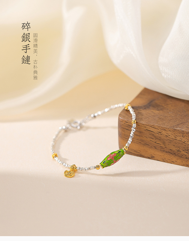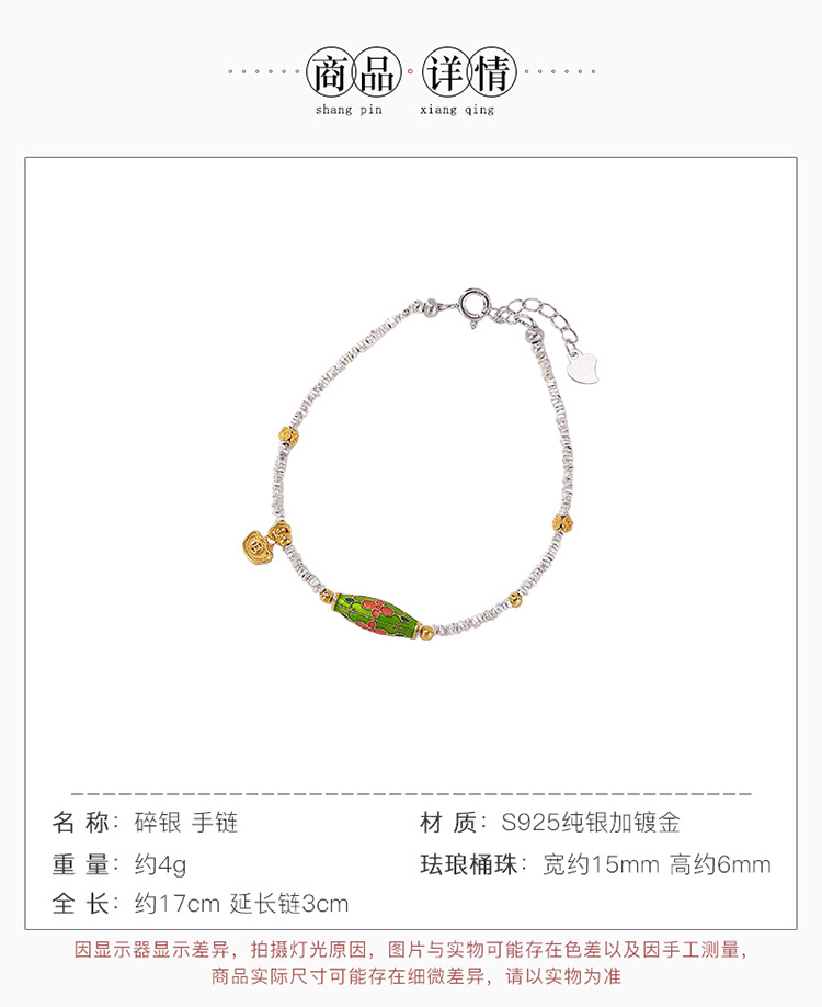 【红妆漫点】S925碎银几两珐琅元宝桶珠花朵手链【CW-SL11722-5】