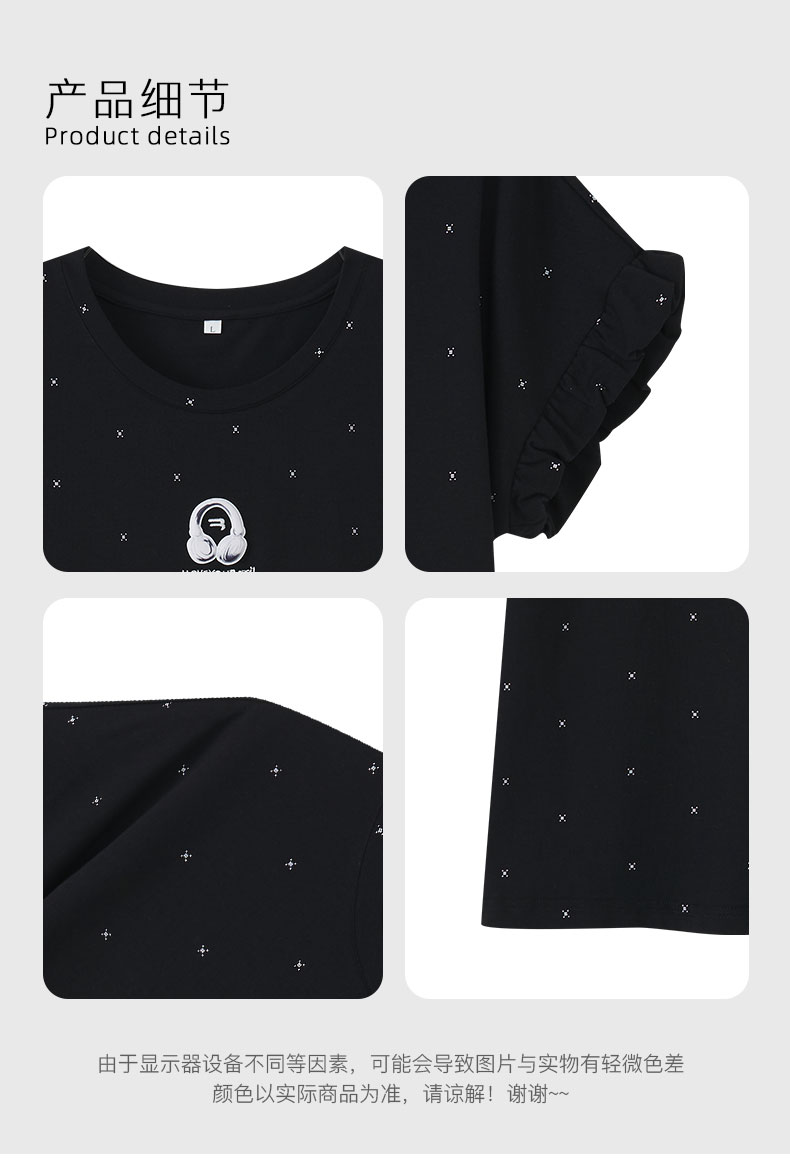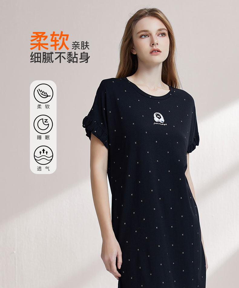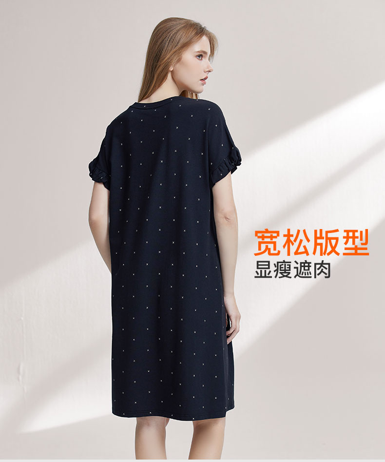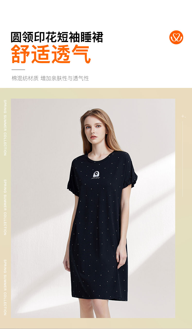 【7.5折限时特惠】(小版)【秀黛】女圆领印花短袖裙棉混纺H型显瘦女士夏季睡裙MW554032T【门店同款】