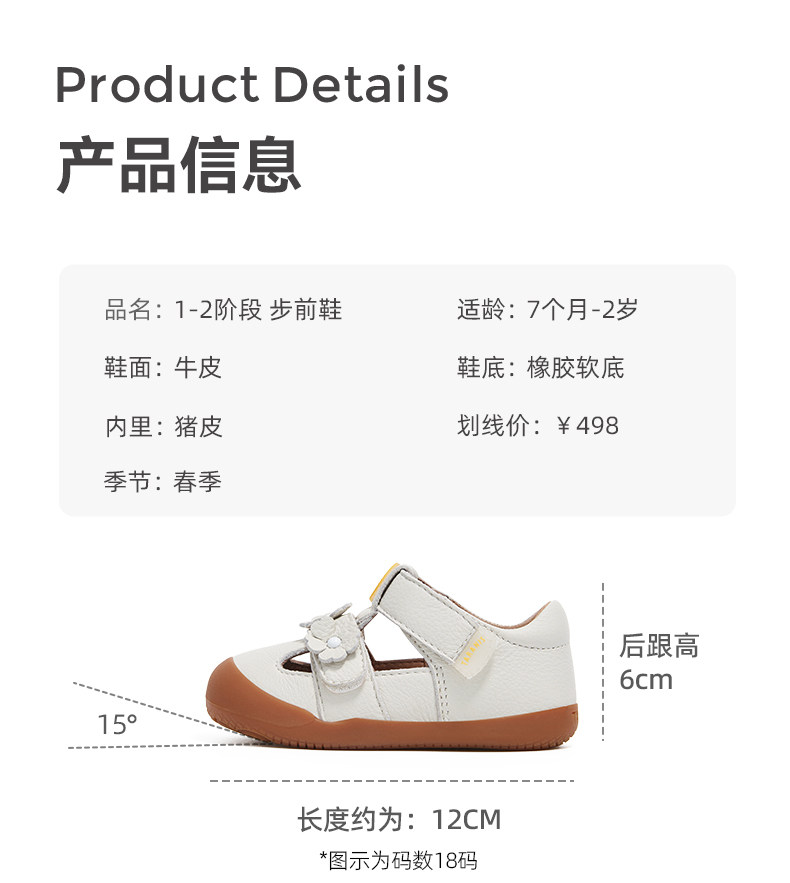 泰兰尼斯童鞋春季新款牛皮步前鞋赤足鞋公主鞋宝宝皮鞋女童宝宝鞋T03B6A8497