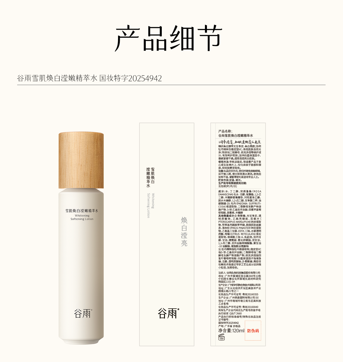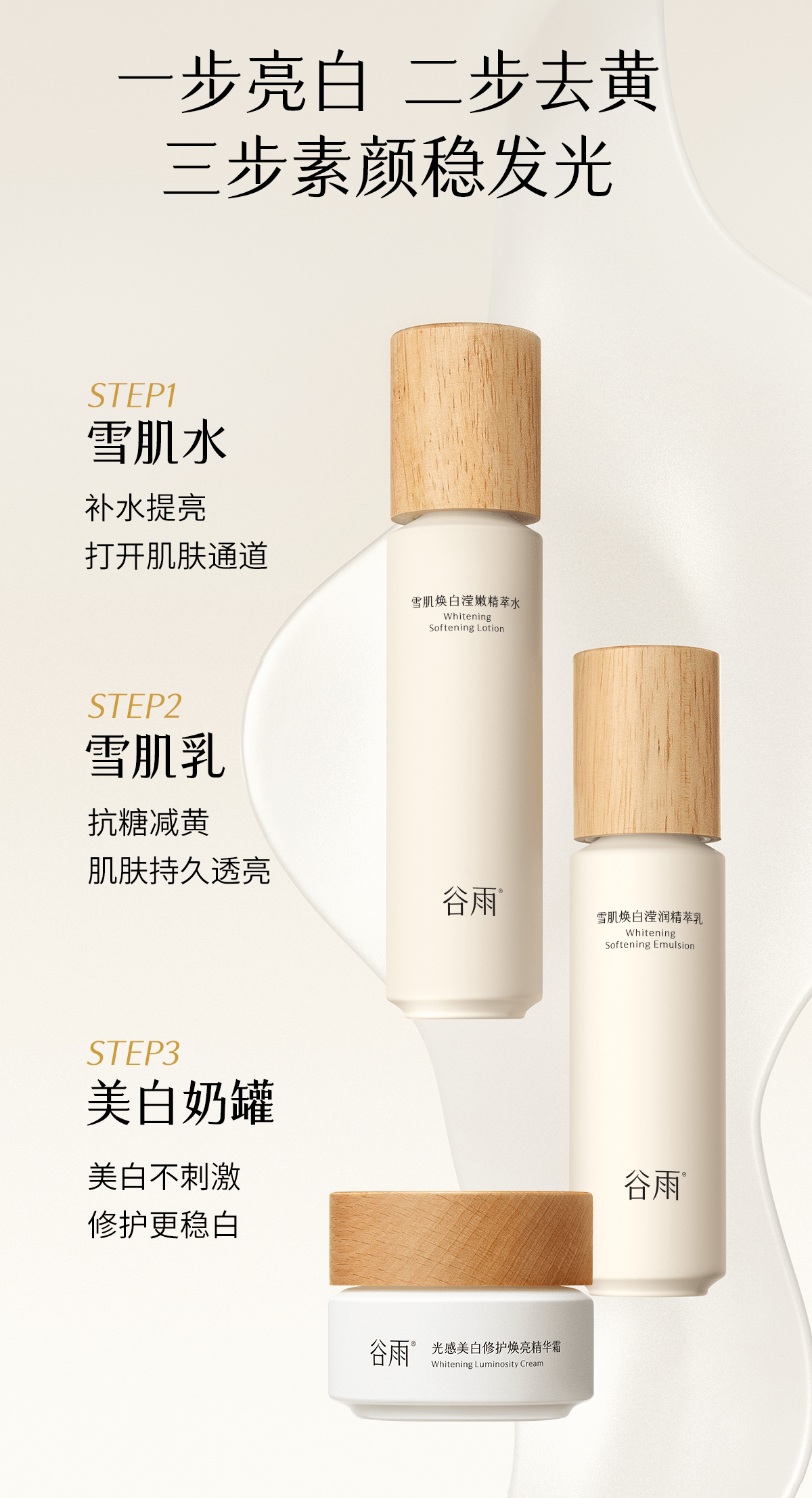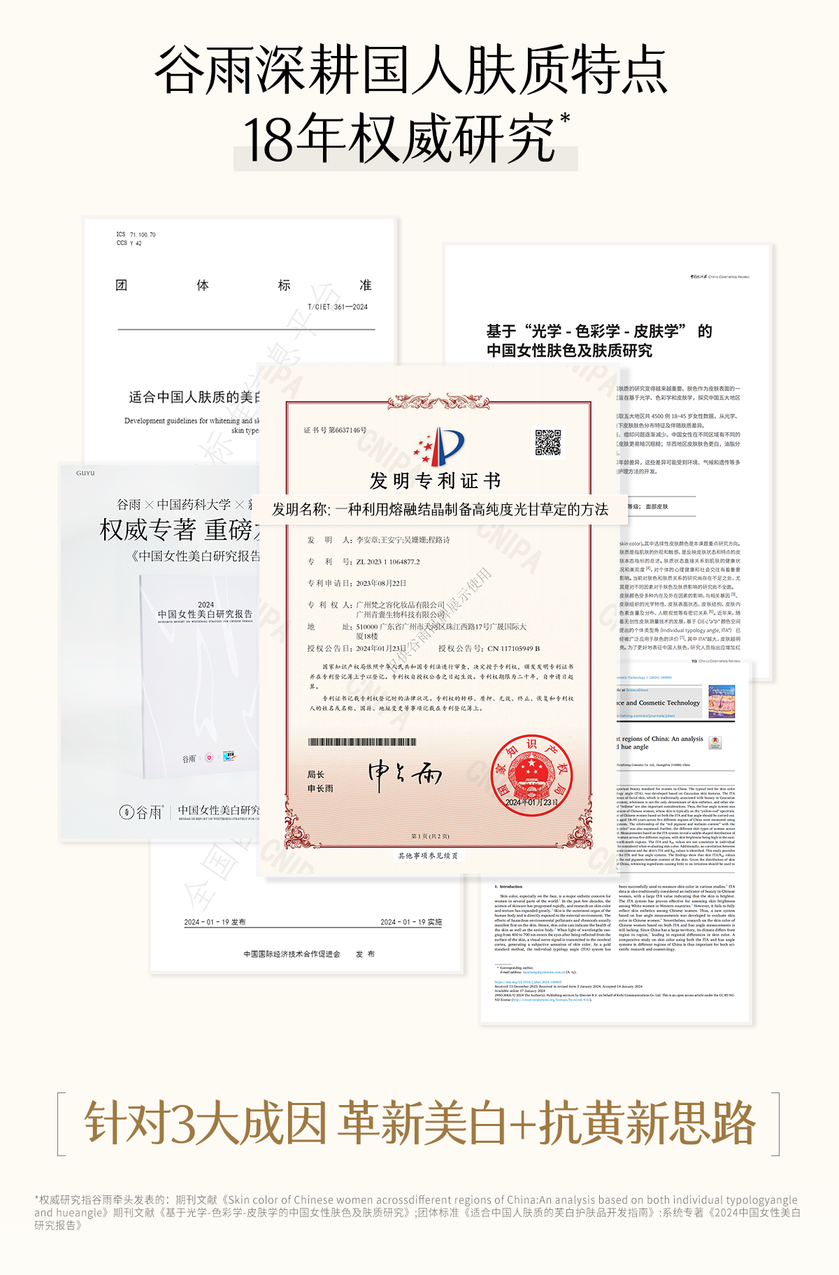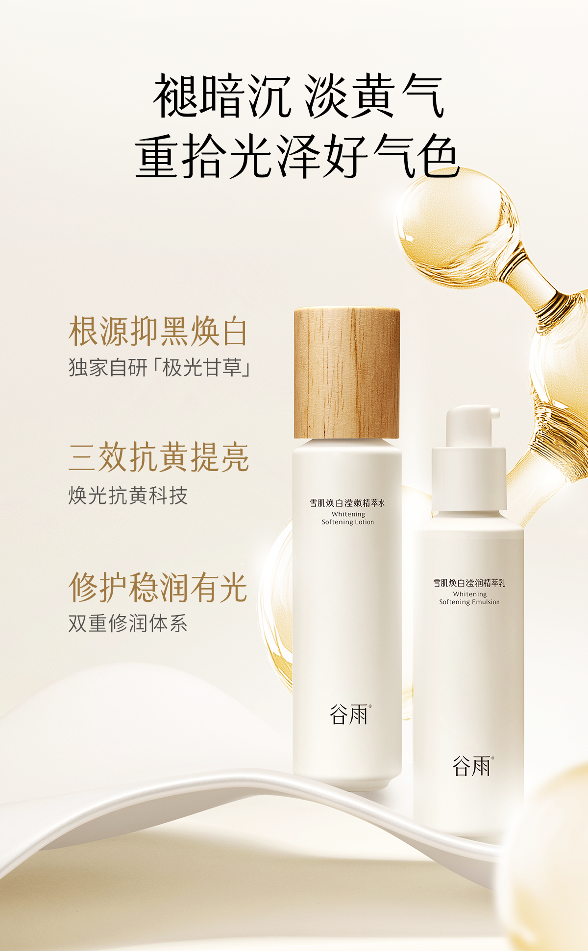 - 谷雨,更适合中国人肤质的植萃美白。专研中华珍稀美白植萃光甘草定,深入研究中国人肤质特点,打造中国女性独有的仙气白。