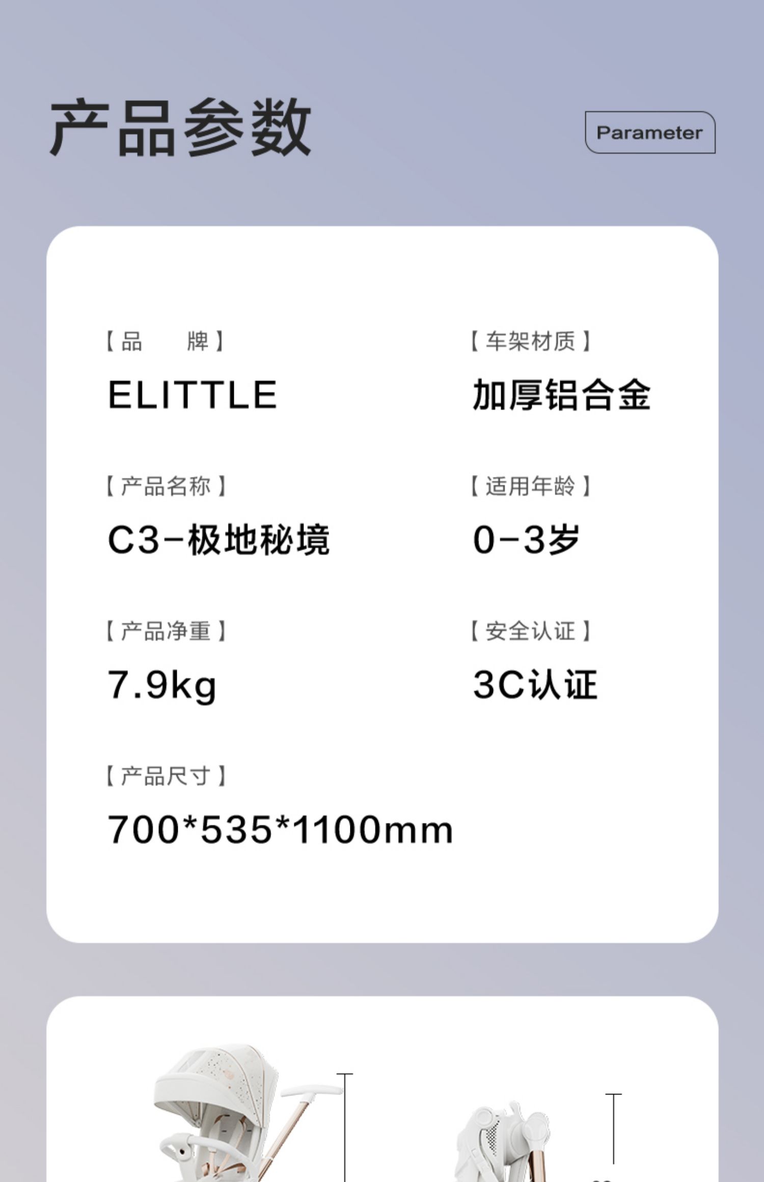 elittle逸乐途C3遛娃婴儿推车溜娃神器轻便可折叠可坐可躺婴儿车