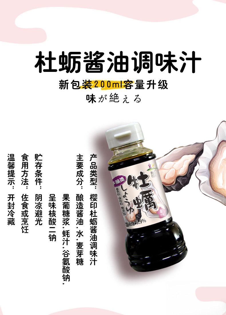 樱印(桜印)日本原装进口宝宝儿童辅食牡蛎酱油调味汁200ml/瓶