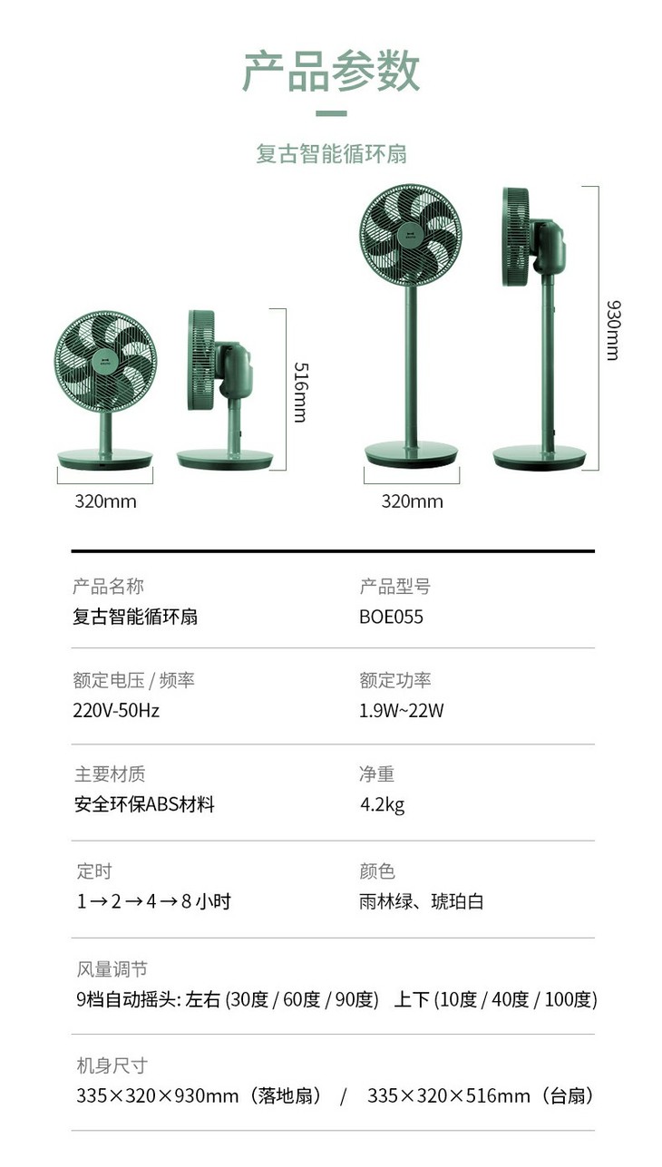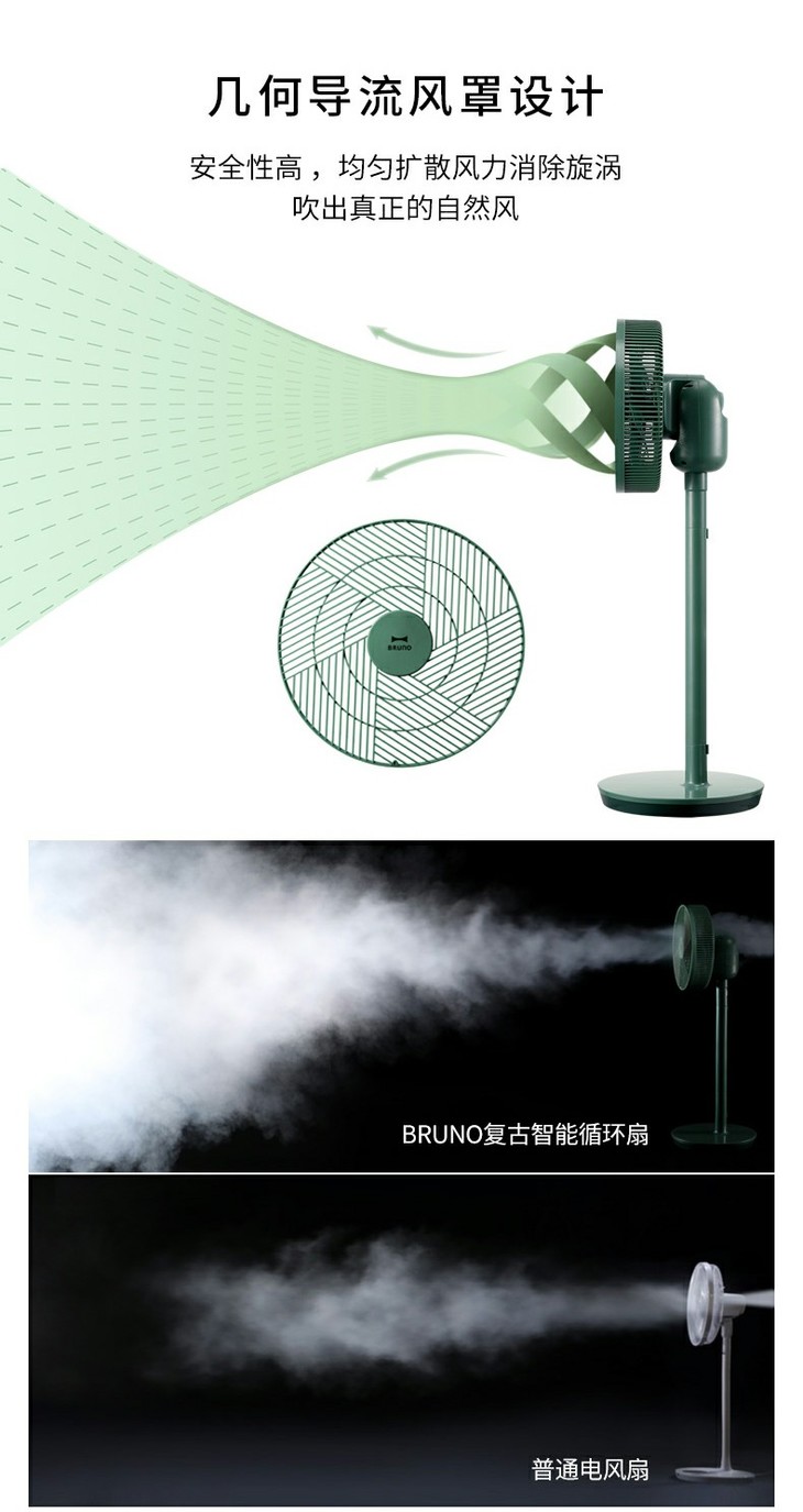 日本bruno复古智能空气循环扇循环家用风扇落地对流变频电风扇BOE055-GR
