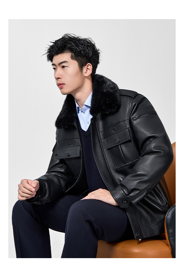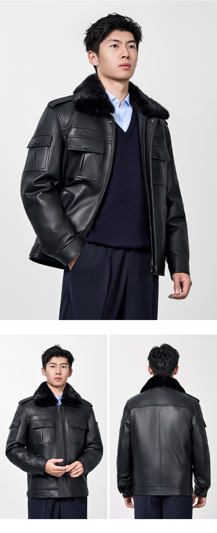 【实付满399送保温杯】【可拆卸内胆皮衣】水貂/獭兔毛领皮夹克绵羊皮大衣通勤保暖羽绒外套