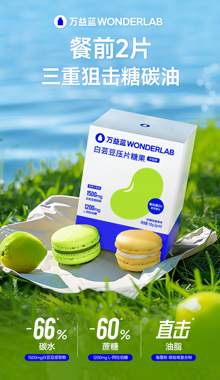 【餐前狙击热量】万益蓝WonderLab白芸豆阻断片新版 柠檬西柚口味/青提茉莉口味 20粒/60粒