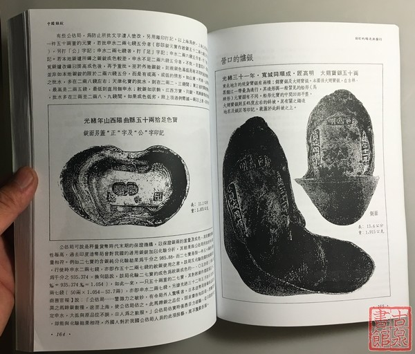 《中国银锭》(影印资料) 实物尺寸图片九百余帧,全面系统的研究与论述了民国二十二年废两改元之前中国主要货币——元宝的铸造、发行及使用,包括形制、种类等,本书文物与史料价值兼备,是研究与收藏中国银锭之最佳参考书目。声明:古泉书馆鉴定,非正版资料,仅限学术交流!成本价影印资料,服务泉友。对作者的辛勤付出表示敬意!无法联系到作者,如有侵权可与我们联系:13520521077,我们将立即下架。
