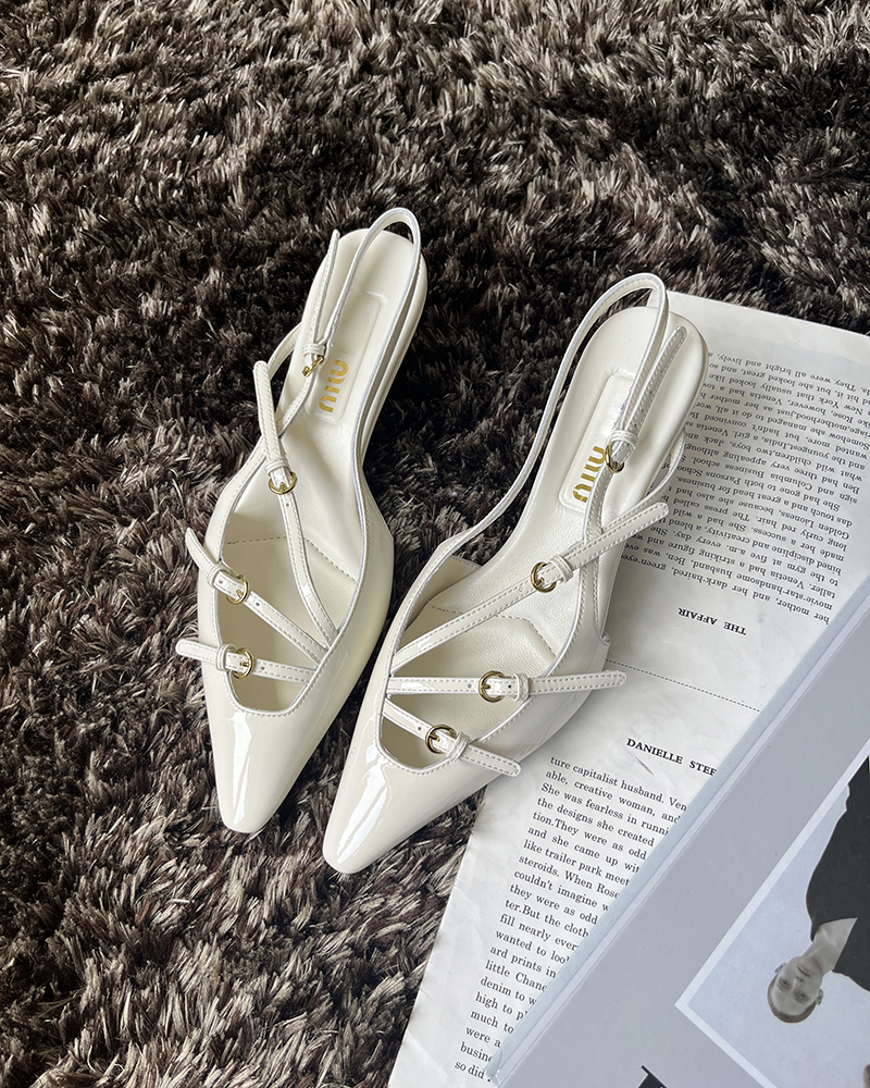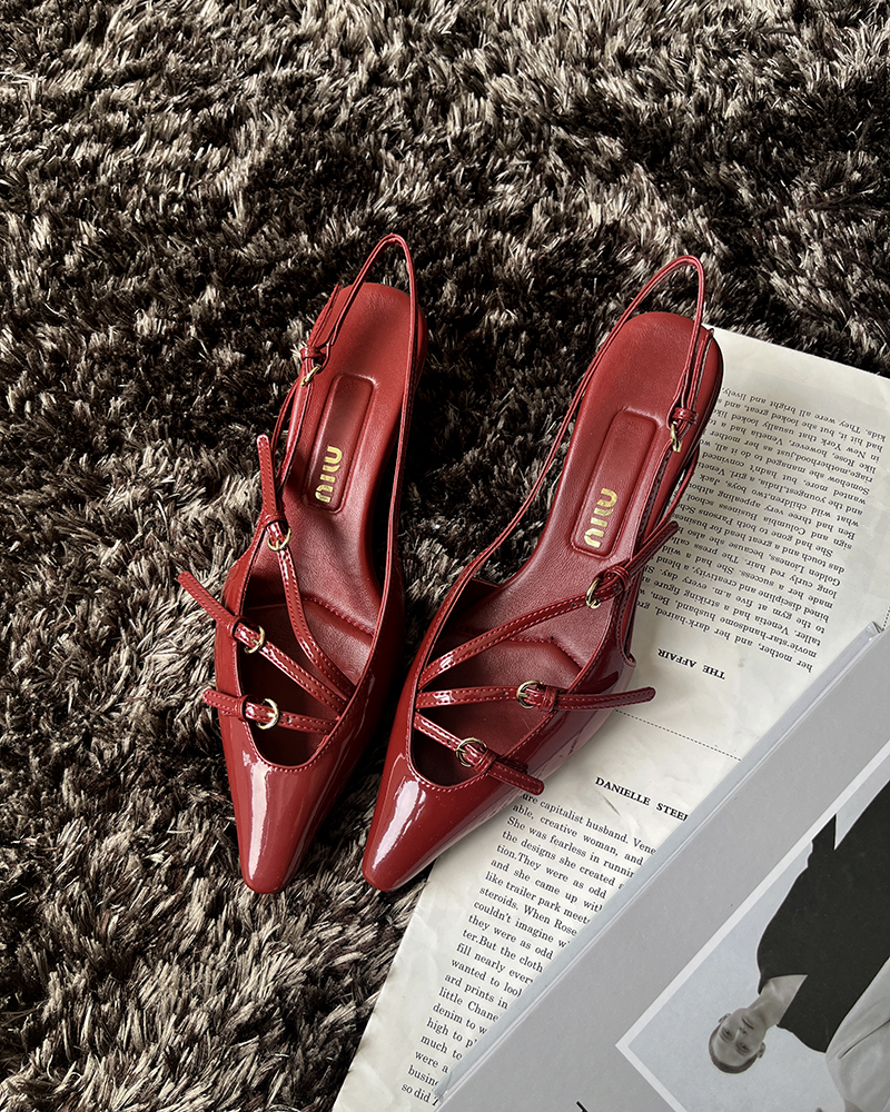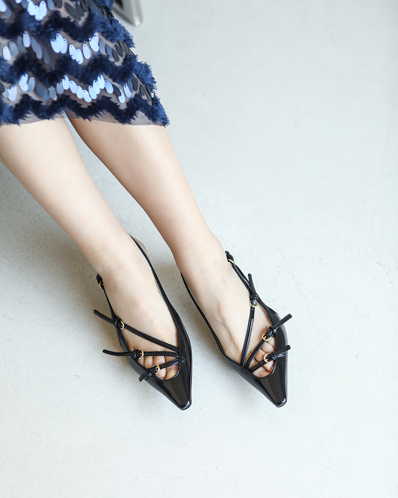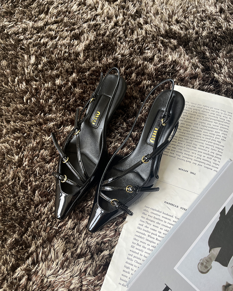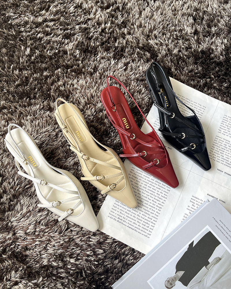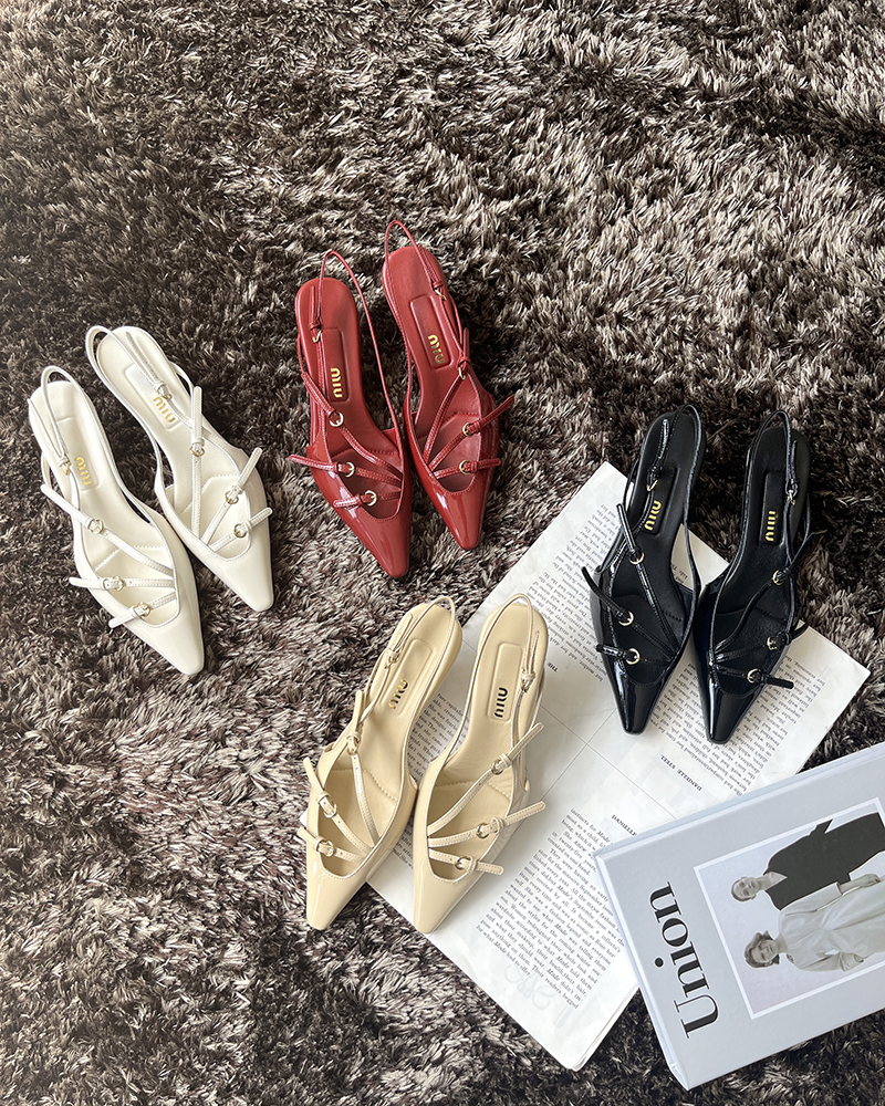 现货 THS 5.18-限时 缪家 女士小尖头漆皮 优雅绑带猫跟穆勒凉鞋 4色 BZ1176