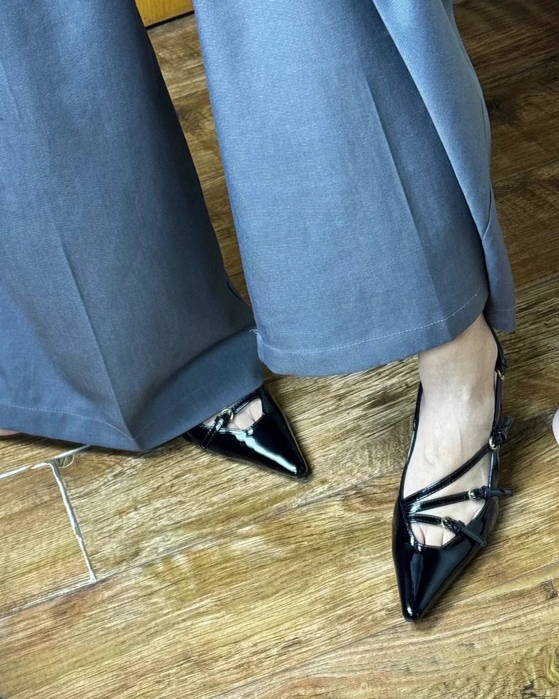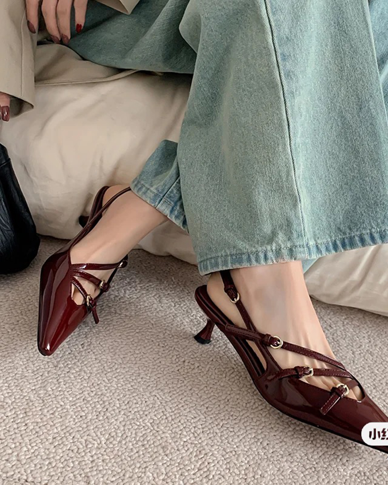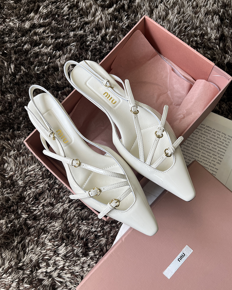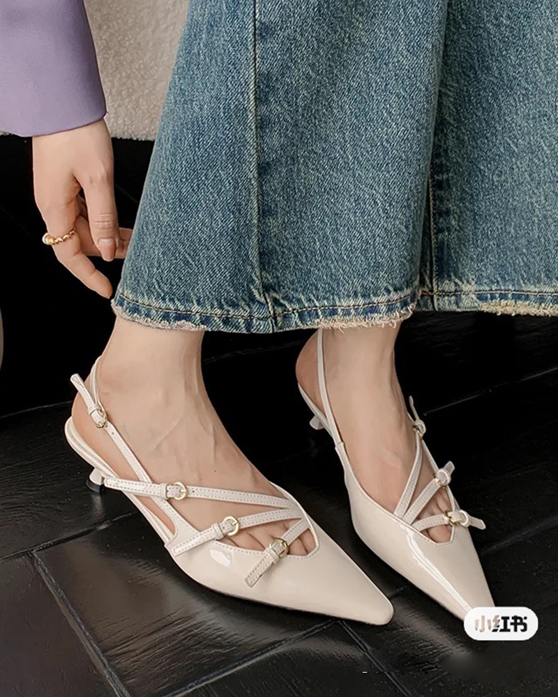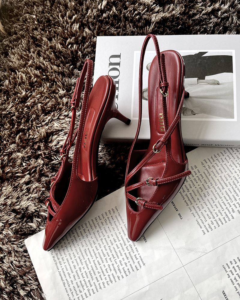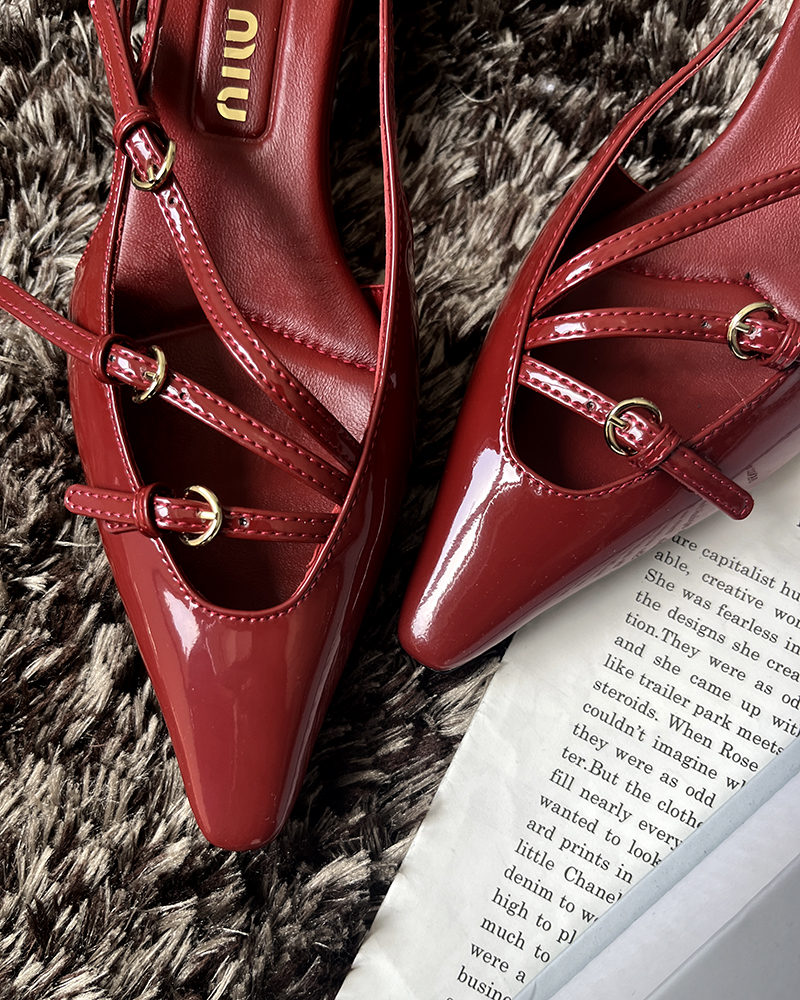 现货 THS 5.18-限时 缪家 女士小尖头漆皮 优雅绑带猫跟穆勒凉鞋 4色 BZ1176