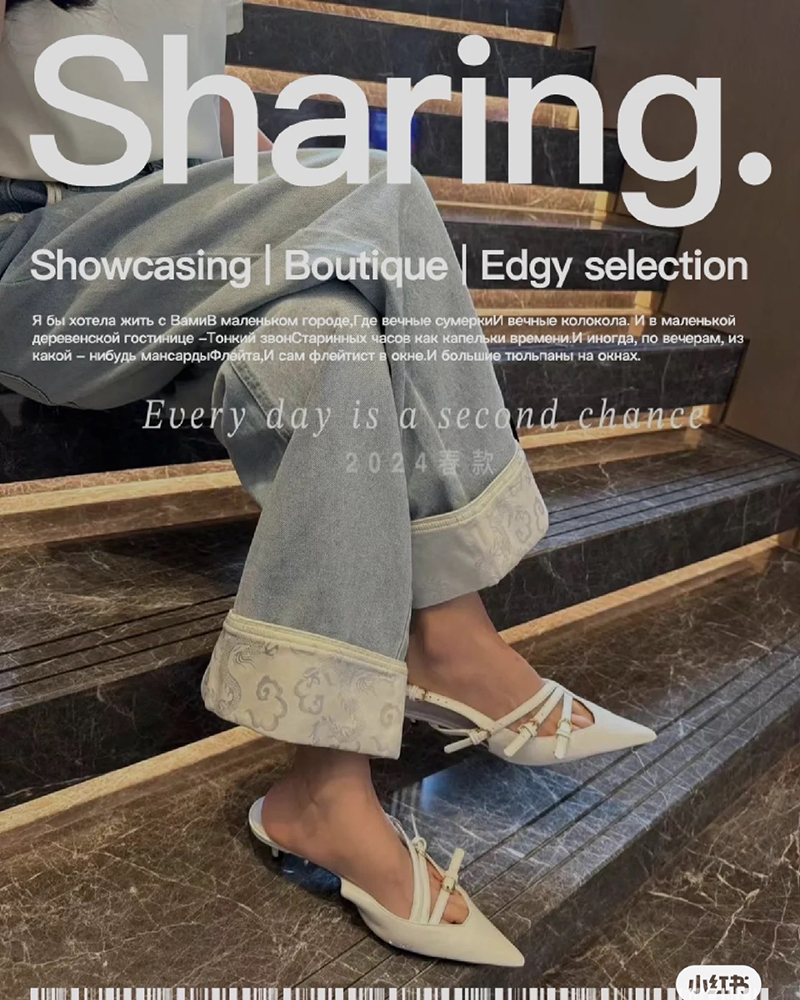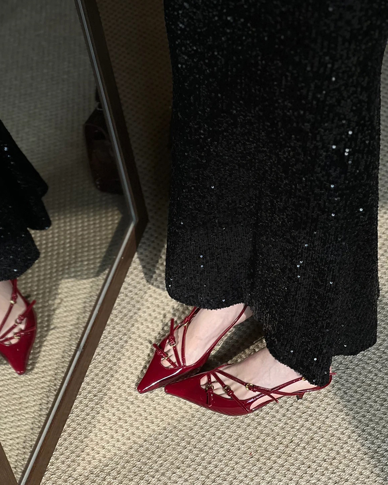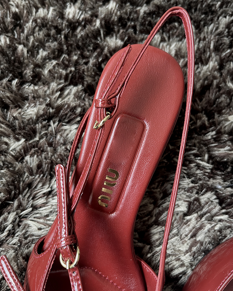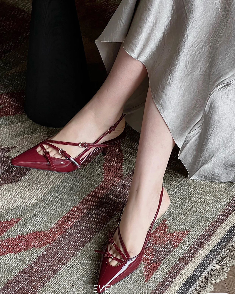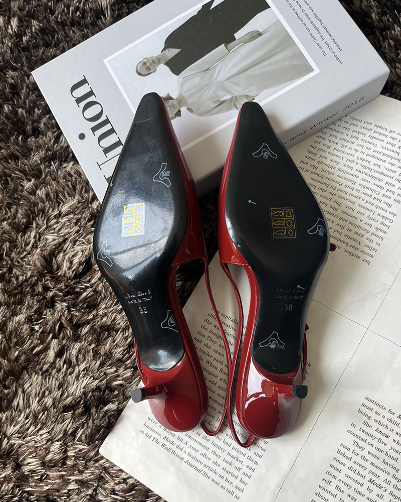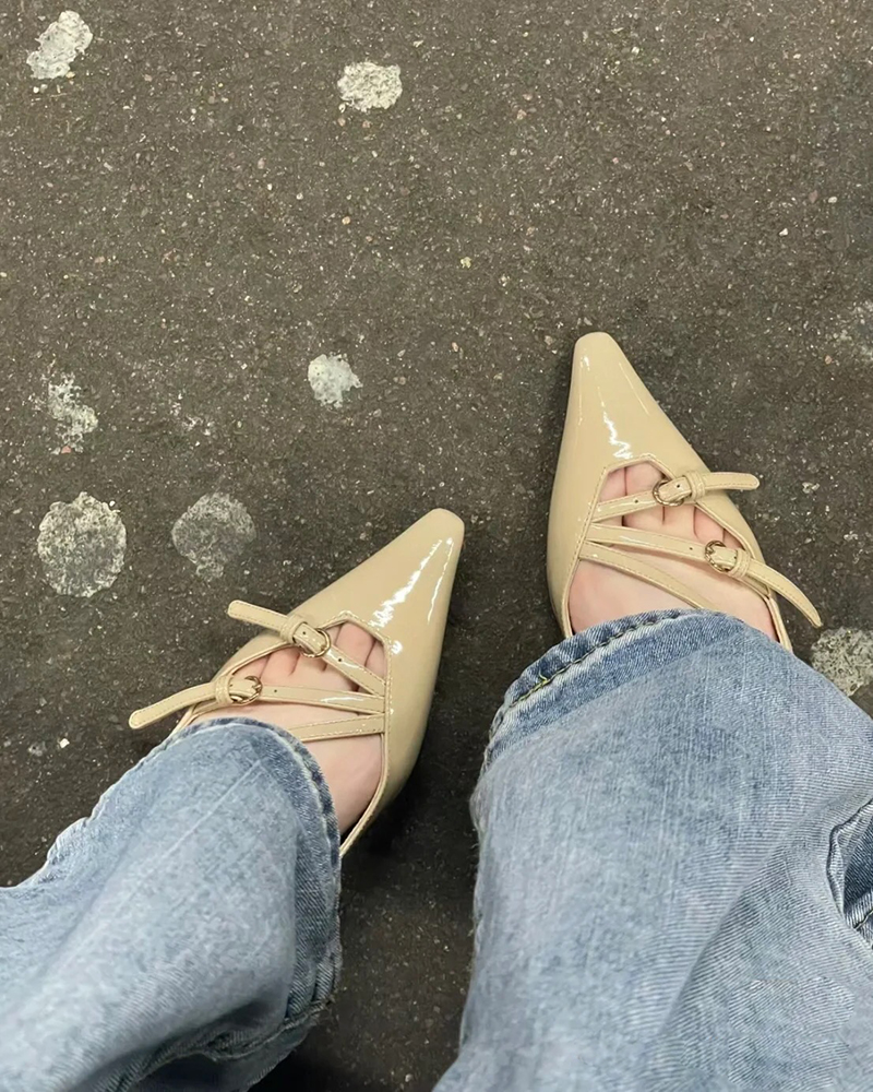 现货 THS 5.18-限时 缪家 女士小尖头漆皮 优雅绑带猫跟穆勒凉鞋 4色 BZ1176