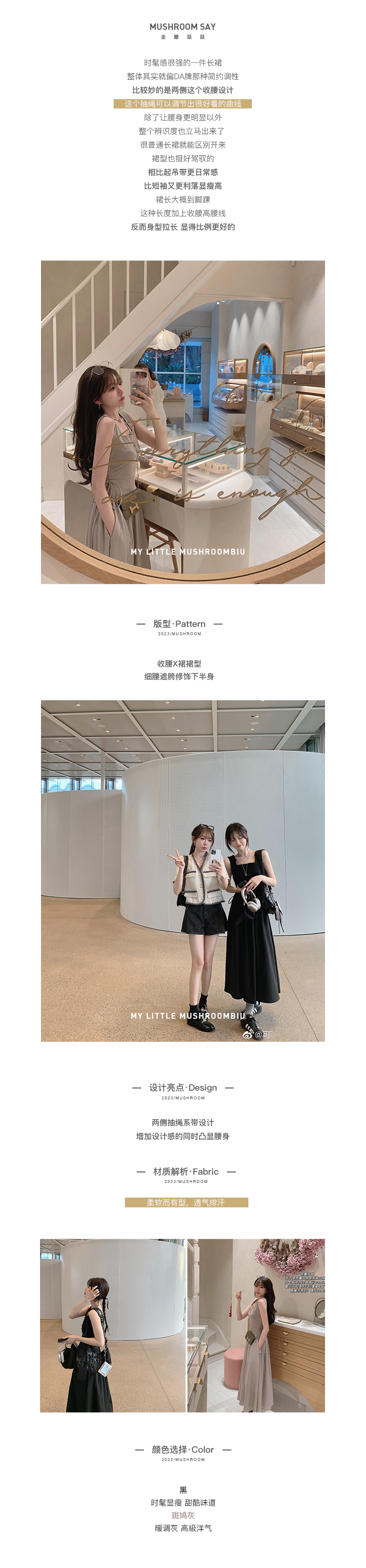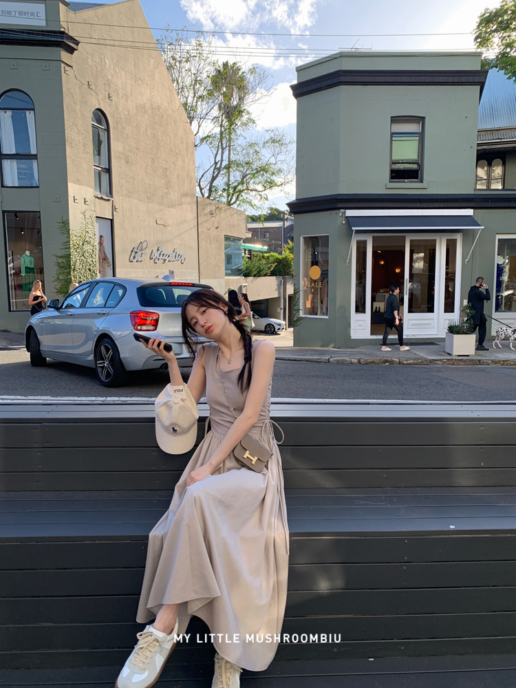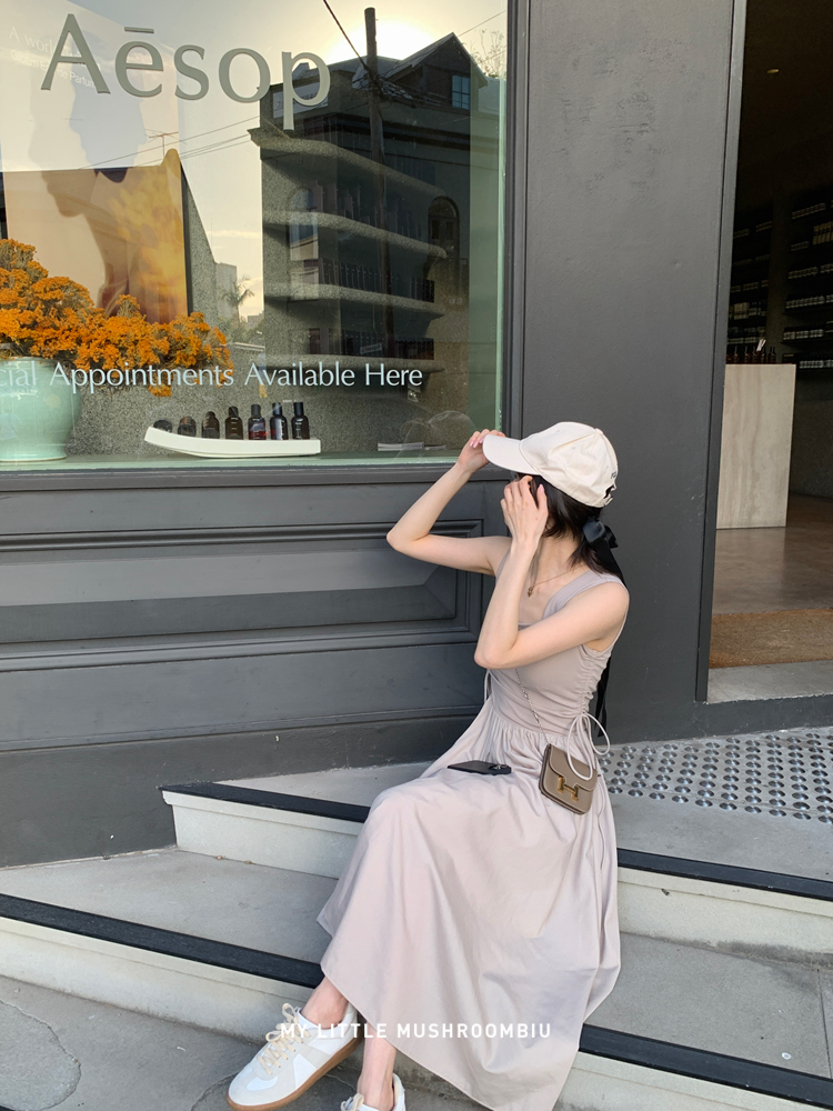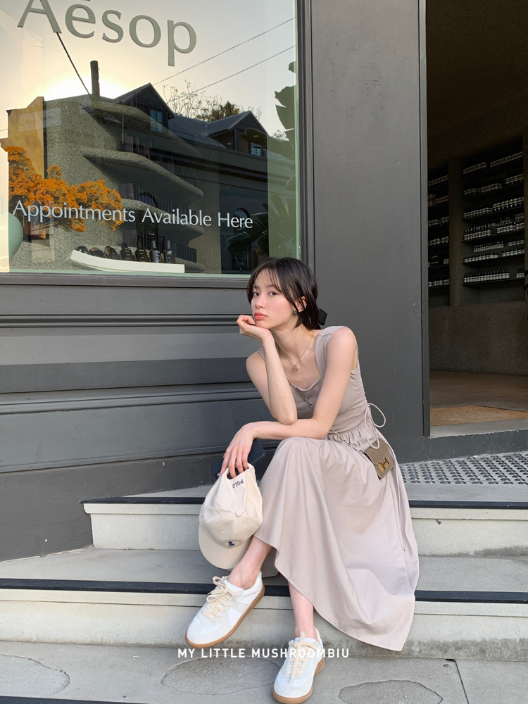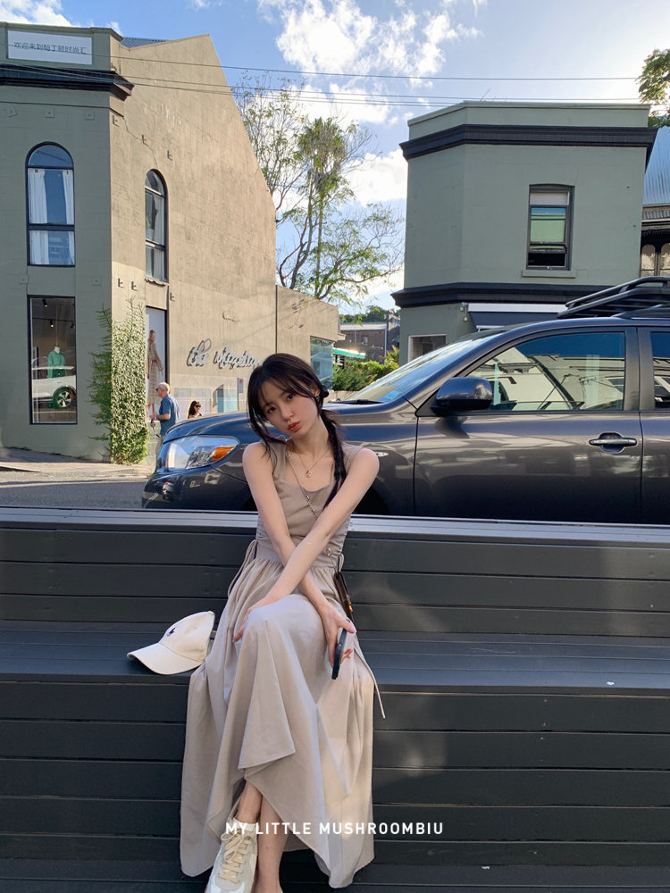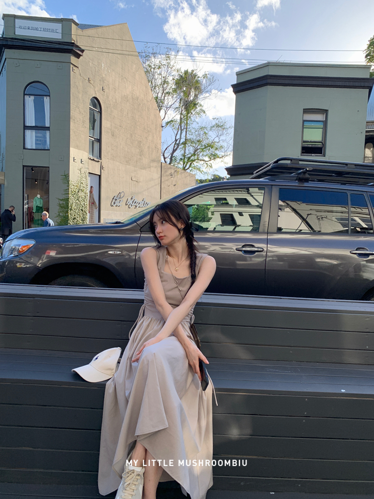 金蘑菇 balletcore芭蕾序曲 / 大气极简小心机收腰背带连衣裙