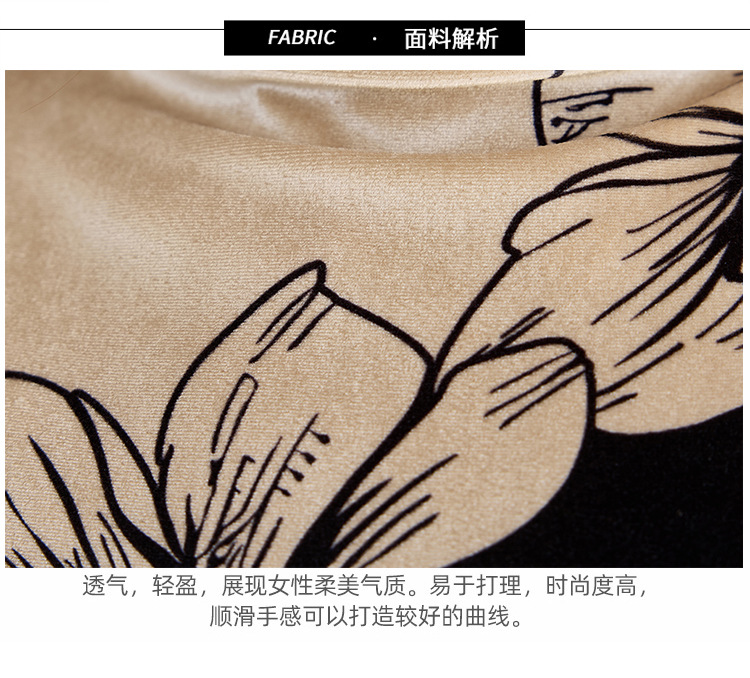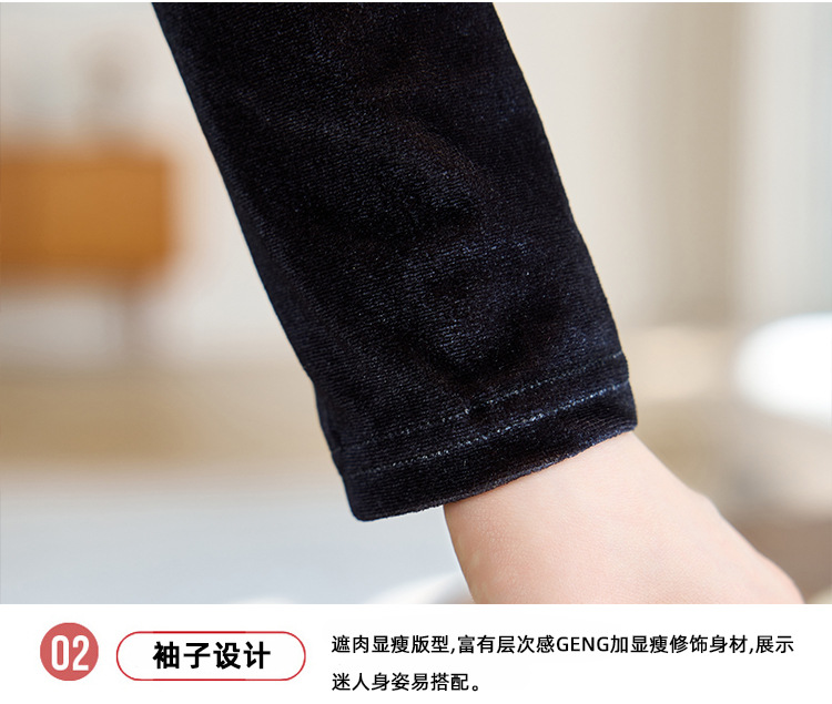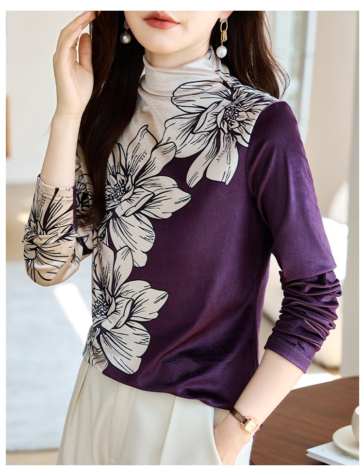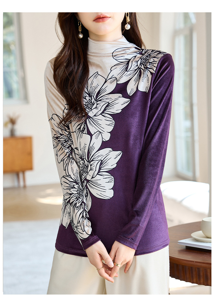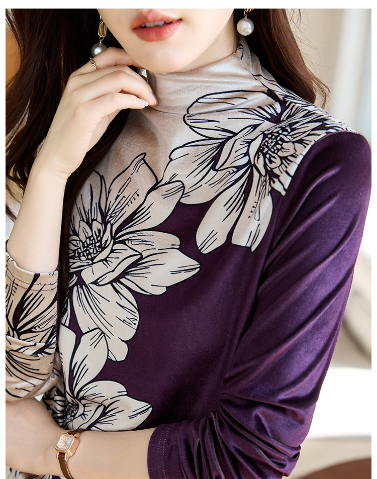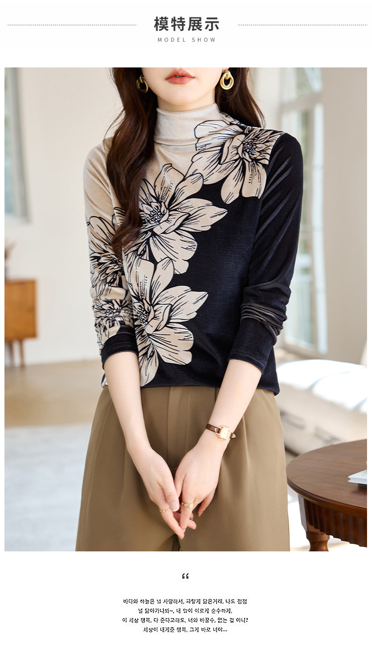 金丝绒内搭T恤,冬季新款印花加绒加厚洋气减龄显瘦打底衫KQL-A35N5387