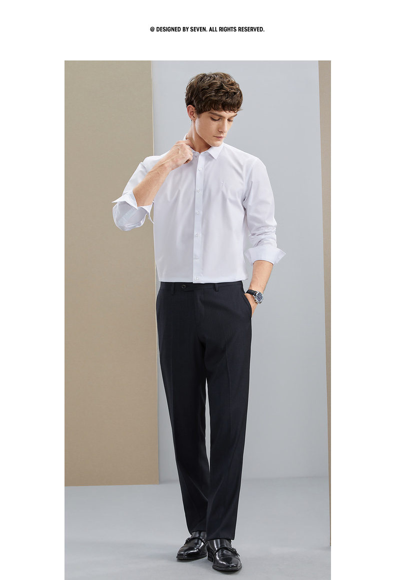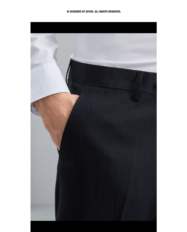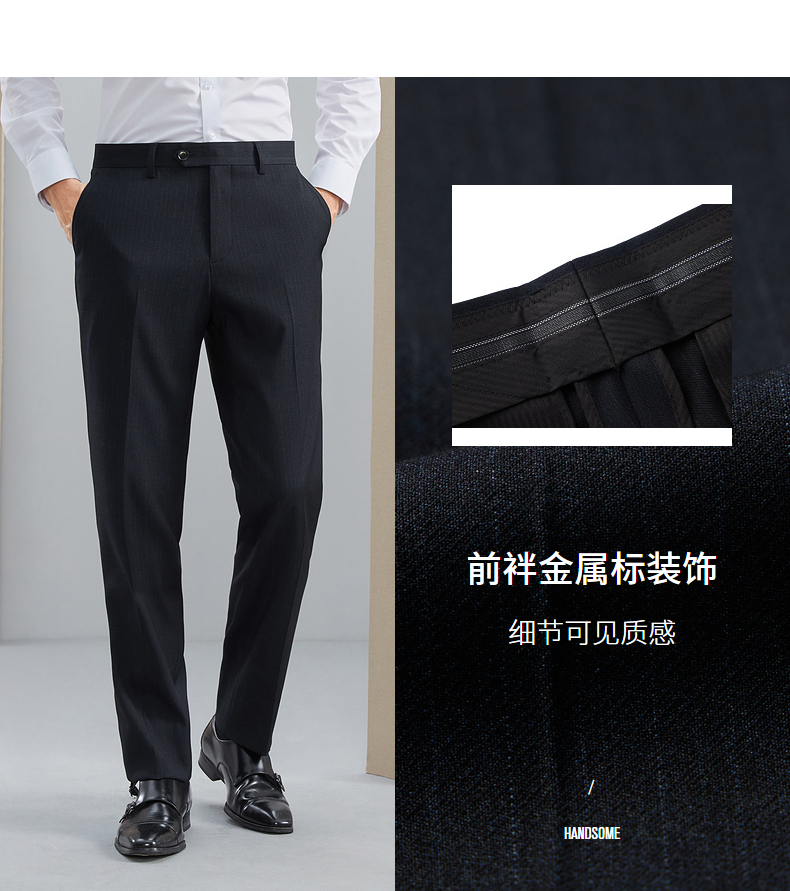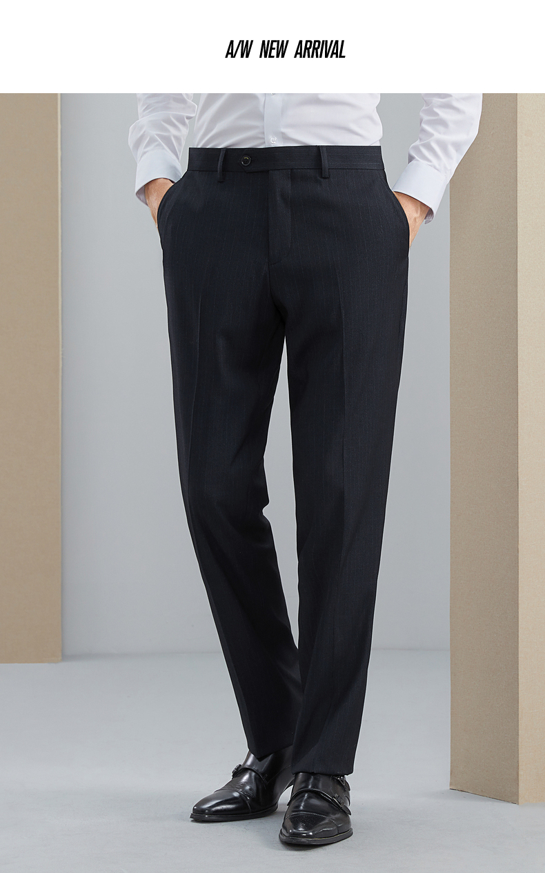 【特价】柒牌男装西裤男秋季新款商务休闲气质直筒裤色织条纹西装长裤 125H70160