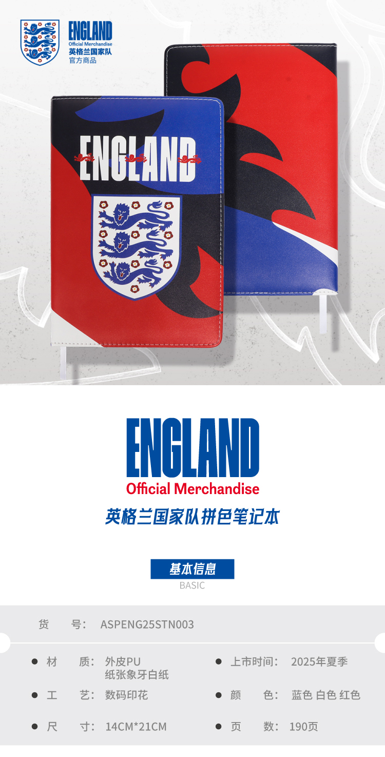 【官方正版】英格兰国家队 | 拼色笔记本PU封皮设计感文具周边