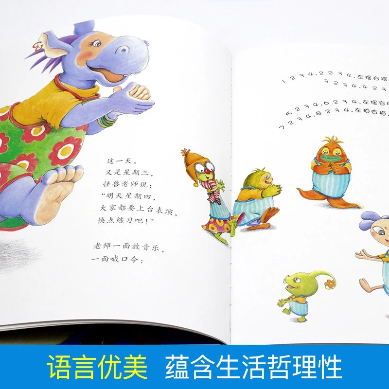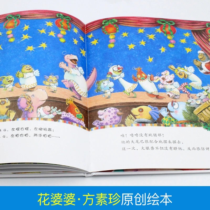 《花婆婆·方素珍原创绘本馆:天天星期三》讲述的是,每个星期三恐龙噜噜都要跟怪兽老师上舞蹈课,可他怎么学也学不会。该抬右脚时抬了左脚,该拍手时摇起了头。这一天,又是星期三。老师说,明天星期四大家都要上台表演。噜噜真希望星期四别来。他央求小天使把每天都变成了星期三,小天使满足了噜噜的愿望。噜噜开始挺高兴,可后来又觉得不对劲。因为,星期三的次日还是星期四啊。每天都是星期三,就等于每天的次日都是星期四。每天的次日是星期四,就等于每天都得准备次日上台表演。所以,噜噜宁愿上台表演!图书由台湾画家郝洛玟小姐绘画。