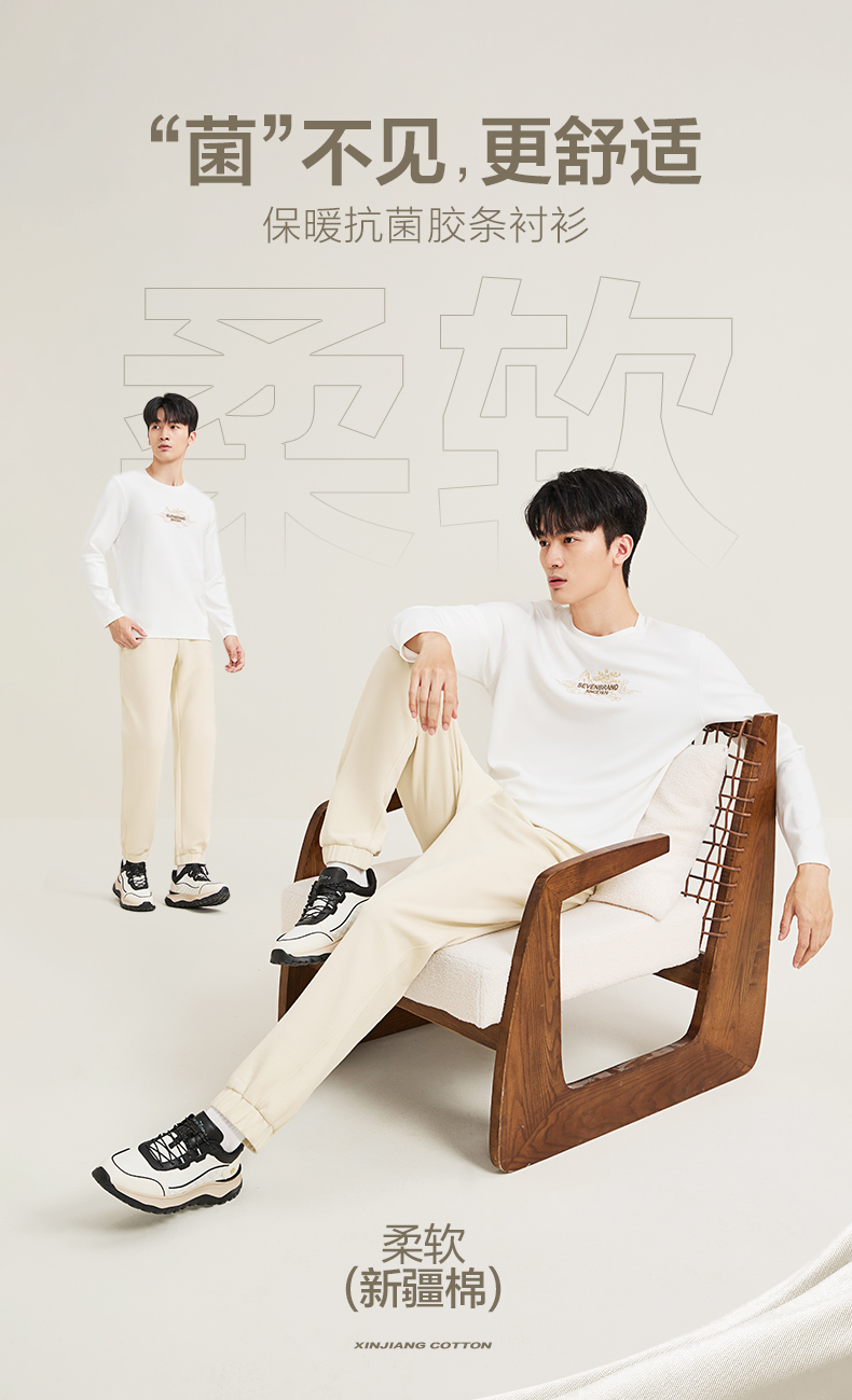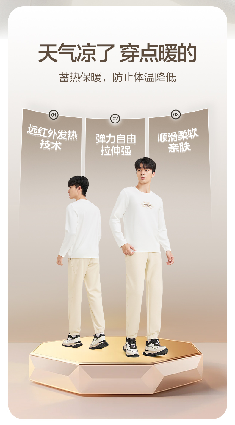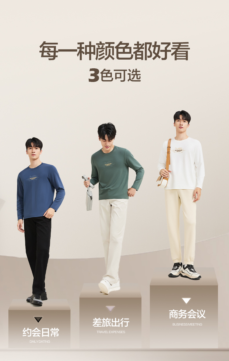【莫代尔/远红外发热】柒牌长袖T恤男2025新款时尚休闲圆领上衣129T70170