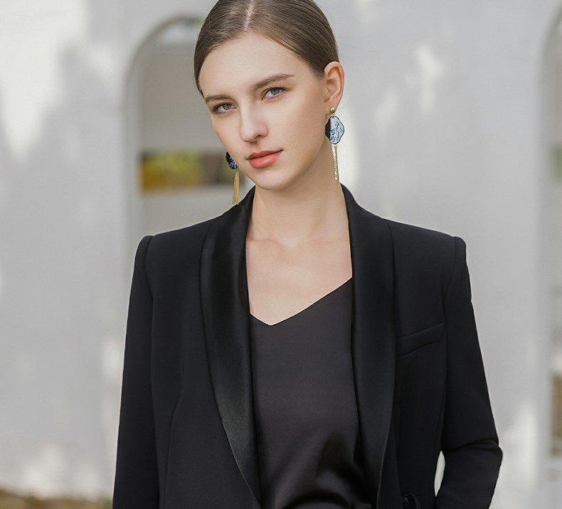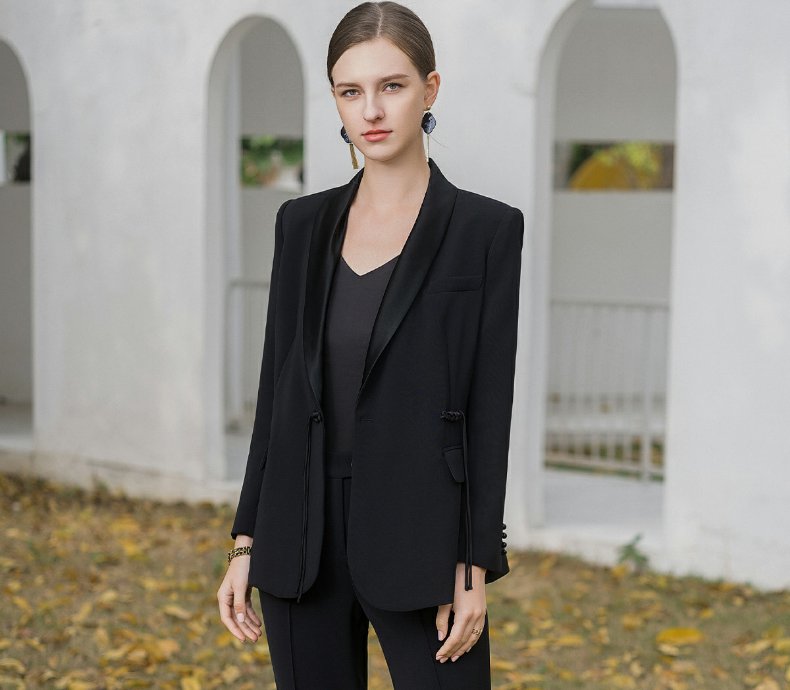 IWY/高端新中式国风黑色西装套装醋酸春修身高级感西服外套女CP2078