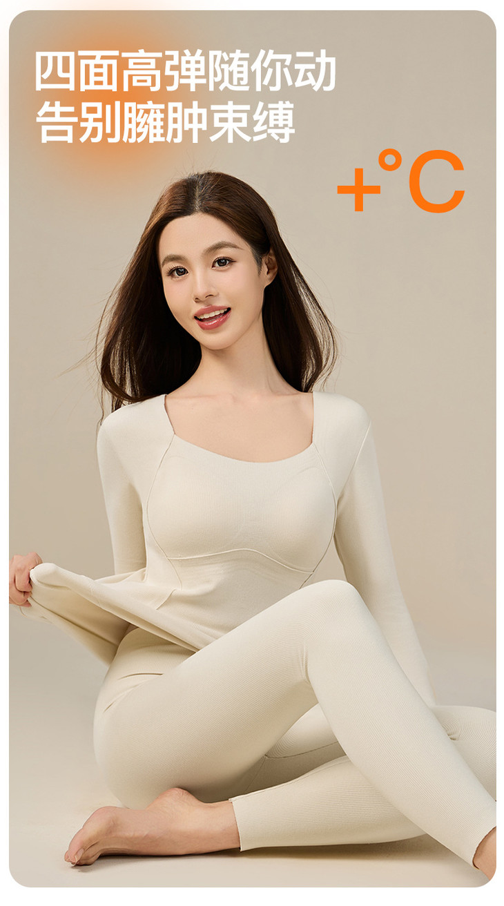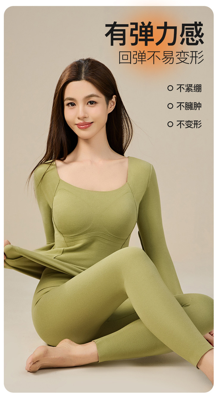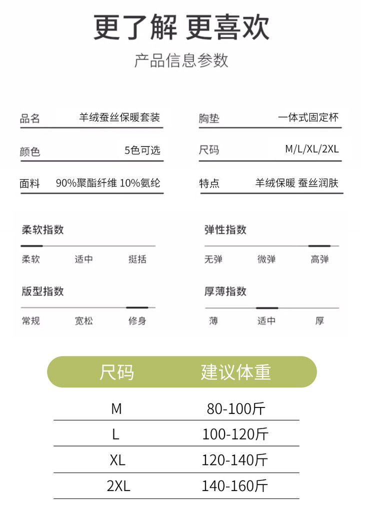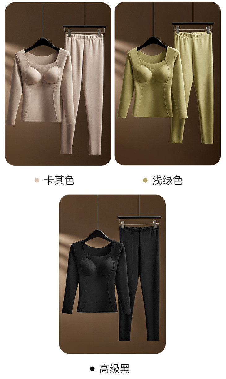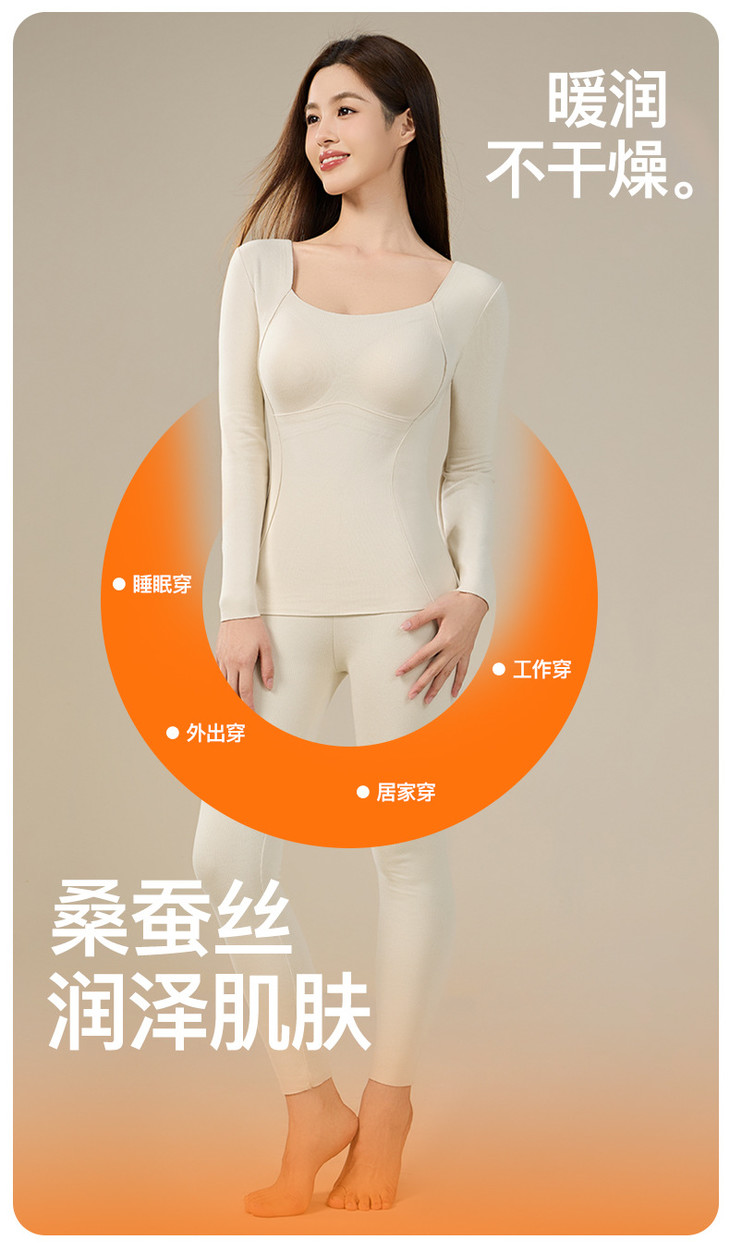 羊毛蚕丝发热保暖内衣,加绒加厚带胸垫一体上衣