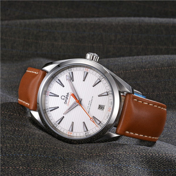 镜面材质 | 蓝宝石水晶玻璃 | 表盘 | 精钢表壳 水平“柚木”纹理银白色表盘尽显与众不同,设计灵感源自豪华游艇上的柚木甲板。6点钟位置亦设有日历窗口中央秒针涂覆橙色,分钟圈上“Seamaster”字样和四个刻钟数字也均由橙色呈现 日期显示 防磁 精钢旋入式表冠 透底 |