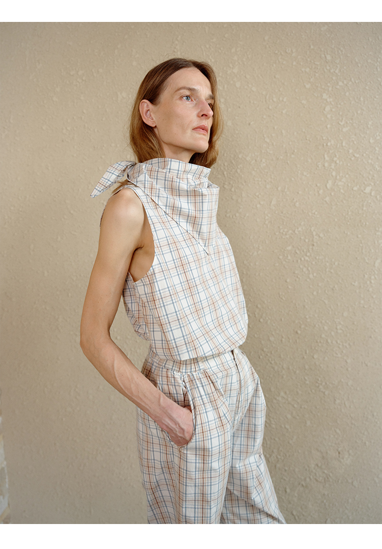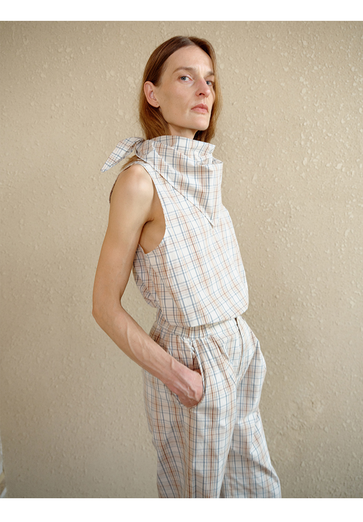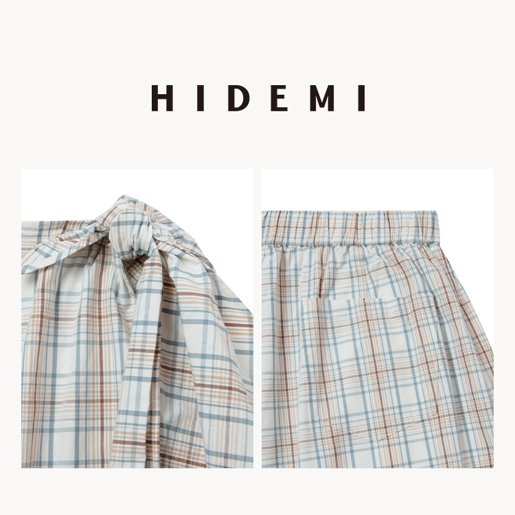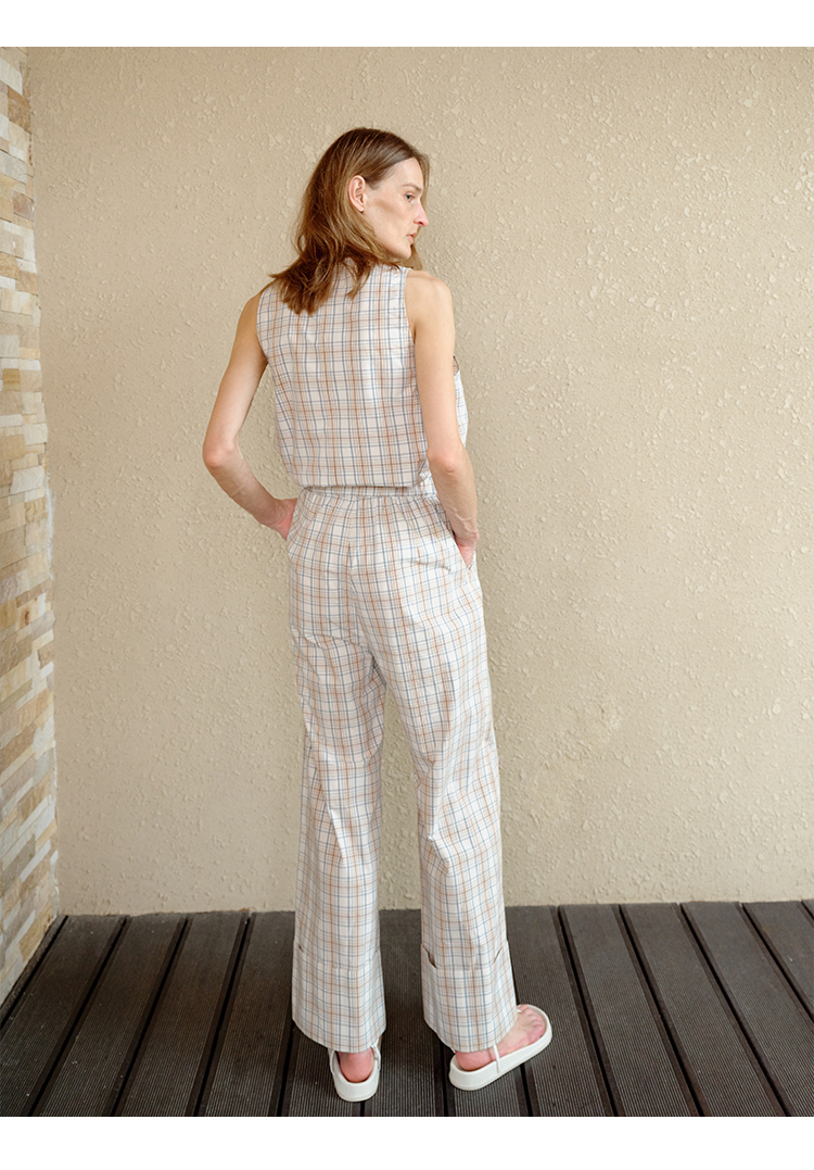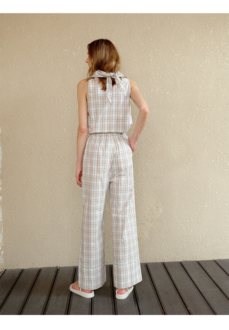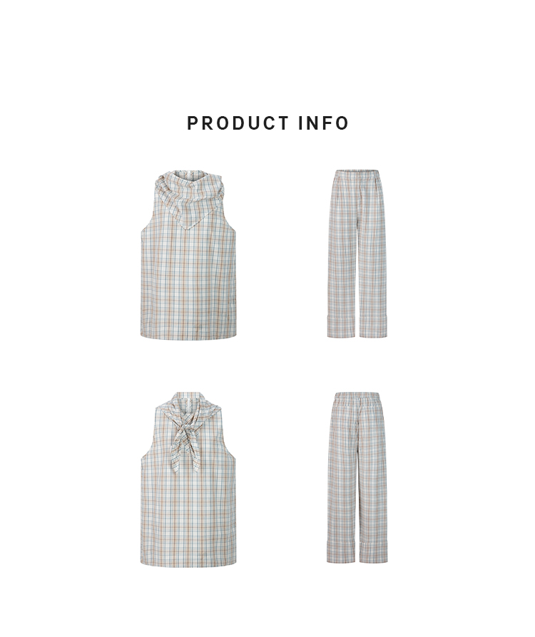 HIDEMI 度假系列极简色织格纹水洗棉感领巾背心阔腿裤套装 背心/长裤