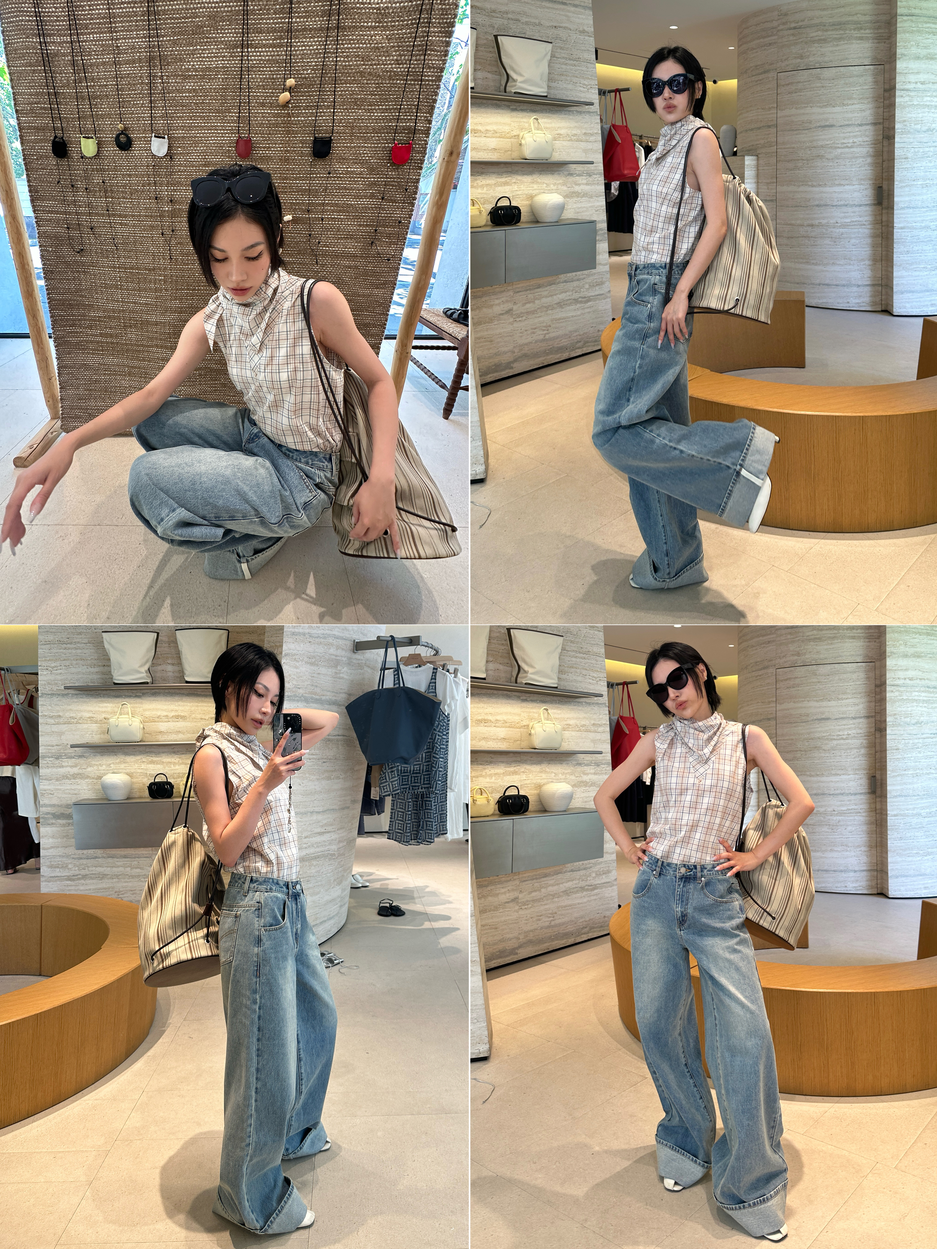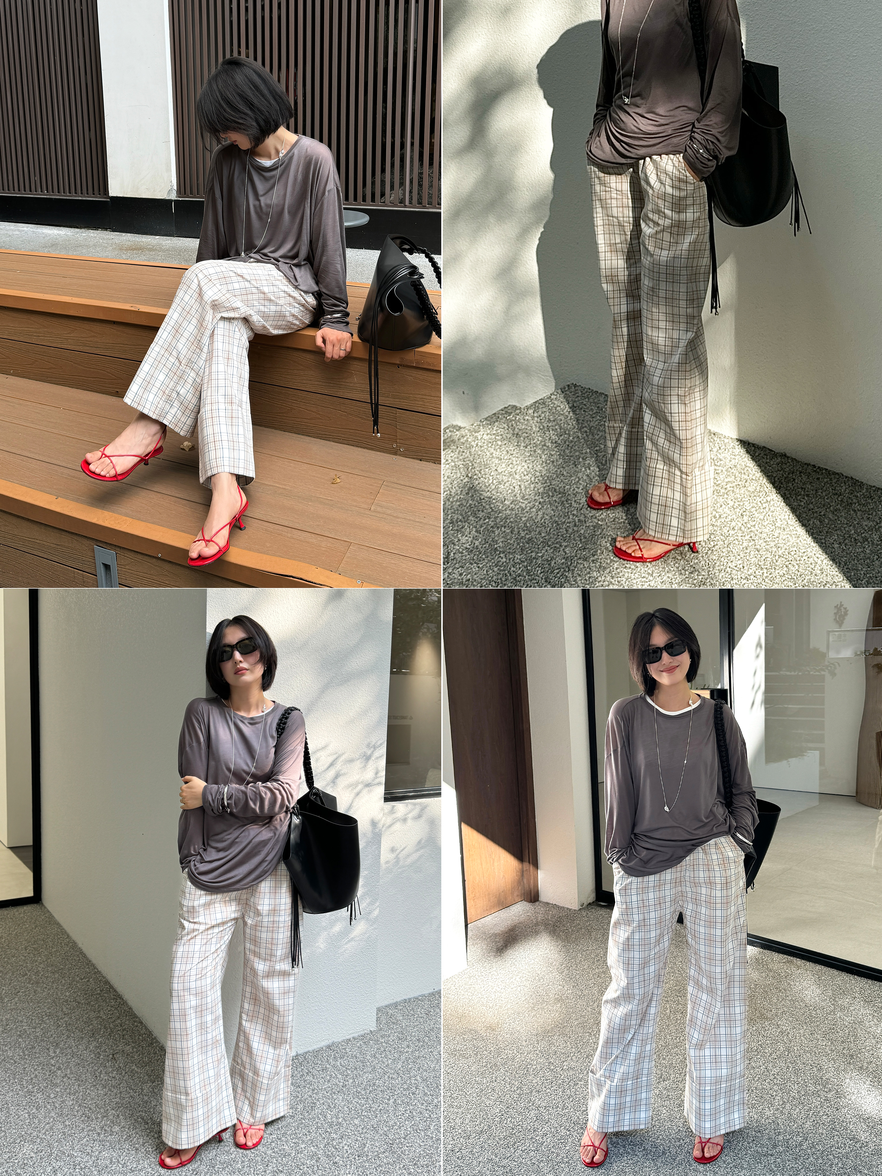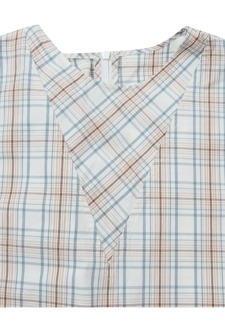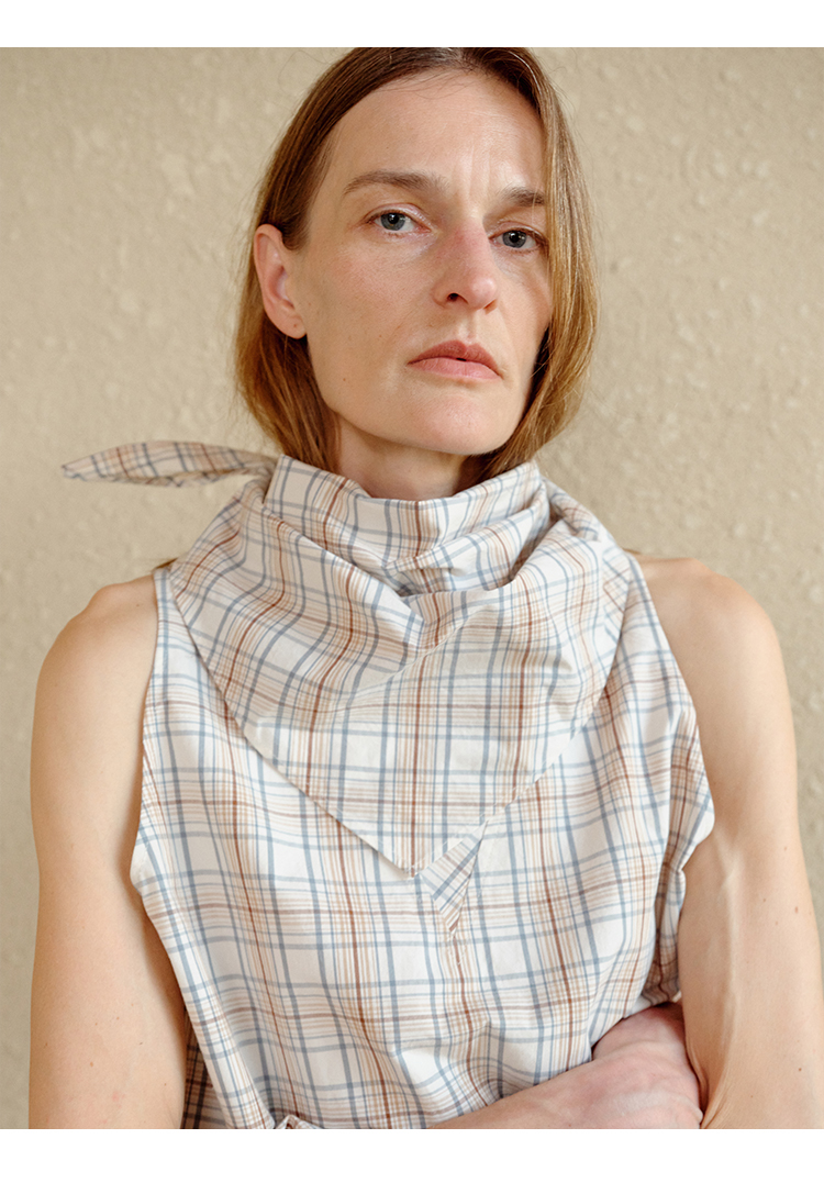 HIDEMI 度假系列极简色织格纹水洗棉感领巾背心阔腿裤套装 背心/长裤