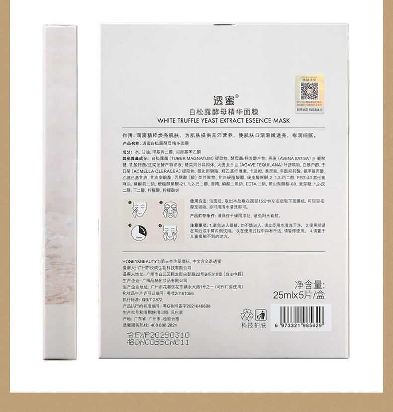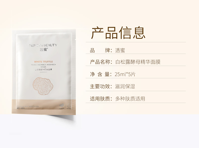 [白松露面膜]【59.9元任选40片丨低至1.49元/片】透蜜 白松露酵母精华面膜(5片盒装)