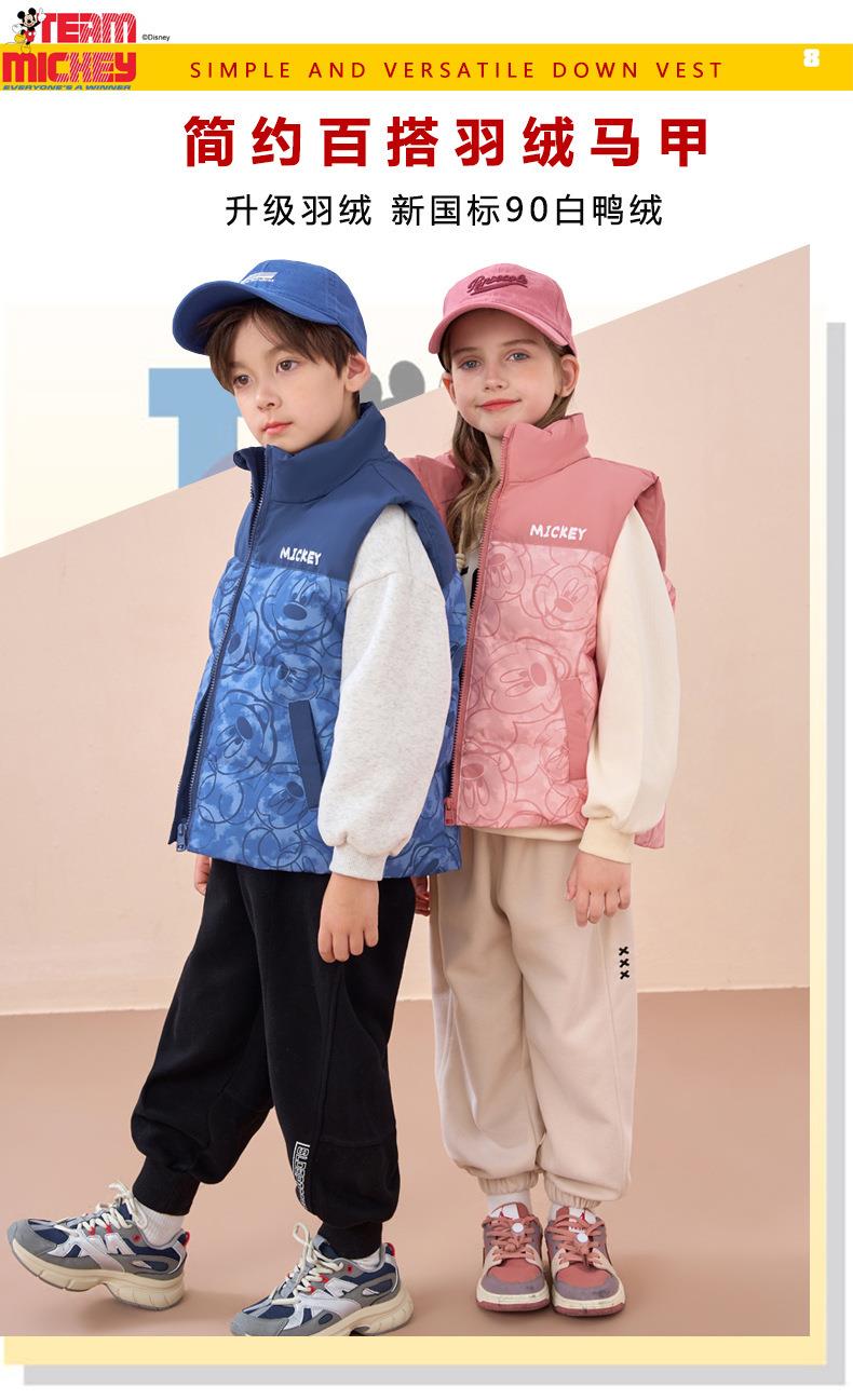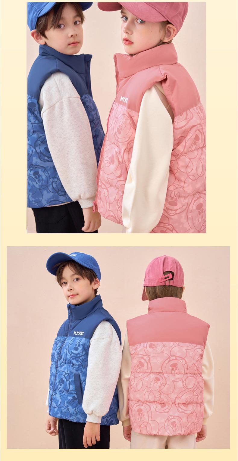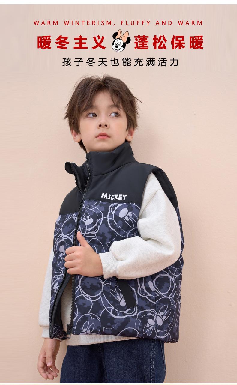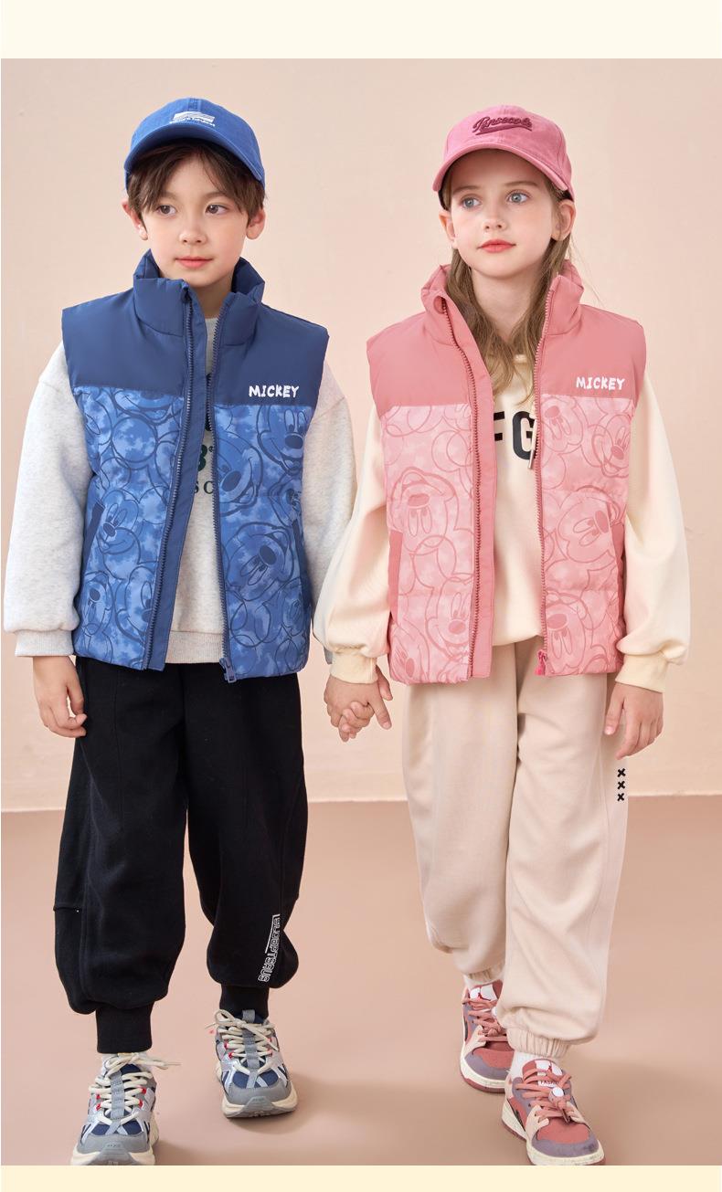 迪士尼儿童羽绒马甲白鸭绒中小童秋冬装男童女童宝宝坎肩加厚背心