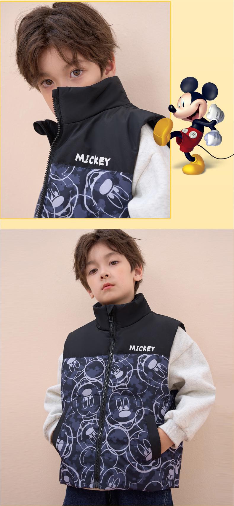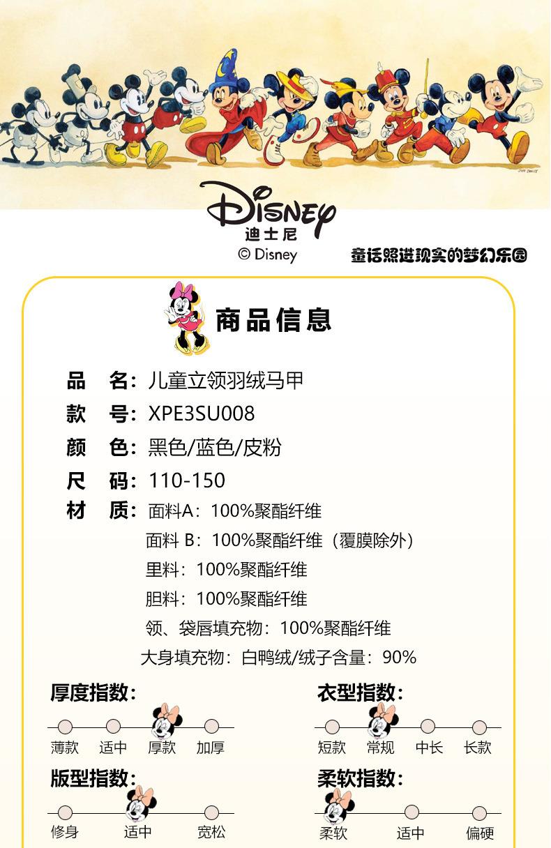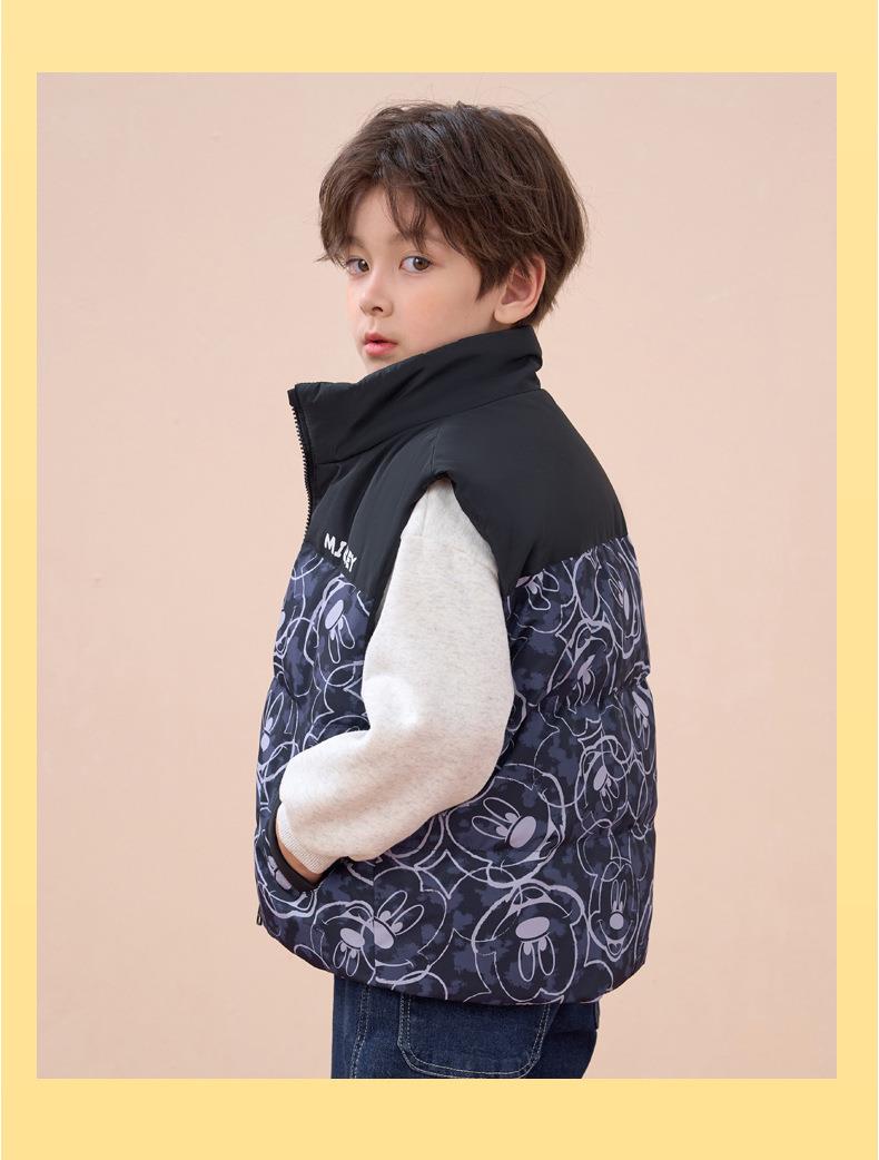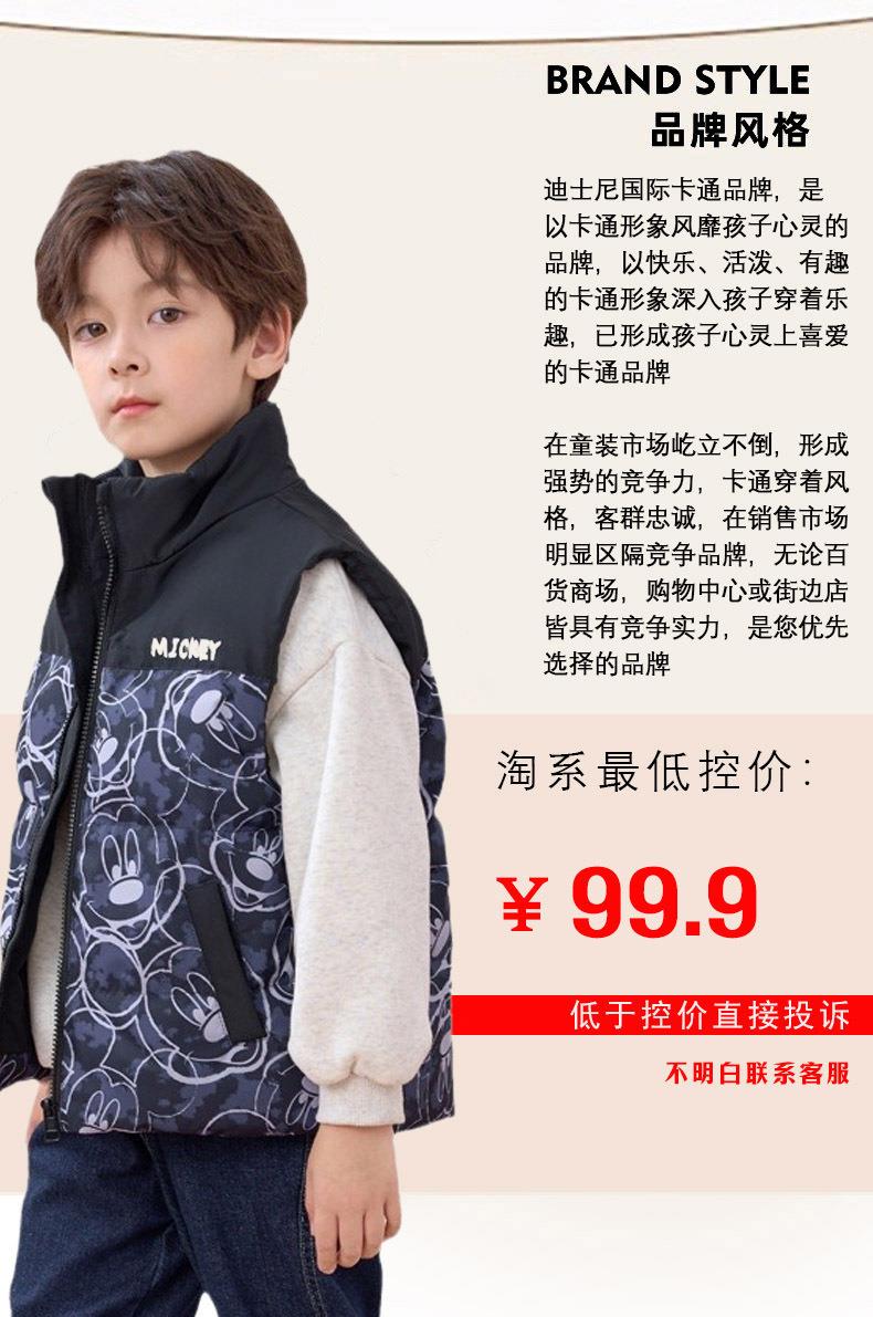 迪士尼儿童羽绒马甲白鸭绒中小童秋冬装男童女童宝宝坎肩加厚背心