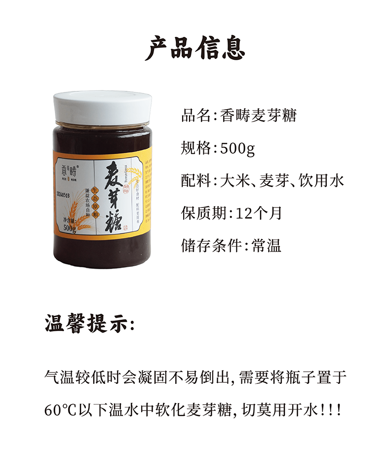 【谦益】香畴 有机麦芽糖500g 生态原粮 传统工艺熬制 还原儿时味道 可代替白砂糖/蜂蜜调味 健康本味 87° 入药品质