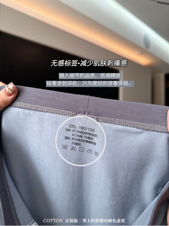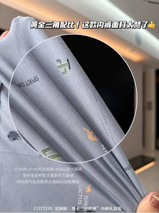 后置真实拍摄,你们感受一下面料的质感!抛开专柜溢价, 市面上这个质量的内内随便一个牌子都要卖到30一件的!
