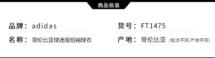 ADIDAS阿迪达斯20/21哥伦比亚主场球迷短袖男FT1475