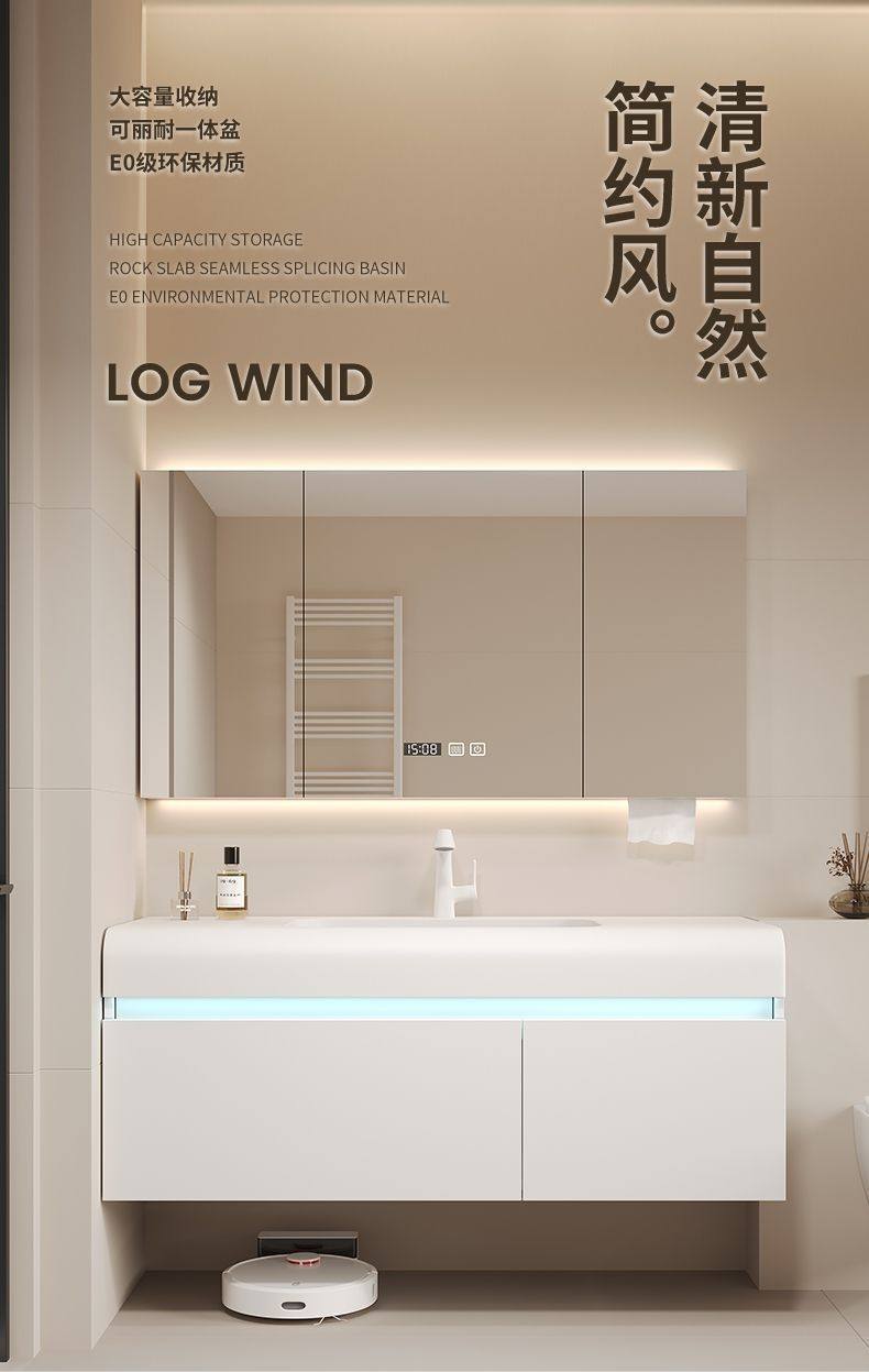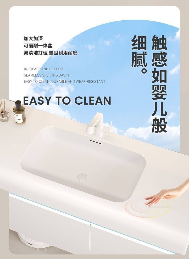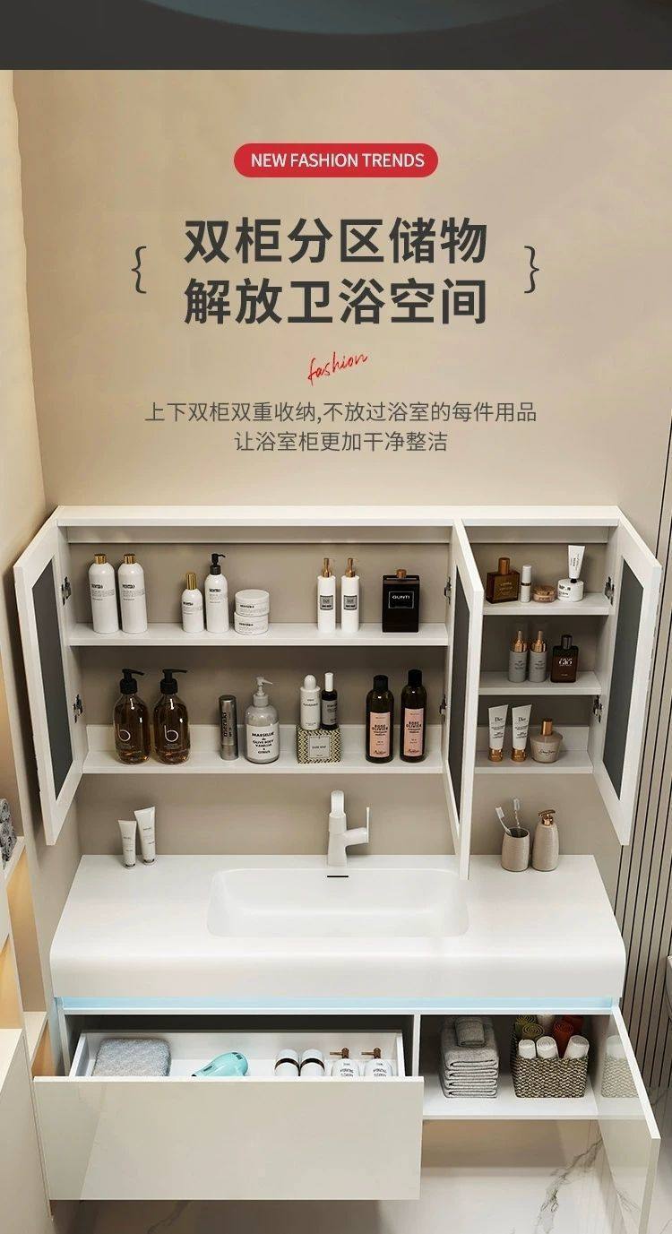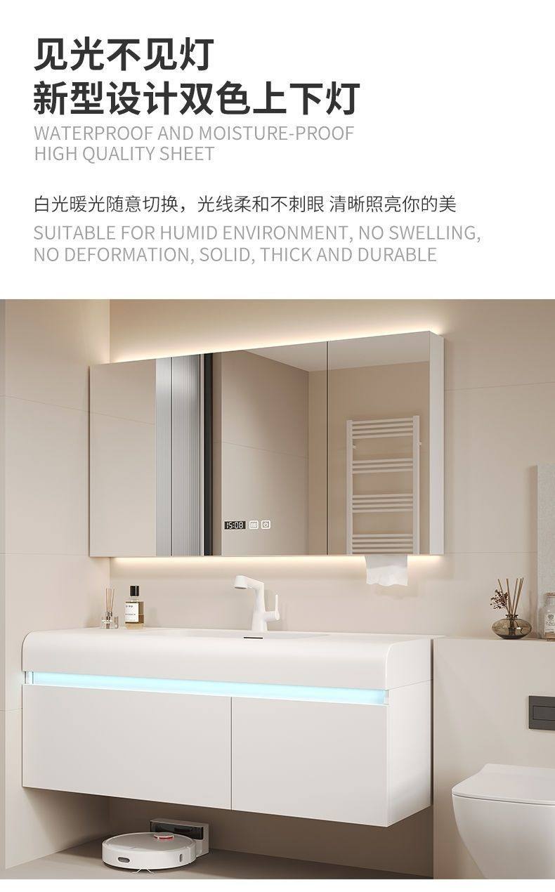 洗漱卫生间台洗脸盆一体奢风浴室柜网红洗手盆智能柜组合可丽耐轻