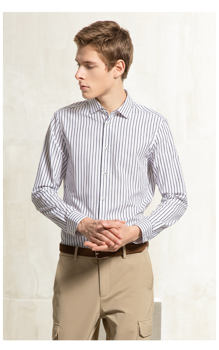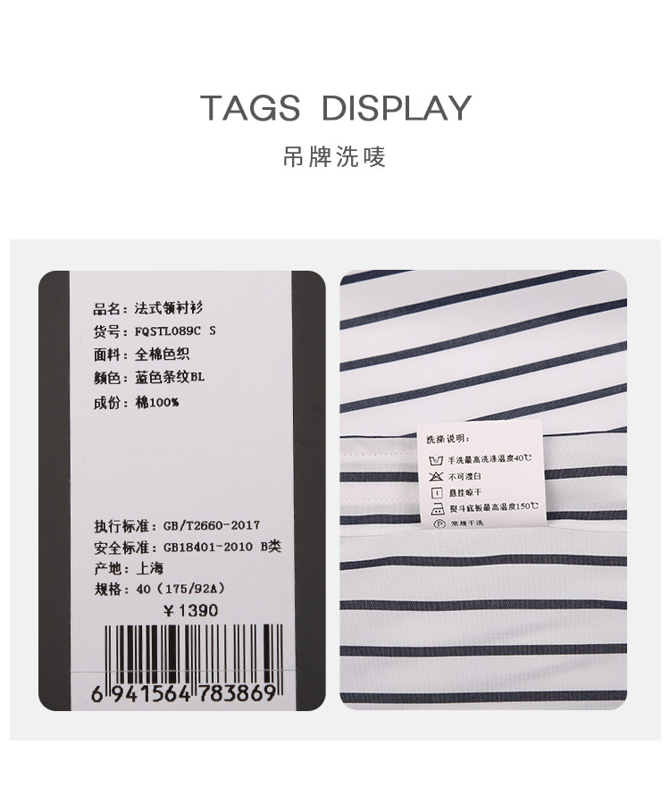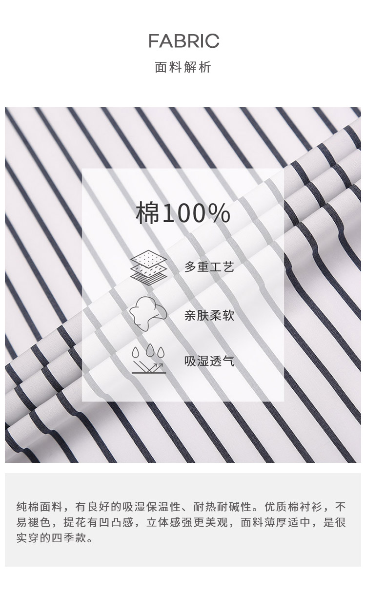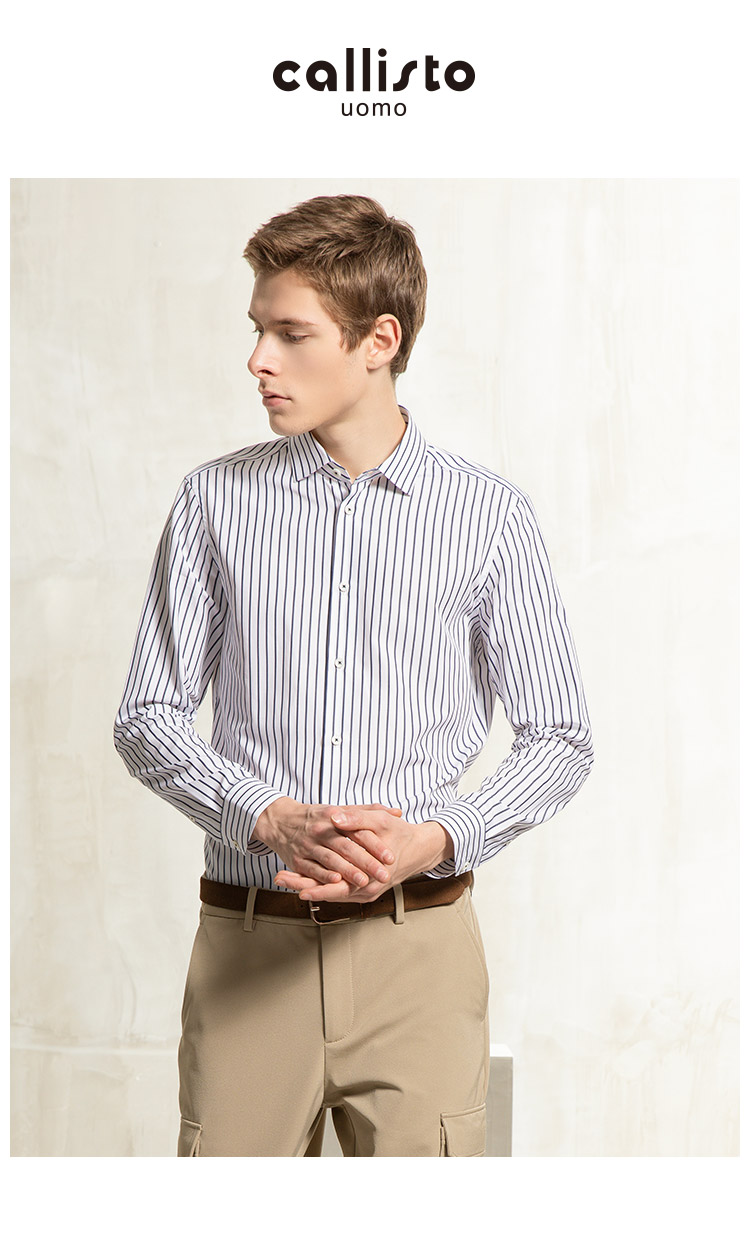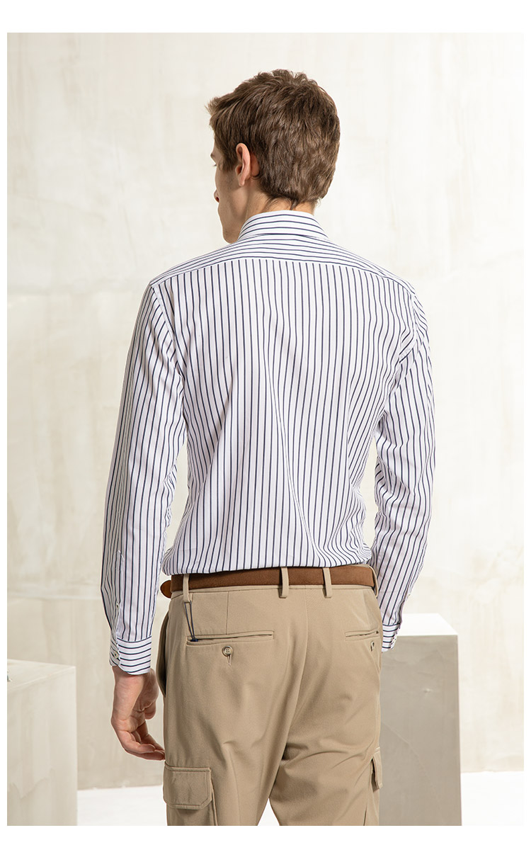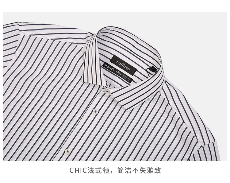callisto全棉色织蓝色条纹法式领衬衫 FQSTL089C