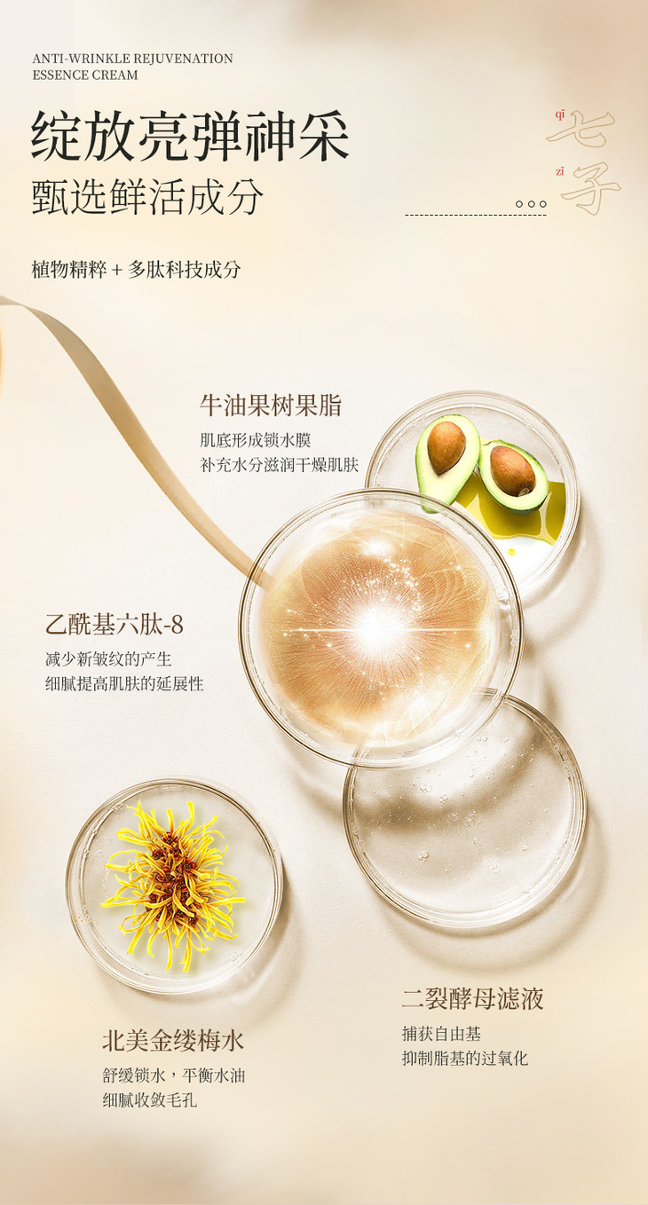 【肌安妮七子抗皱嫩肤精华霜】淡化细纹细腻毛孔提亮丰盈舒缓肌肤