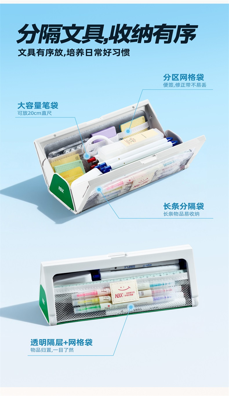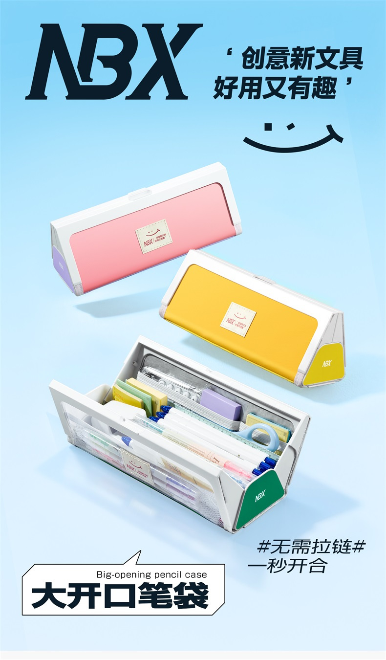 优点简直吊打市面上绝大普通文具盒✅实拍 无拉链设计:告别卡顿、脱链,娃单手一秒开合 超大开口:角度比普通笔袋大一倍,文具一目了然 三角稳固:挺括不软塌,桌面放置不倾倒 多层分区:分类收纳,小文具整齐不凌乱 超大容量:轻松装20+支笔+尺子橡皮等 防水防污:外层防泼、内里易擦,清洁零压力