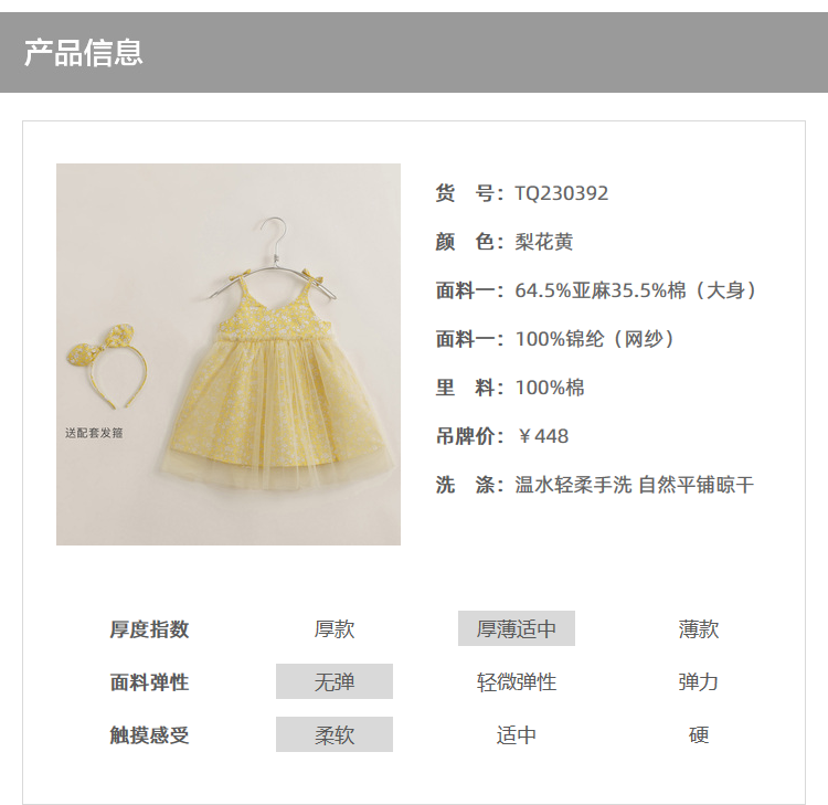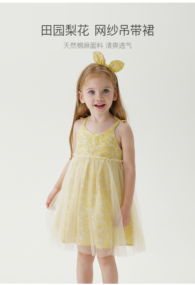 【马克珍妮 芦芙】新款夏装 女童梨花网纱吊带连衣裙230392
