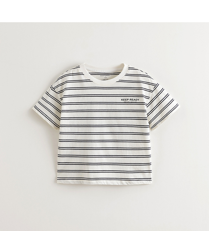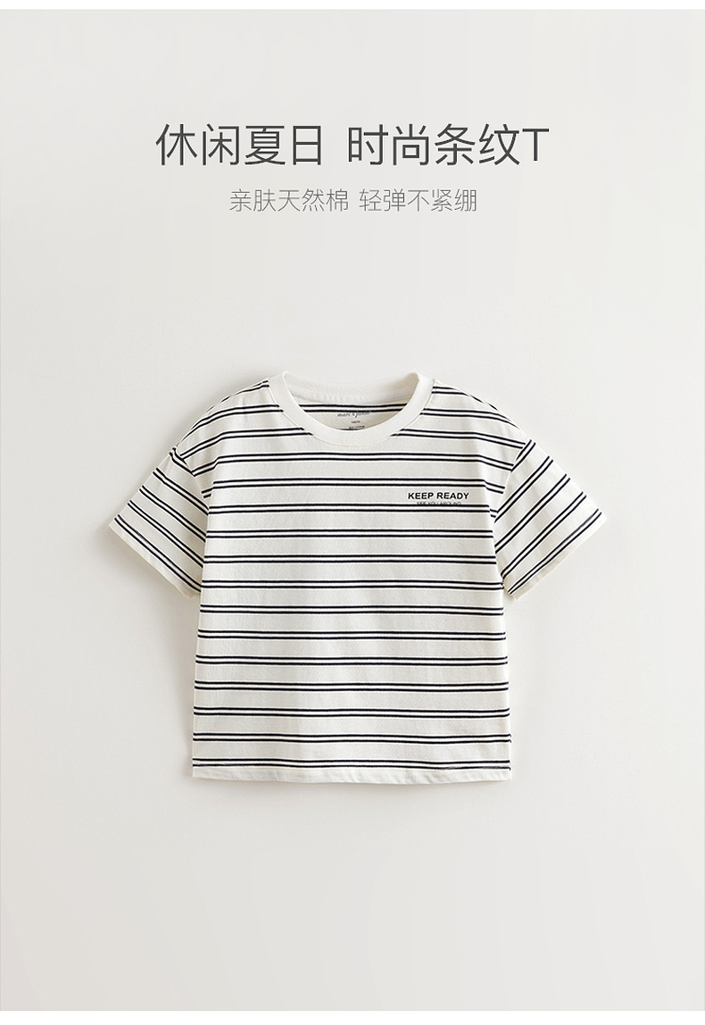 马克珍妮男童休闲夏日条纹短袖T恤 儿童上衣2025年夏装新款550627
