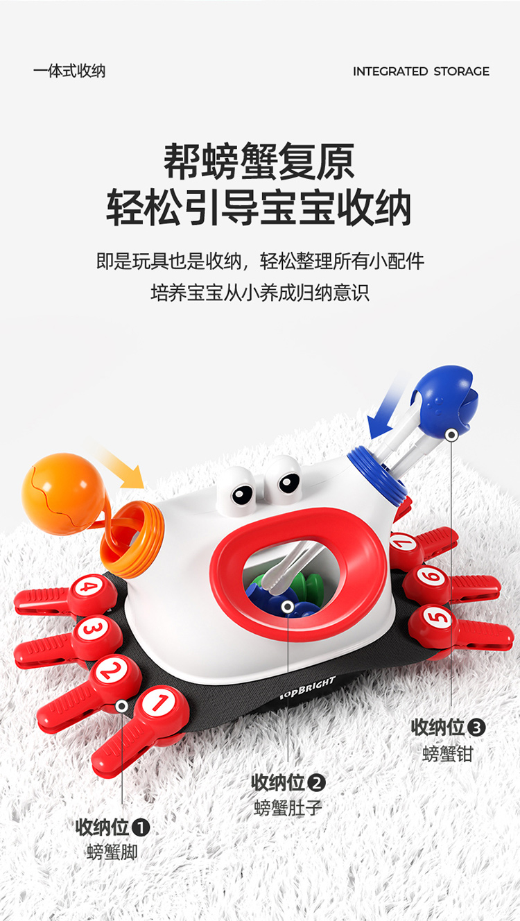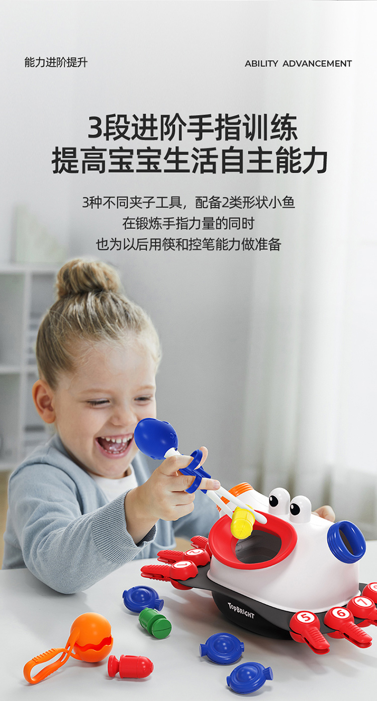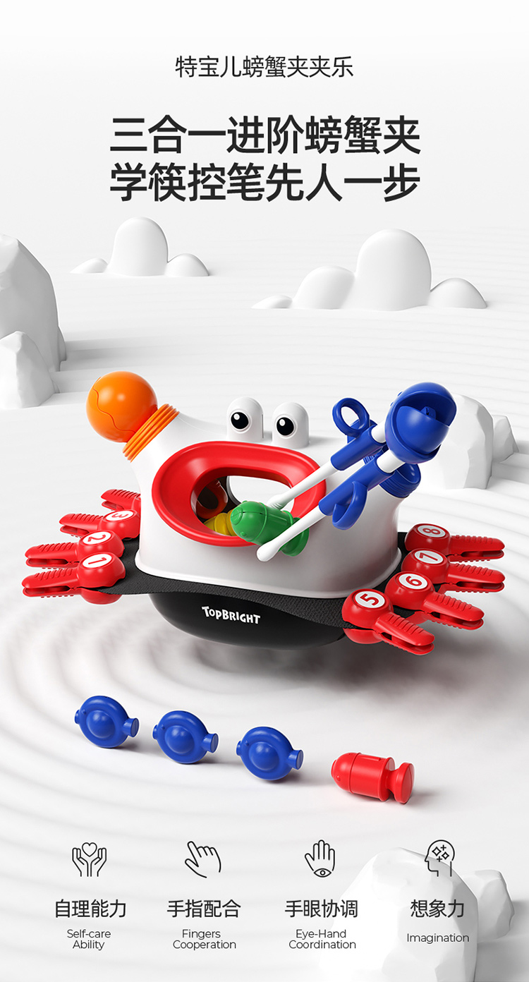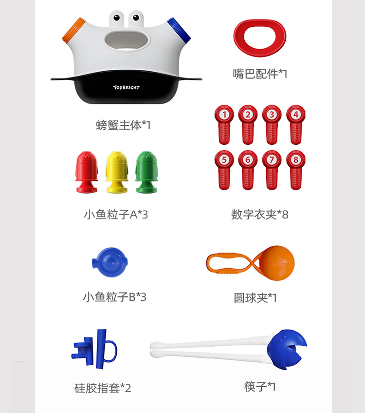 【三合一进阶螃蟹夹 学筷控笔先人一步】 TOPBRIGHT特宝儿螃蟹夹夹乐 3种夹子工具促进手指训练 提高宝宝生活自主能力 数字认知 为用筷和控笔做准备