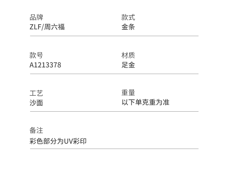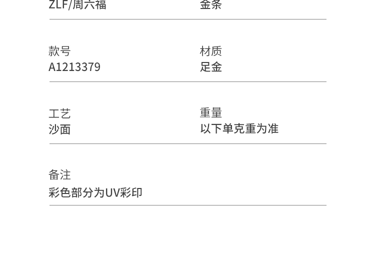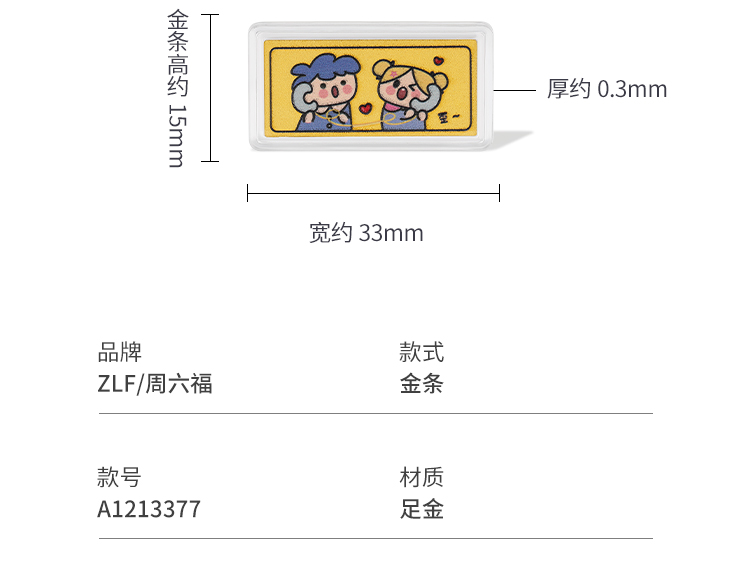 周六福投资金为爱告白金条足金计价黄金送女友送女友礼物