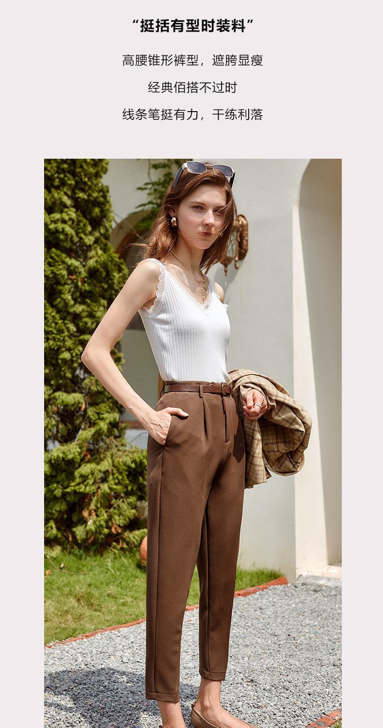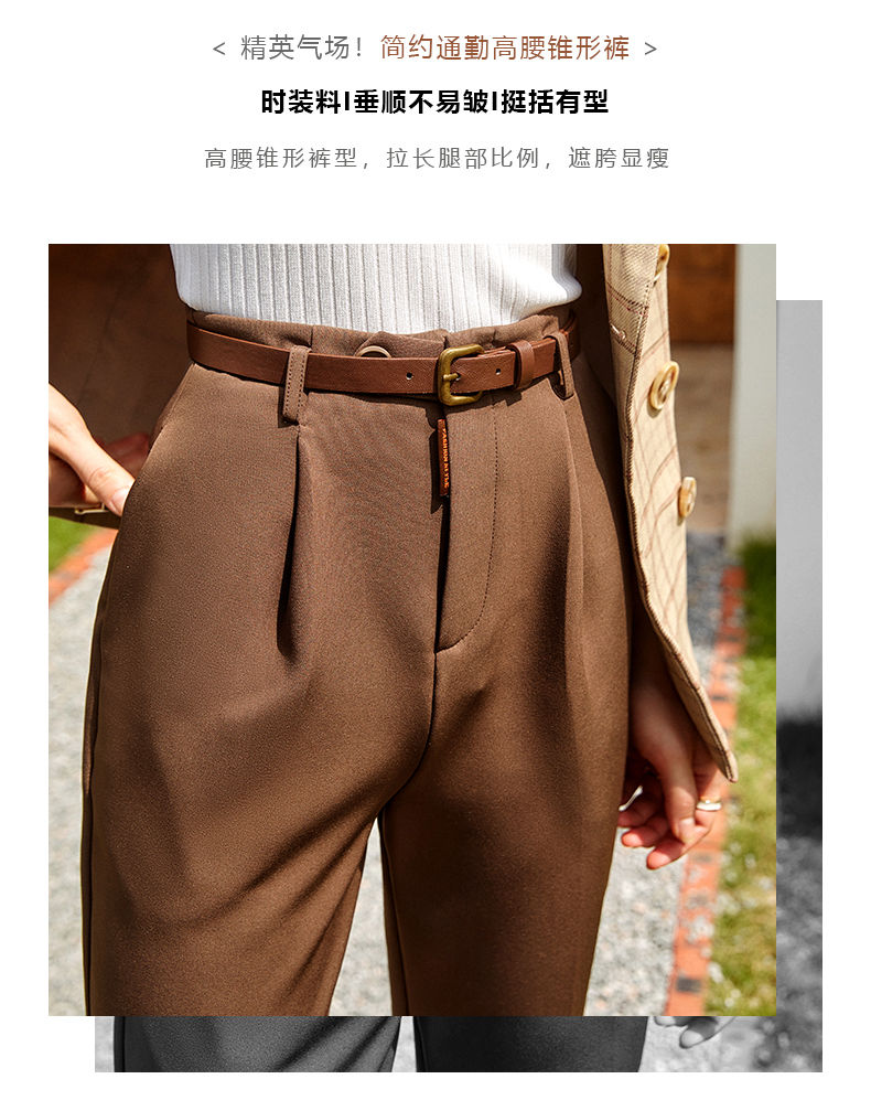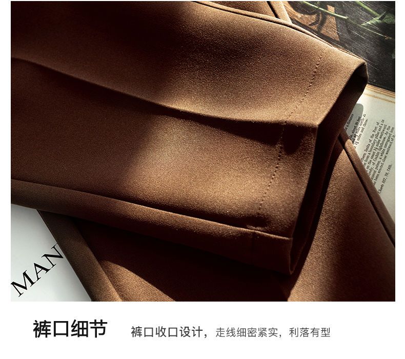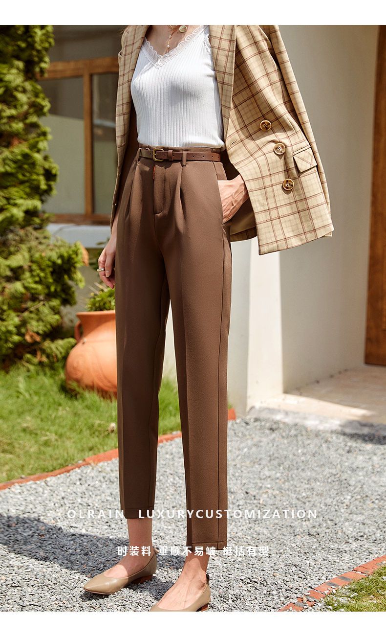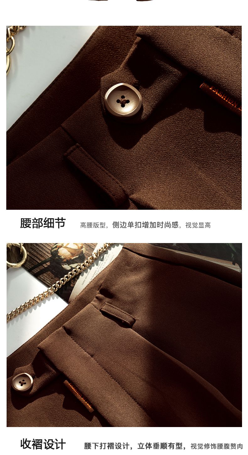 欧芮儿咖色休闲裤女秋季新款2021高腰显瘦气质简约垂感直筒九分裤