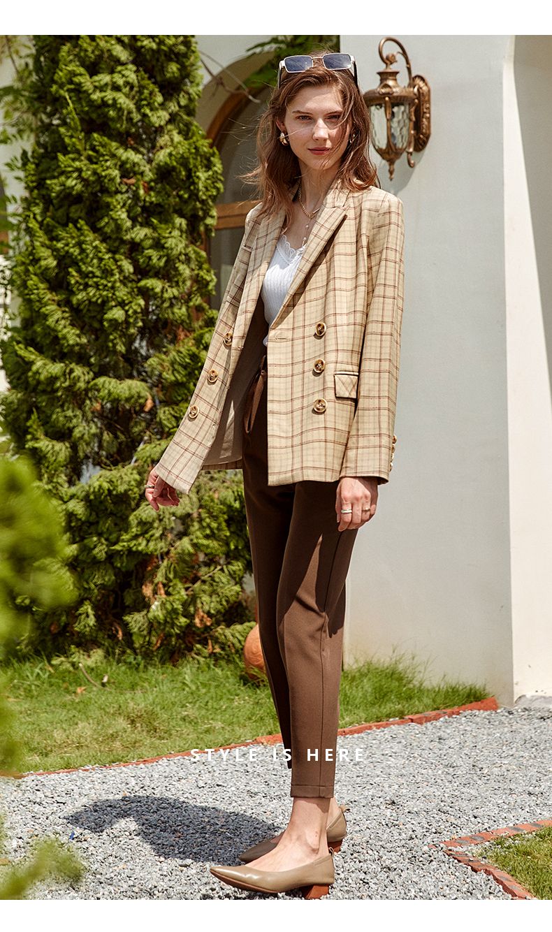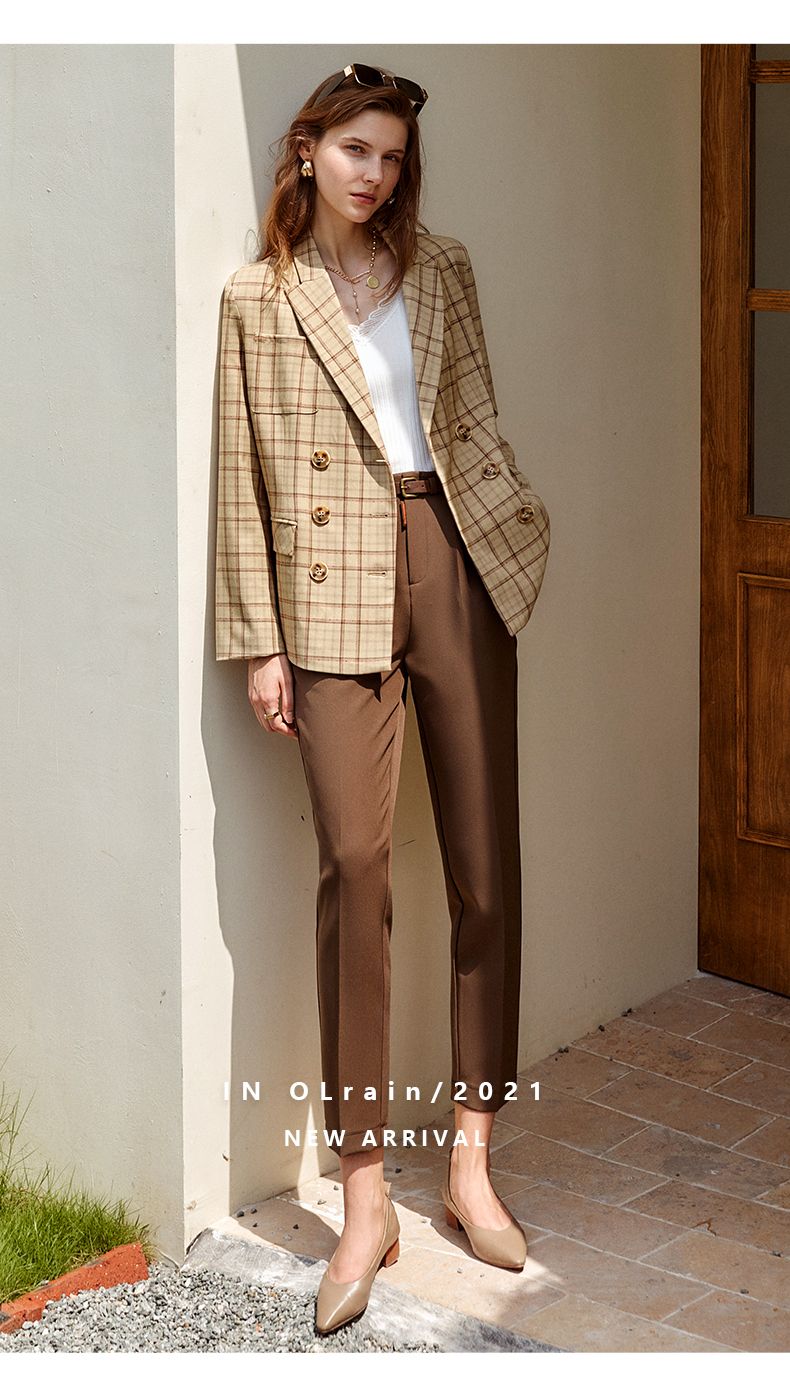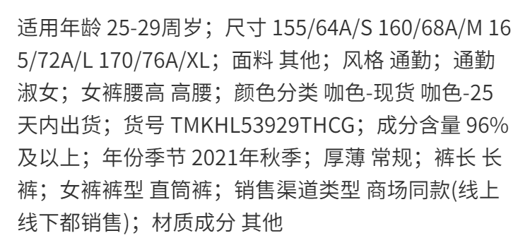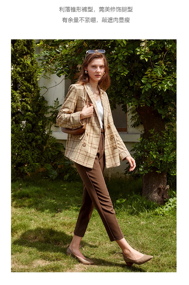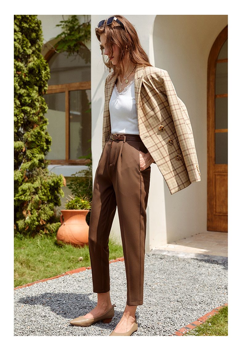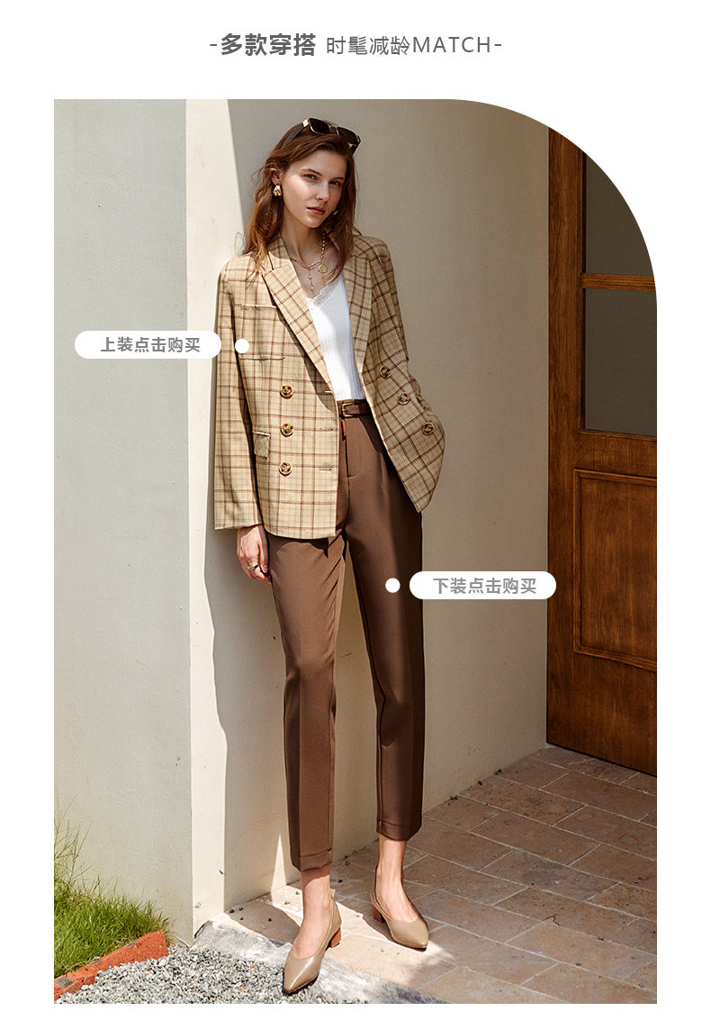 欧芮儿咖色休闲裤女秋季新款2021高腰显瘦气质简约垂感直筒九分裤
