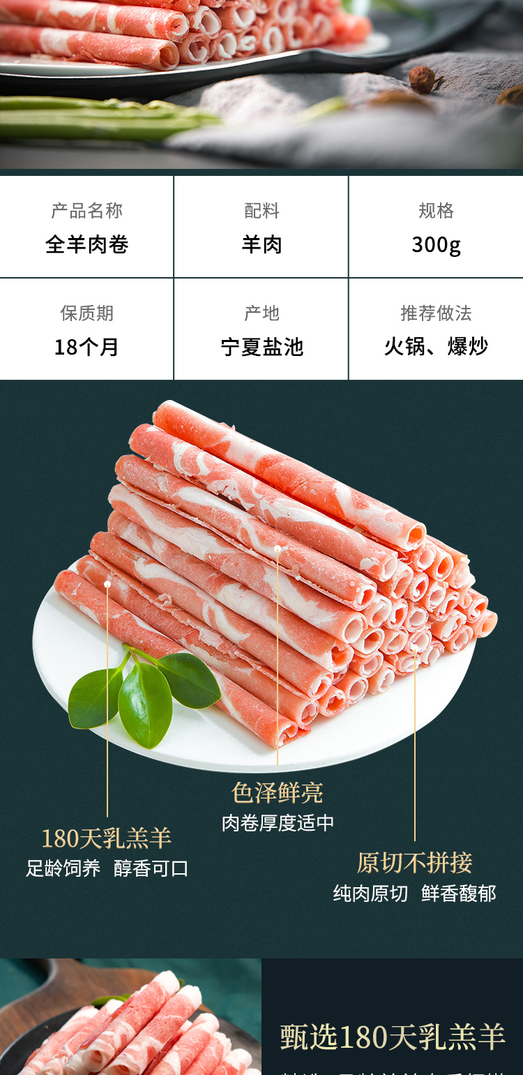 宁鑫 盐池滩羊 全羊肉卷300g 羊肉生鲜 原切羊肉片 宁夏滩羊肉 火锅食材 国产羊肉