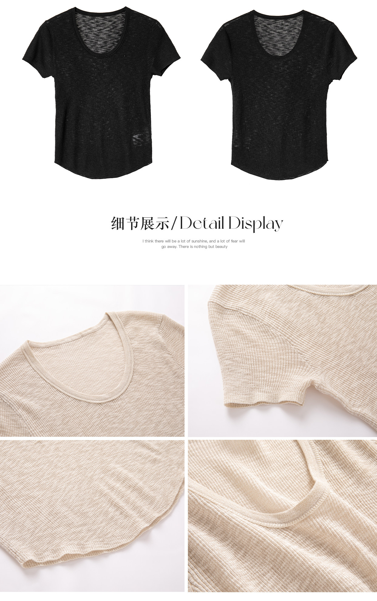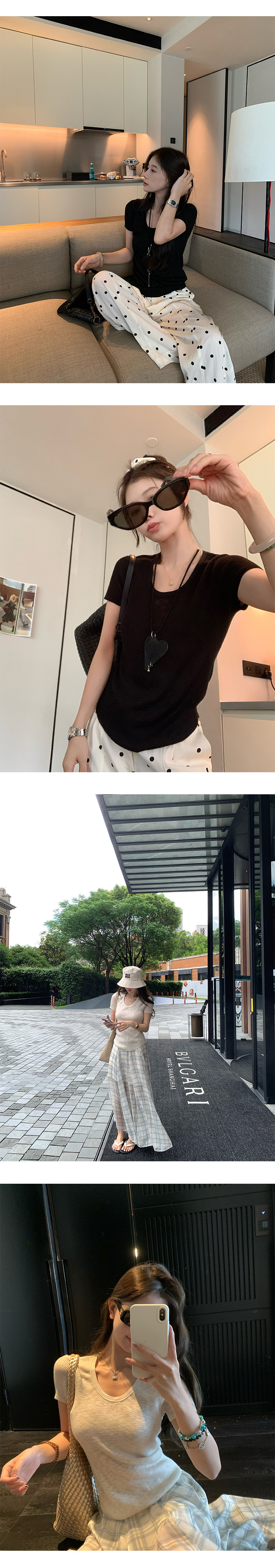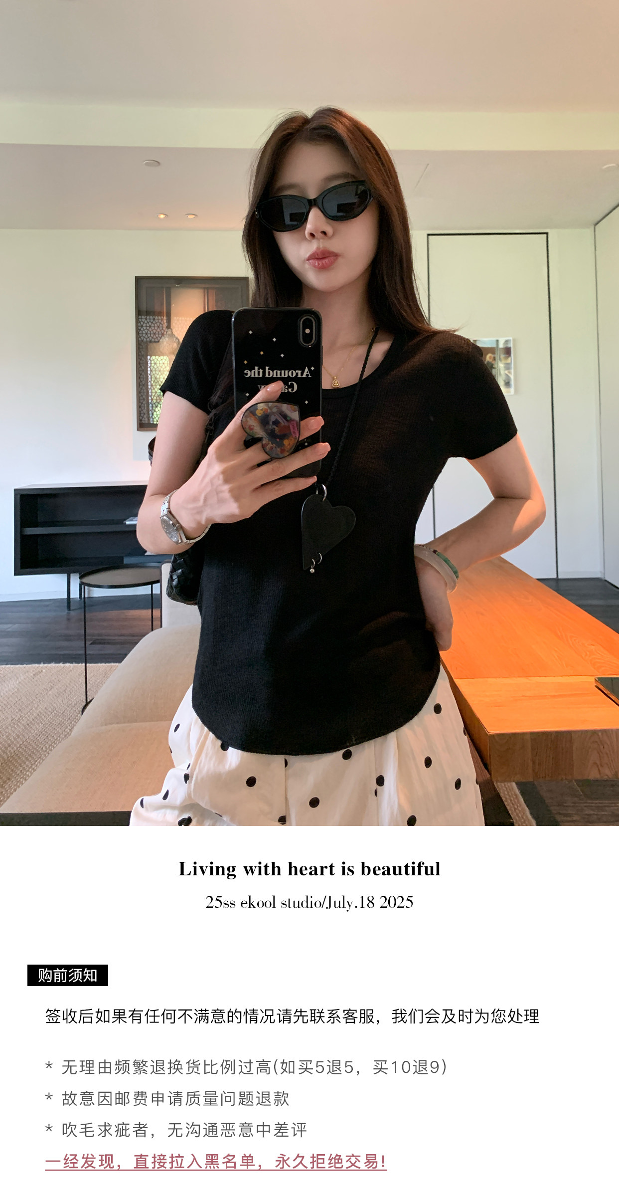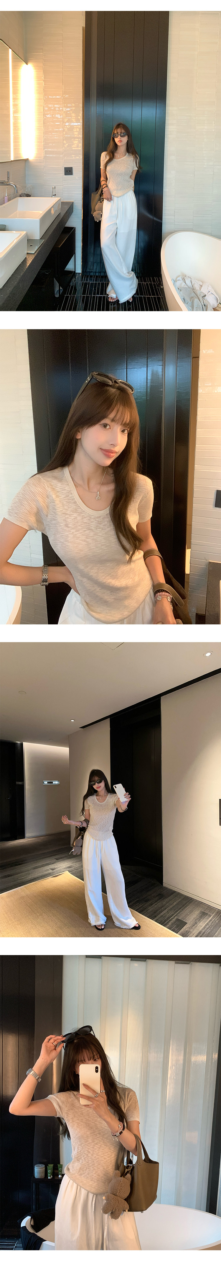 EKOOL衣库 薄款U领短袖针织衫女夏季新款百搭显瘦肌理感休闲上衣