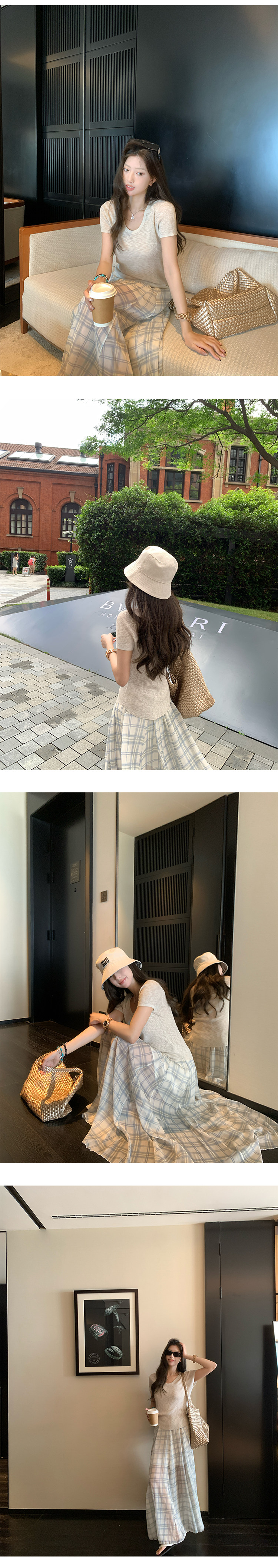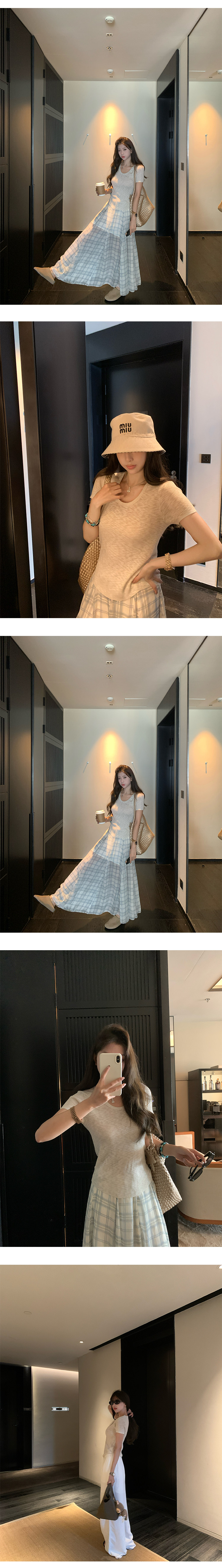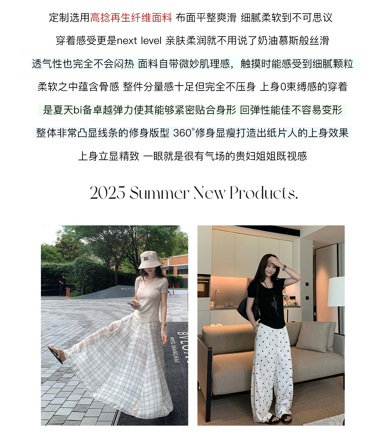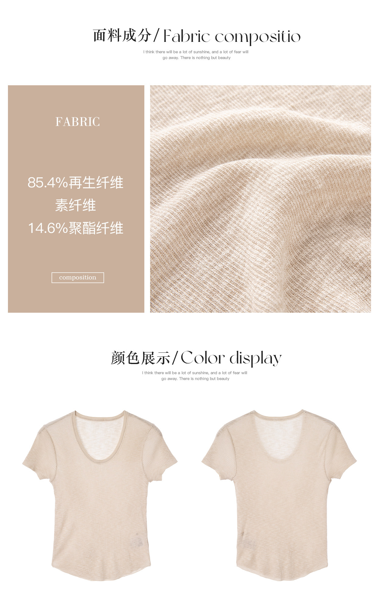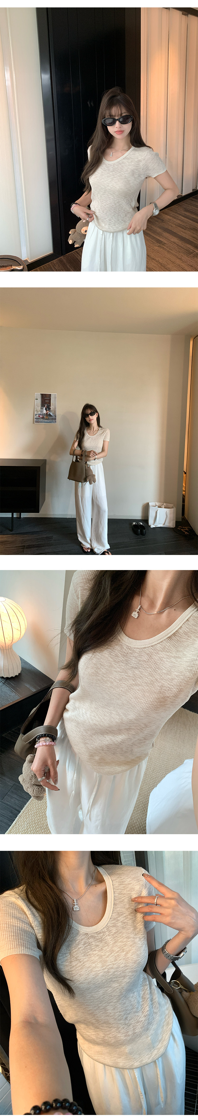 EKOOL衣库 薄款U领短袖针织衫女夏季新款百搭显瘦肌理感休闲上衣